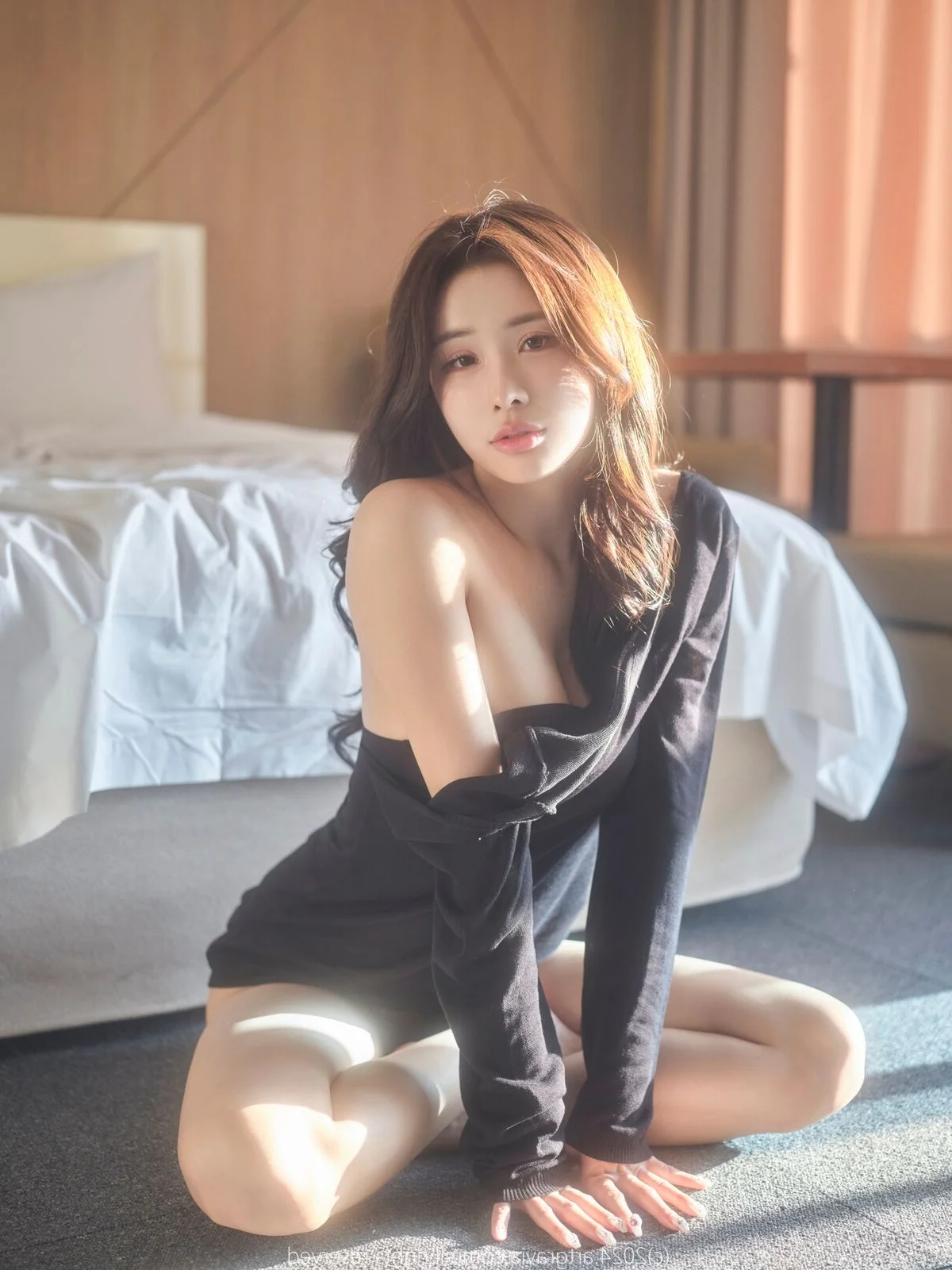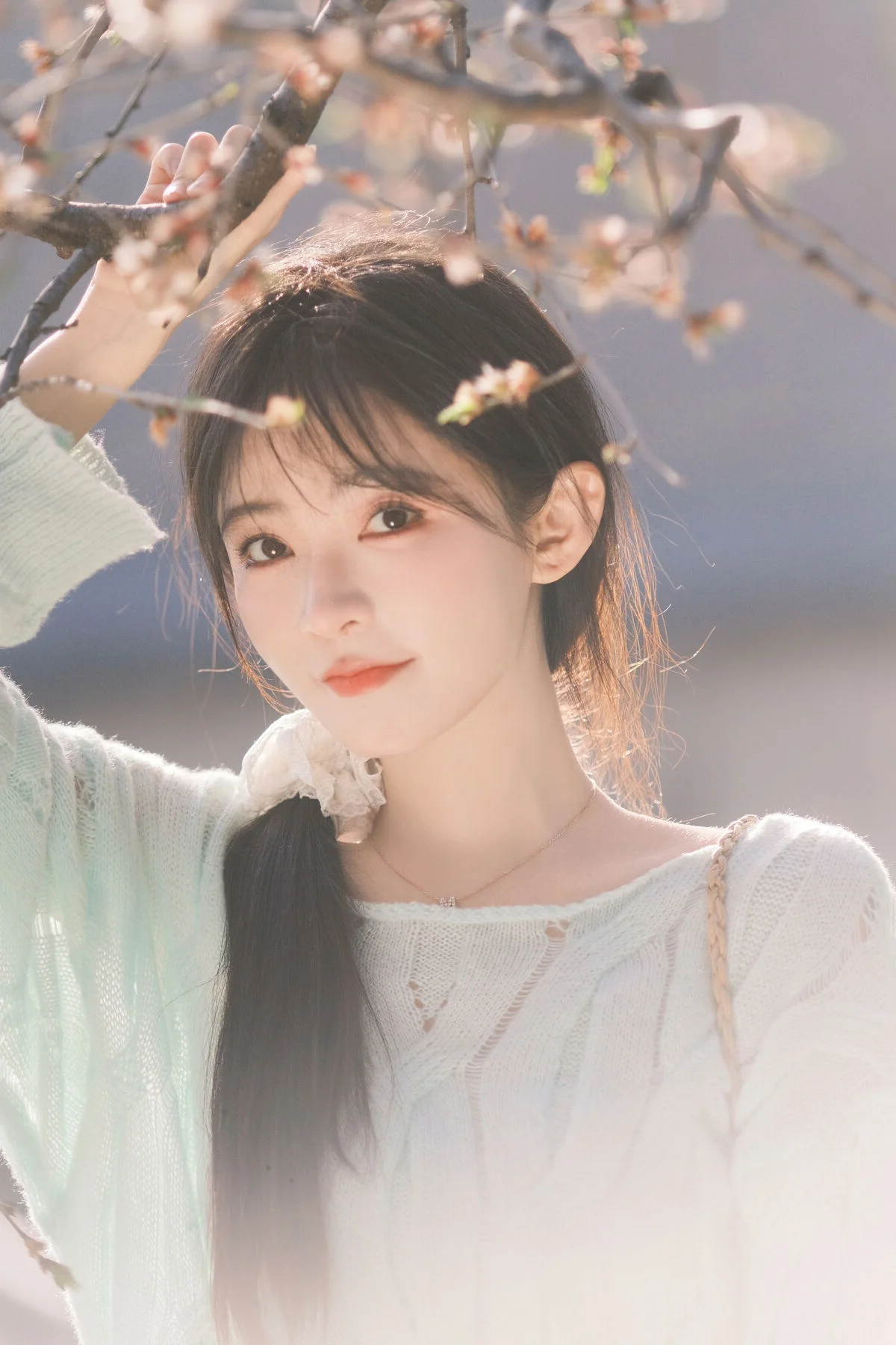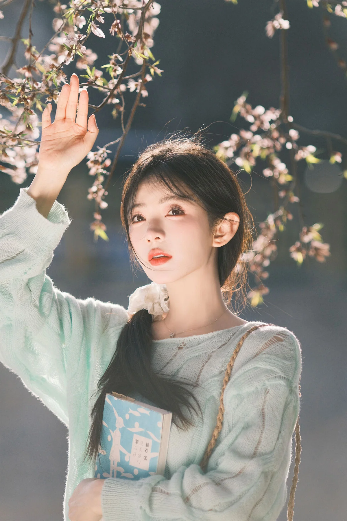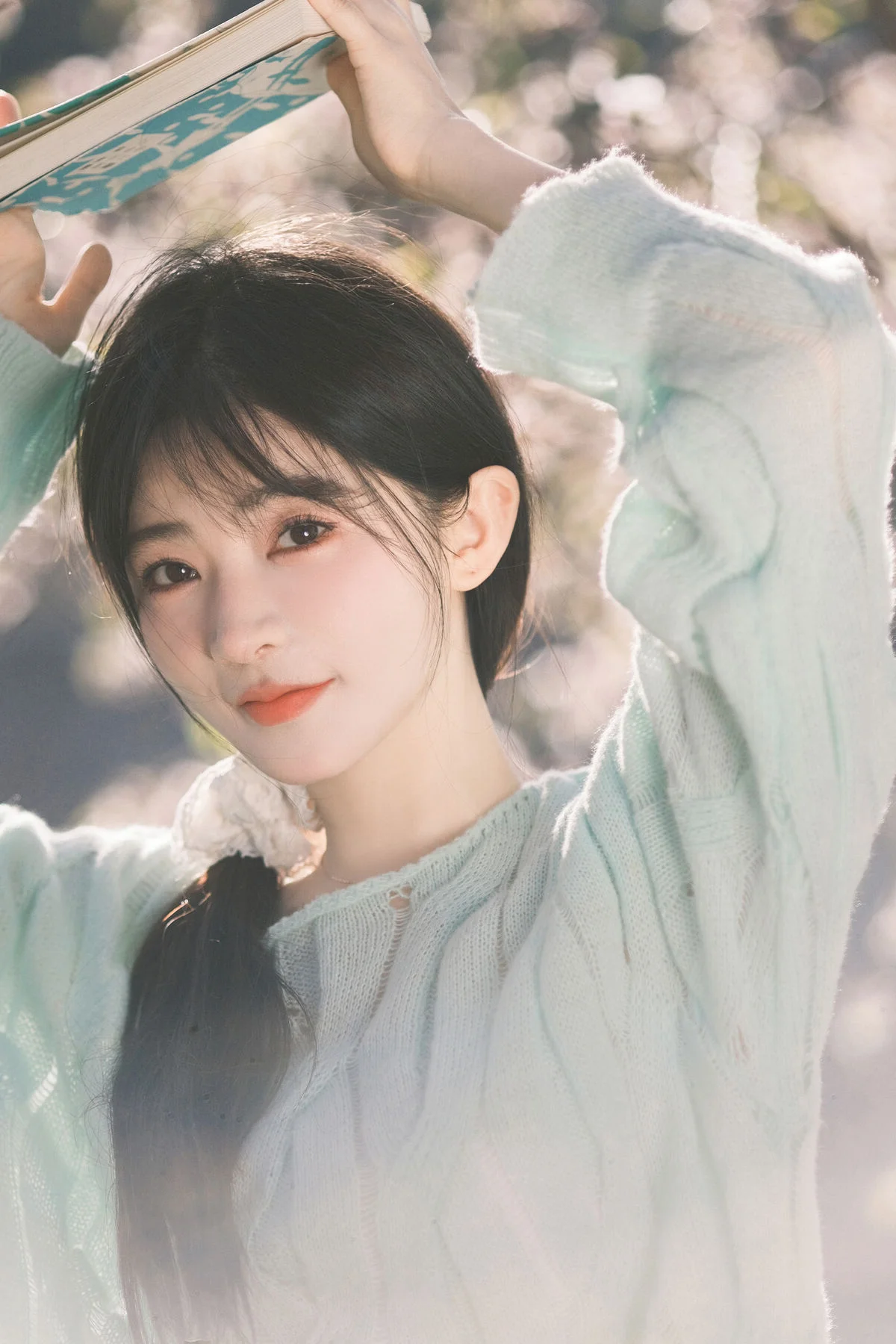 In the YiTuYu Vol. 8836 collection, model Yang Yi Mo emerges with an ethereal and gentle beauty. She wears a soft light blue knitted sweater highlighting her smooth skin and lustrous dark hair. Her eyes convey a delicate sophistication blended with a touch of innocence creating an irresistible allure. Each moment captured of Yang Yi Mo is like a work of art showcasing her grace and natural demeanor. The blurred background with warm hues further accentuates her pristine beauty evoking a sense of tranquility and romance. These emotionally rich images are sure to enchant and captivate viewers.