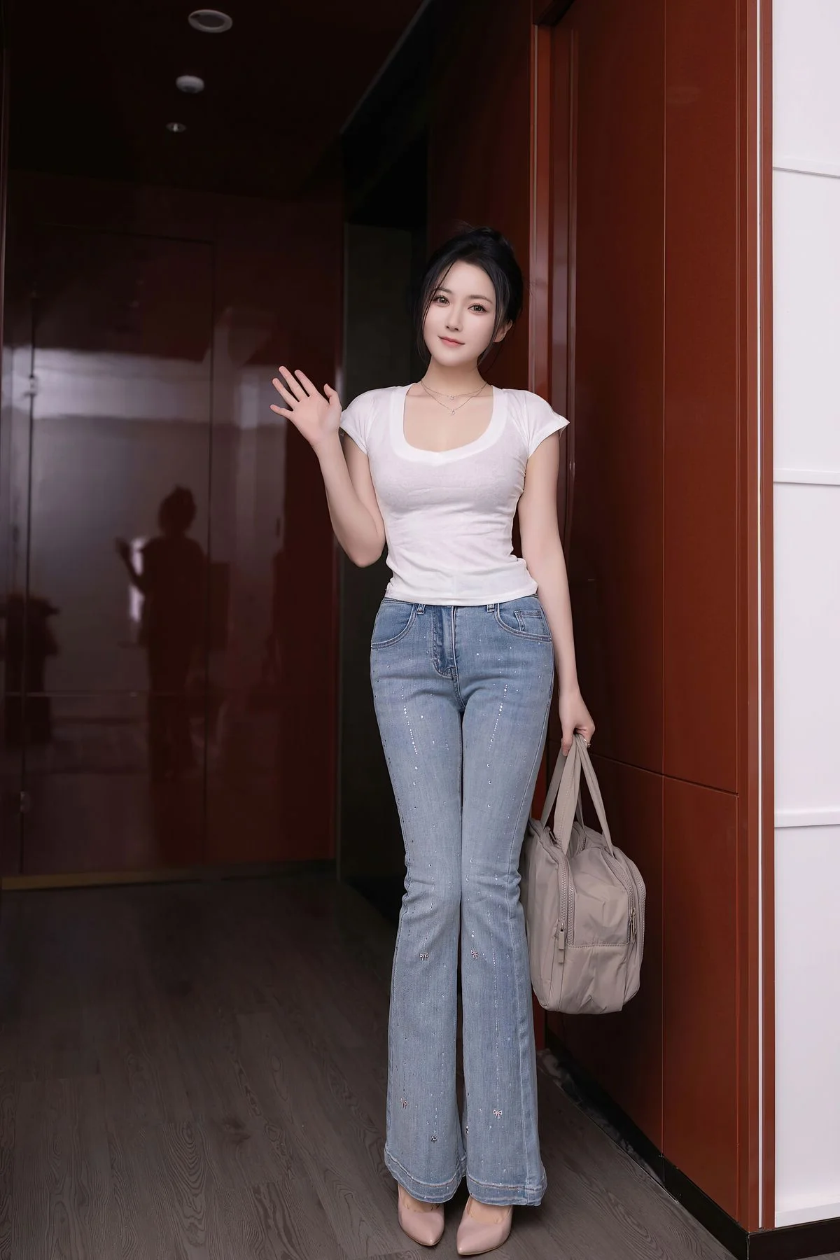 Shelly (also known as shelly诗莉吖) brings a unique blend of grace and charisma to every frame. The XiuRen No.10905 set highlights her versatility, transitioning seamlessly between sophisticated poses and natural, candid moments. The lighting and composition emphasize the intricate details of her wardrobe, making it a perfect reference for those interested in urban fashion trends and professional studio lighting techniques.