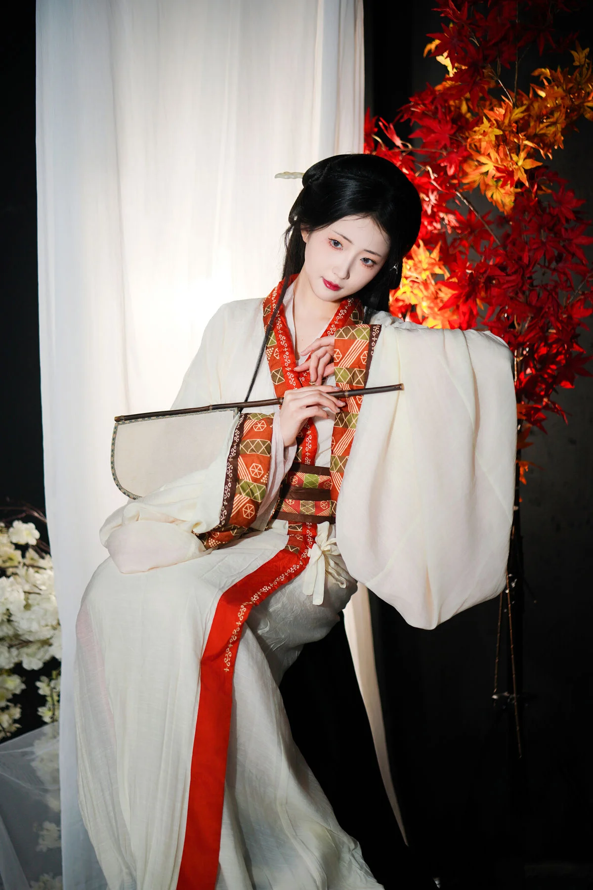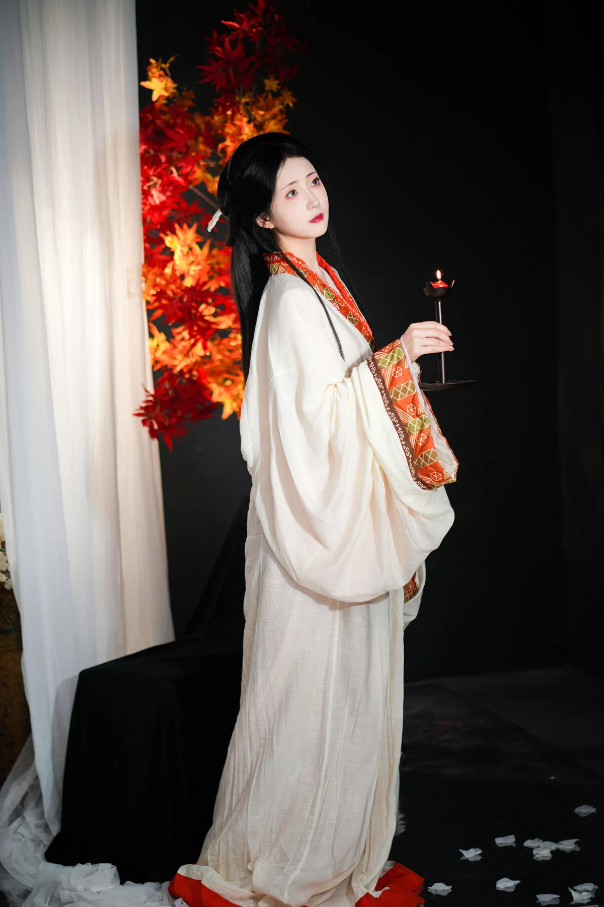 This visual piece captures a moment of serene beauty and artistic expression, featuring the delicate silhouette of Coser Kagurazaka Mafuyu. Set against a soft, warm bedroom backdrop, the outfit blends the boldness of black fabrics with the gentle touch of white fur accents, creating a harmonious contrast that defines theme. Her signature twin tails adorned with bows and her soulful gaze evoke a sense of nostalgic charm and quiet intimacy. Every detail, from the sheer texture of the stockings to the choice of accessories, reflects a sophisticated fashion sense that balances innocence with modern elegance. It feels like stepping into a personal sanctuary where time slows down, allowing the viewer to appreciate the subtle interplay of light and shadow. This collection is a true testament to visual storytelling, blending fashion and emotion into a poetic narrative of youth and grace.