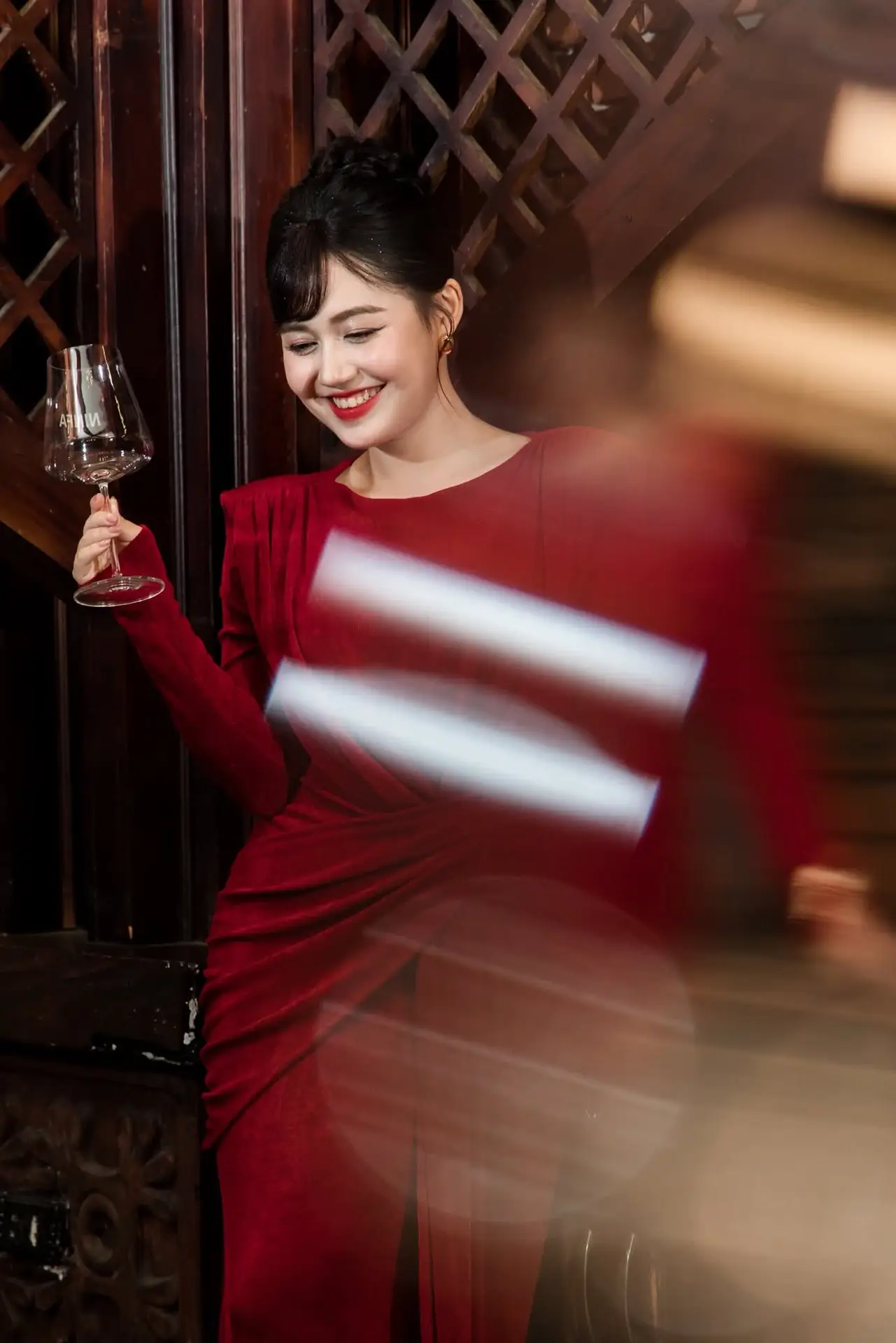 #AsianBeauty #WomanInRed #ElegantStyle #CharmingSmile #FashionPortrait