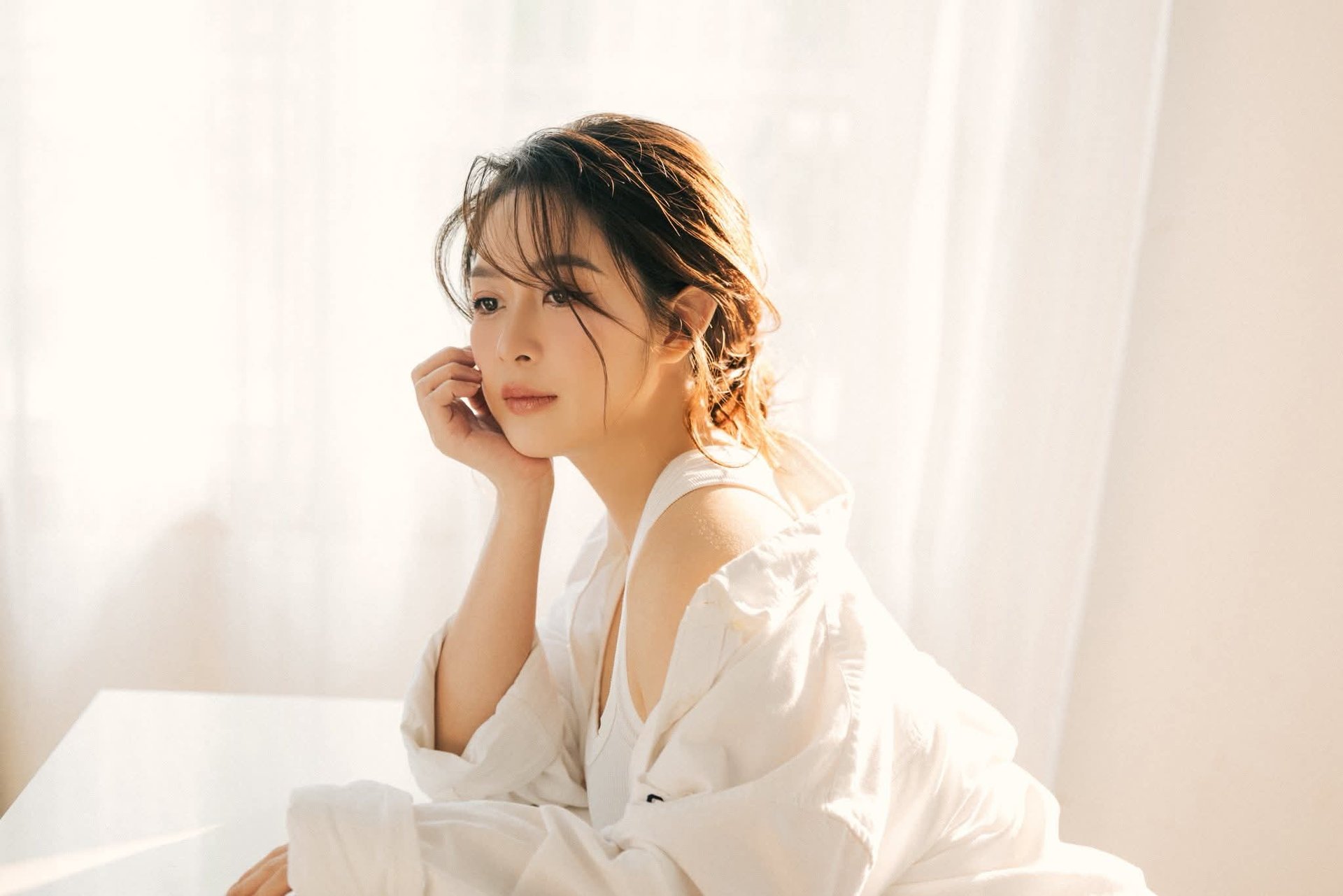 Thuy Anh, singer Dang Khoi's wife, makes a strong impression with her timeless beauty and radiant demeanor. Despite being a mother of three, she maintains an admirable slender figure and youthful appearance. Dressed in a classic white and black polka dot dress, Thuy Anh exudes femininity, elegance, and sophistication. The gown not only accentuates her physique but also showcases her exquisite and timeless fashion sense. Her gentle smile and captivating gaze further highlight Thuy Anh's natural and graceful charm. She is a vivid testament to the image of a modern, successful woman who knows how to take care of herself and always shines brightly.Tammy Pham radiant displaying alluring beauty by infinity pool