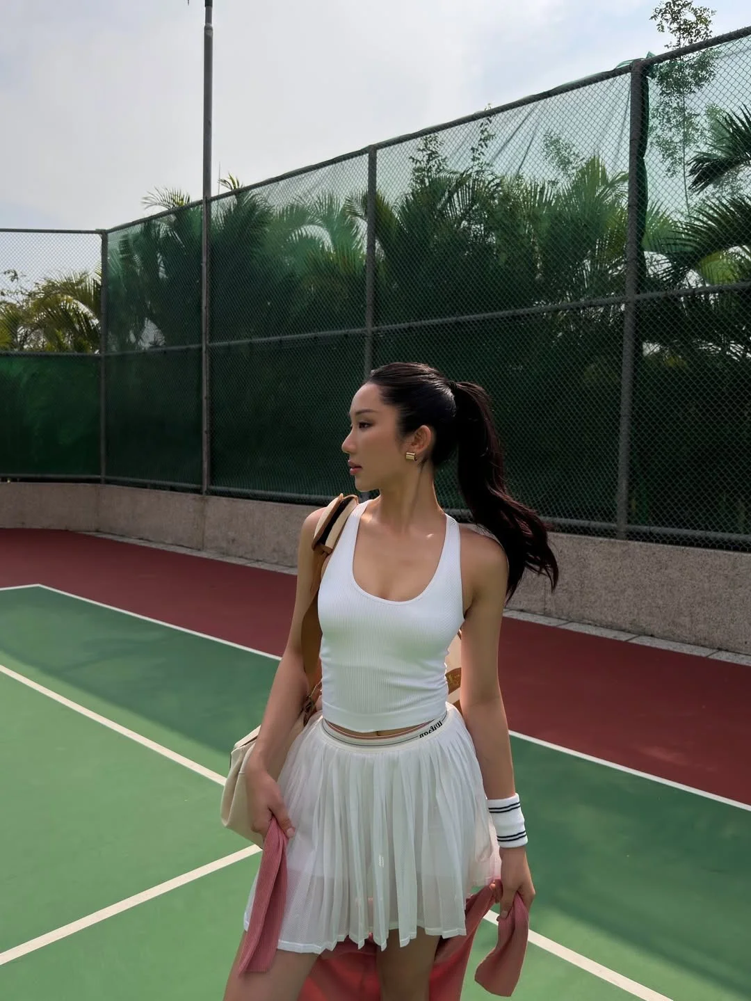 Streamer Mina Young Showcases Sporty Tennis Style and Active Lifestyle on the Court