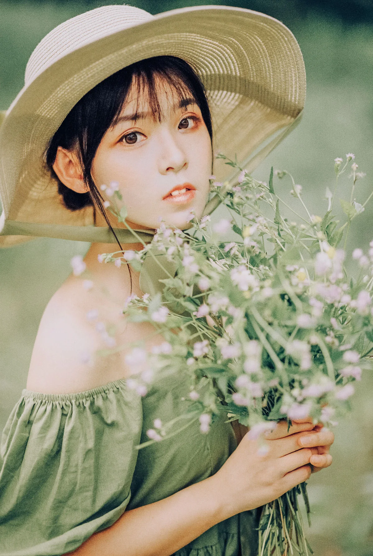 In the YiTuYu Vol.8750 collection, You Ran Hime emerges as a muse from a fairy-tale garden, exuding pure and gentle beauty. Adorned with a graceful wide-brimmed hat and a soft green outfit, the young woman cradles a rustic bouquet of wildflowers in her hands, her dreamy gaze lifted towards the horizon. The lush, sun-drenched natural backdrop creates a peaceful, romantic atmosphere, highlighting You Ran Hime's innocent charm. Each moment captured in the album radiates shyness and innocence, evoking the feeling of a tranquil spring afternoon, where a gentle breeze softly caresses her hair. These are not merely photographs but a narrative of harmony with nature, where the soul finds solace and natural beauty is subtly celebrated.#YouRanHime #YiTuYu #NatureMuse #GentleBeauty #SpringPortrait