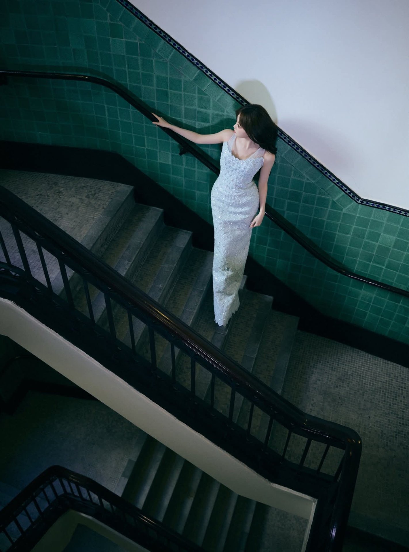 Sparkling Evening Gown: Elegant Woman's Graceful Fashion