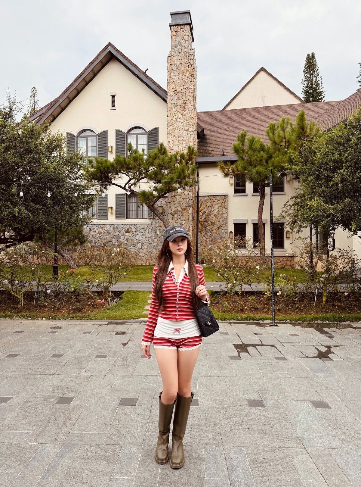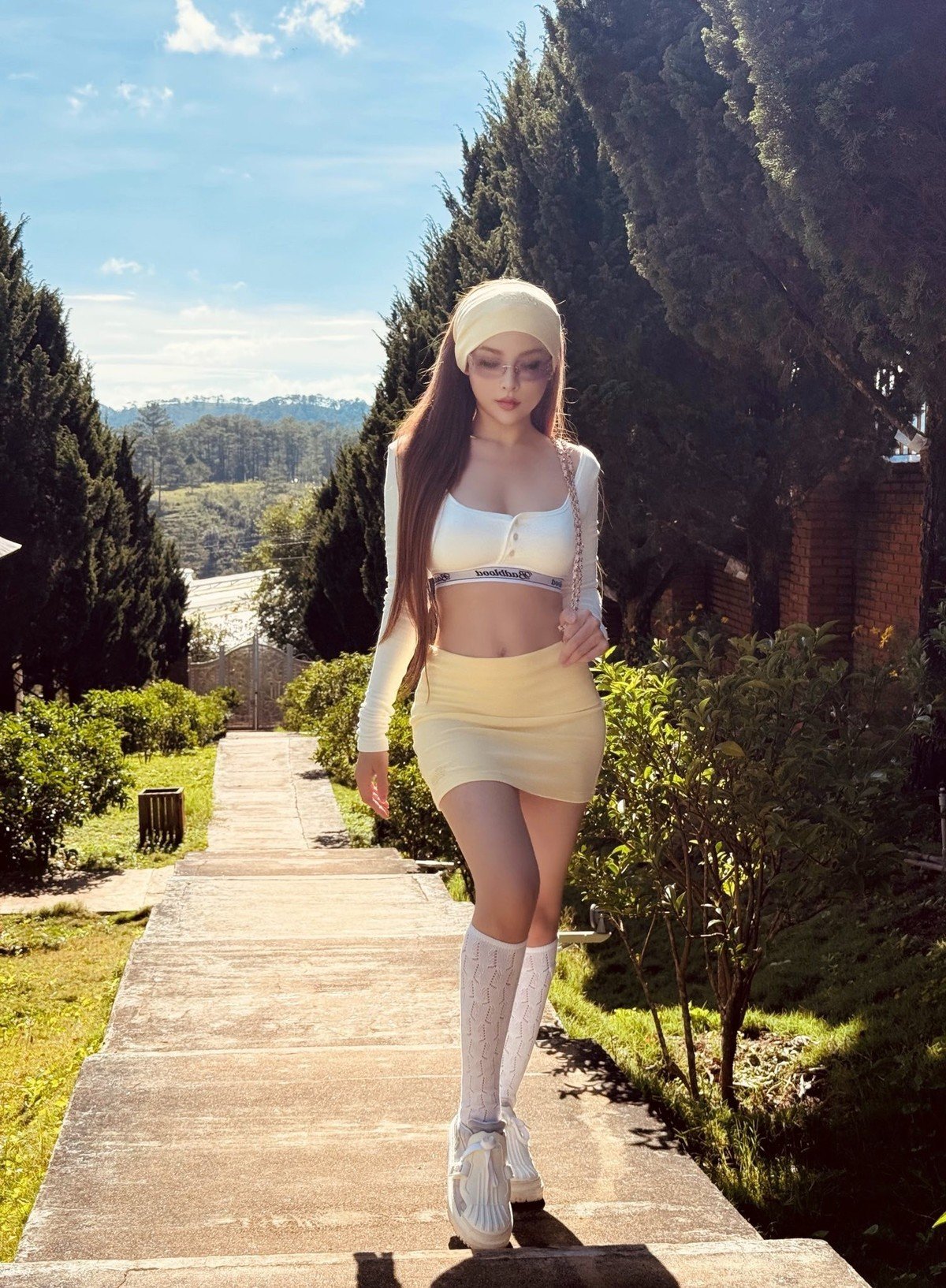 Huyen Baby continues to make a strong impression with her captivating and glamorous chic style. Dressed in a dazzling sequined romper Huyen Baby skillfully showcases her slender figure and admirable flat waist. She radiates an undeniable sense of high fashion and confident charm. This image not only highlights her beautiful physique but also exudes her luxurious aura. It serves as a testament to Huyen Baby’s enduring appeal in the entertainment industry always reinventing herself and inspiring a trendy lifestyle.