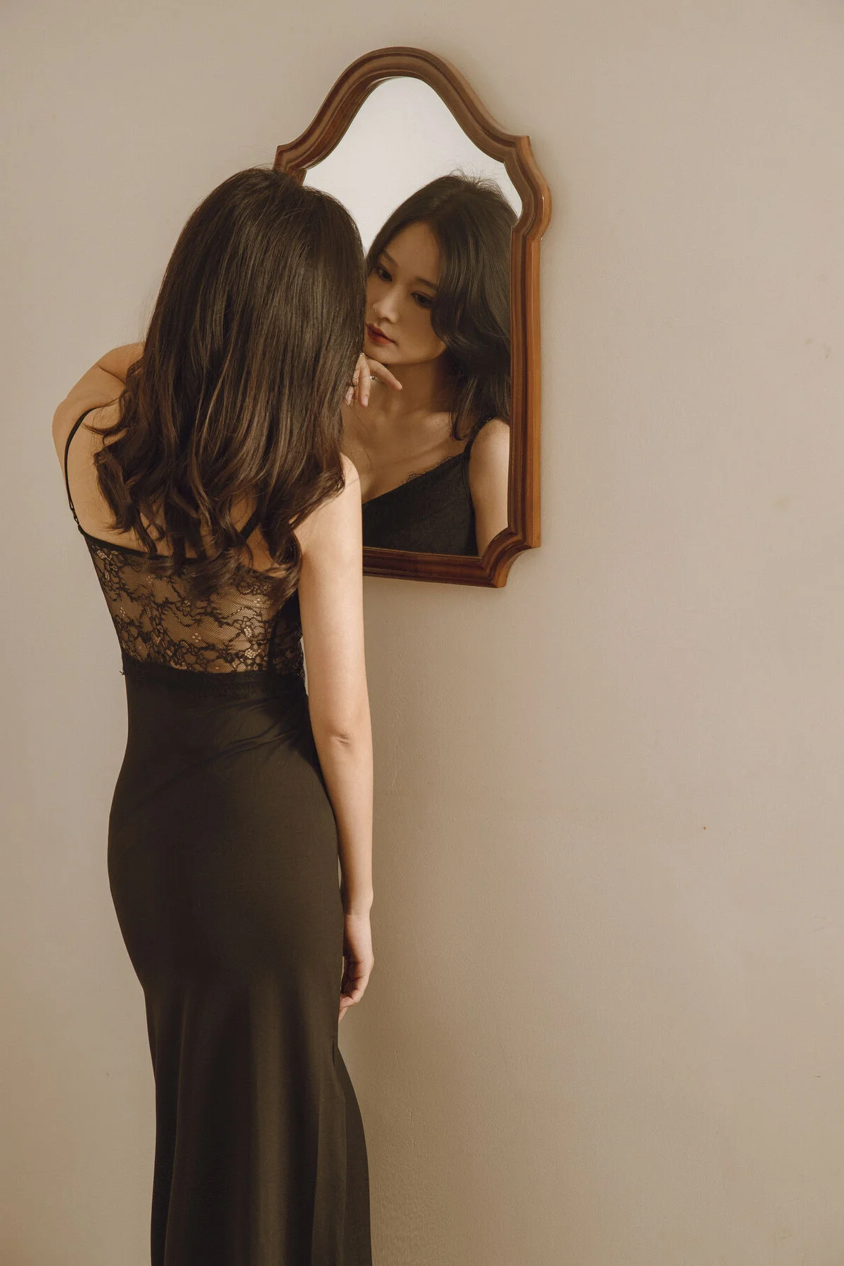 Cheng Zi Vol.8797: Elegant Glamour in a Black Lace Dress – YiTuYu Art Language