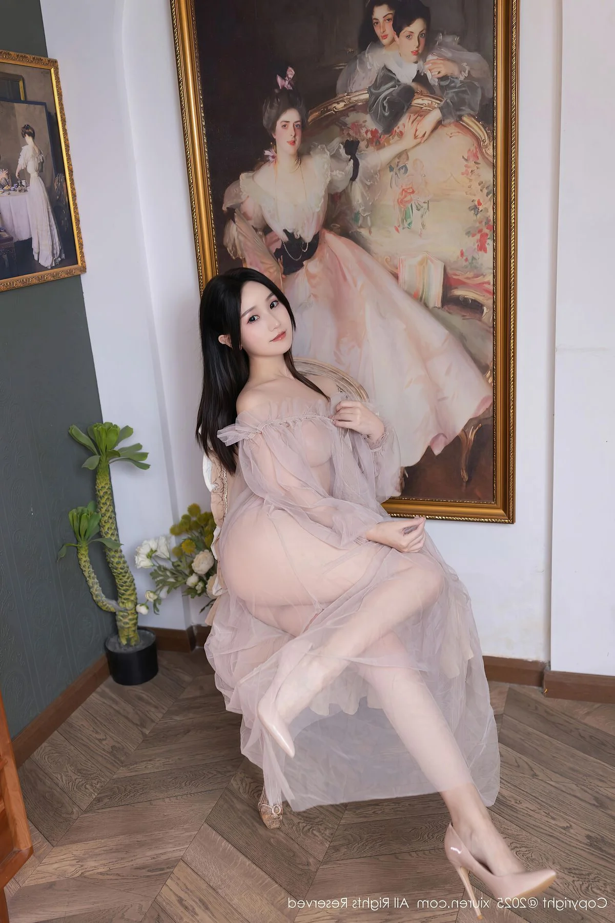 This image from the XiuRen No.10752 collection showcases model Xing Ya Da in a truly captivating light. She gracefully poses in a delicate sheer outfit that elegantly accentuates her slender figure and natural curves. Her gaze direct and confident invites viewers into a moment of pure allure and sophistication. Set in a tastefully decorated bedroom with soft lighting and a serene backdrop Xing Ya Da embodies both sensuality and grace. Each pose and expression is meticulously captured transforming the photoshoot into an artistic display of beauty and confidence. This collection celebrates not only her physical attractiveness but also her magnetic presence leaving a lasting impression on anyone who views it.