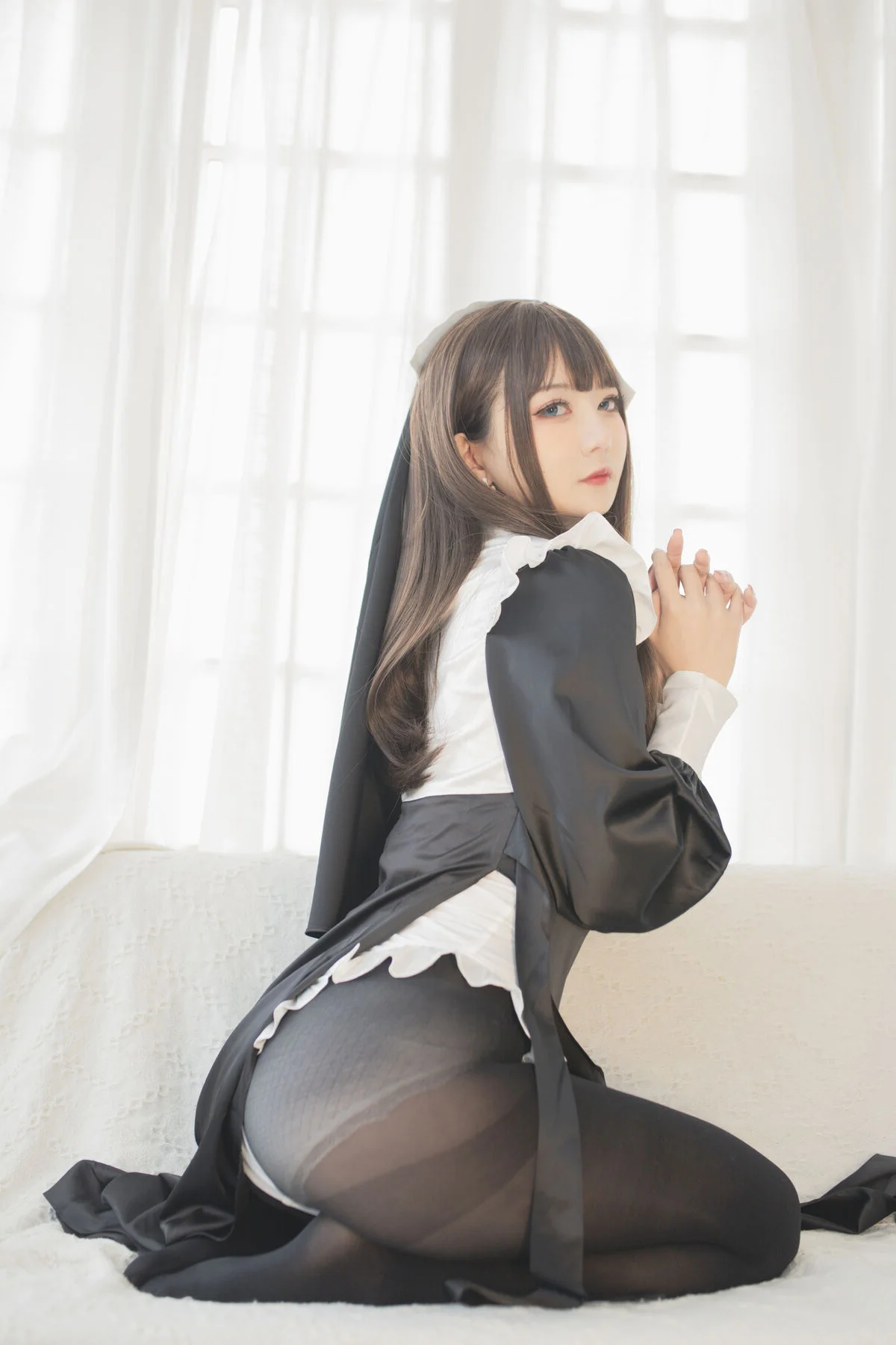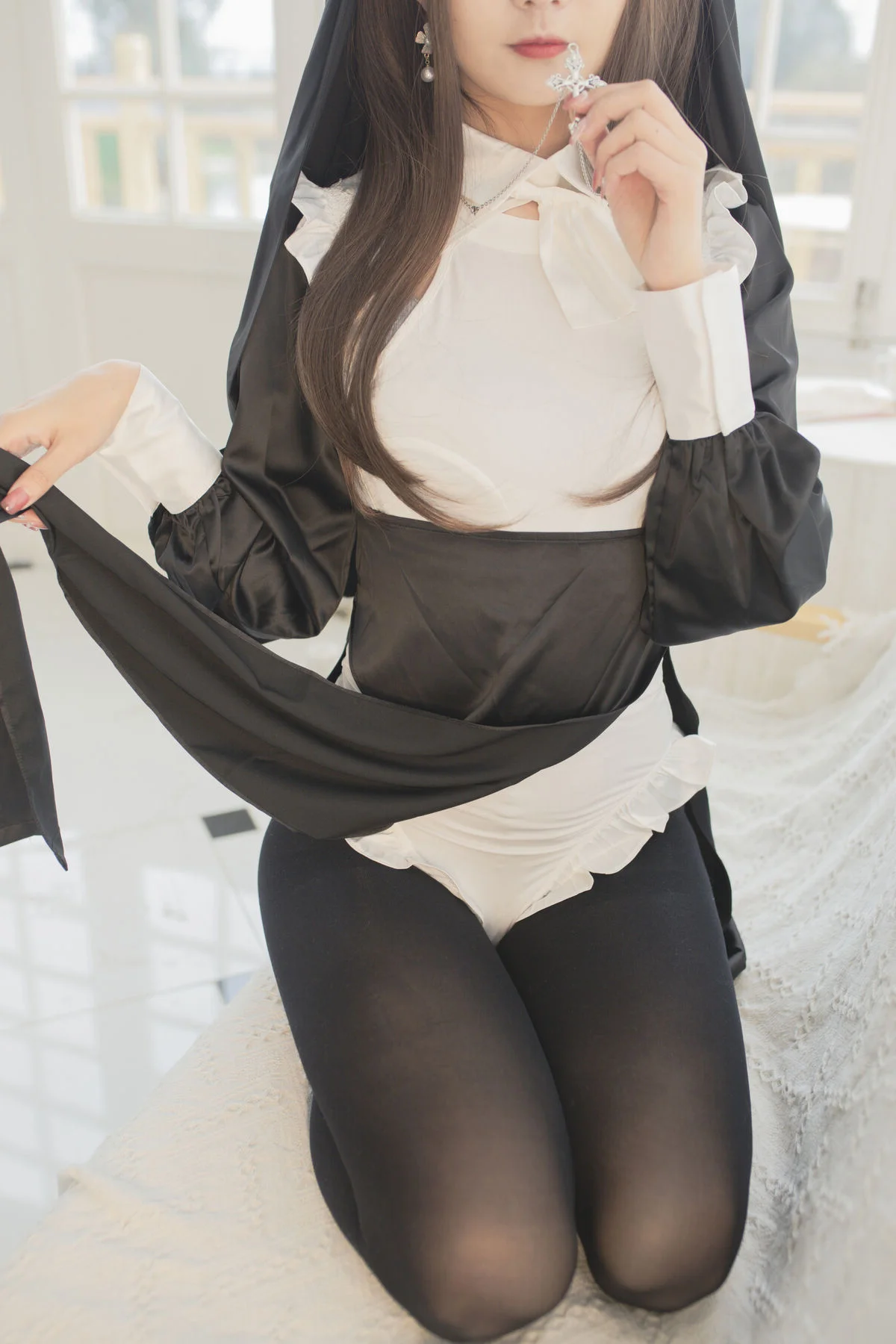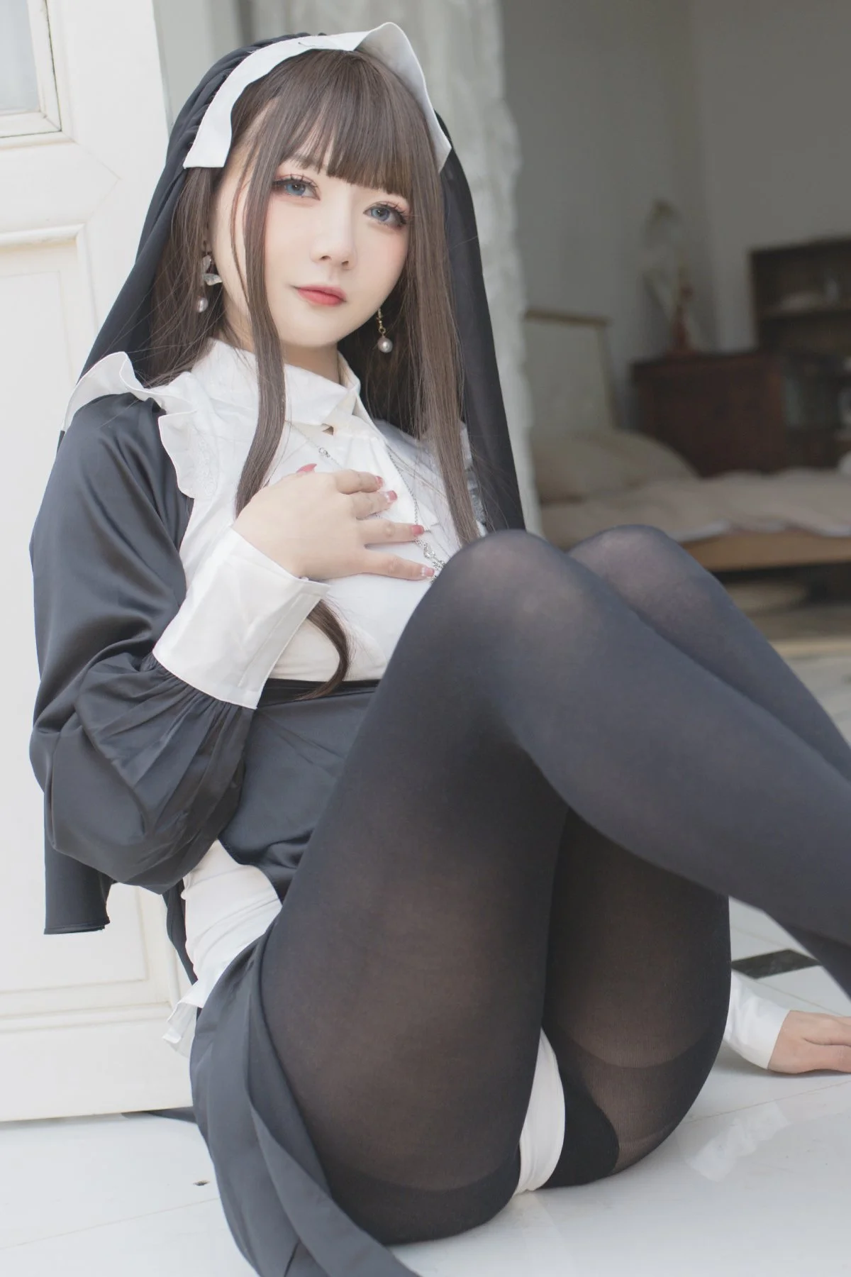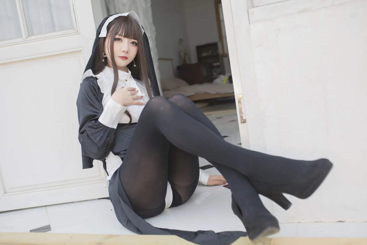 Step into a world of luminous serenity with Coser 51Jiang as she brings a poetic touch to the artistic collection. This series is a masterful blend of classical inspiration and modern aesthetic sensitivity capturing a moment of quiet contemplation in a sun drenched setting. The character exudes a gentle grace with eyes that tell a story of peace and mystery while her body language remains poised and elegant. The fashion choice is particularly striking featuring a stylized nun habit that plays with the timeless contrast of black and white. The delicate ruffles and soft textures of the fabric add a layer of sophistication perfectly complemented by the minimalist white backdrop that enhances the overall dreamlike atmosphere. Every shot is a testament to visual harmony focusing on the interplay of soft lighting and clean lines to create a vibe that is both ethereal and grounding. It is a beautiful exploration of style and emotion offering a refreshing perspective on monochromatic fashion and portrait photography that resonates with a sense of calm and artistic purity.#CosplayArt #51Jiang #GothicElegance #MinimalistFashion #VisualStorytelling