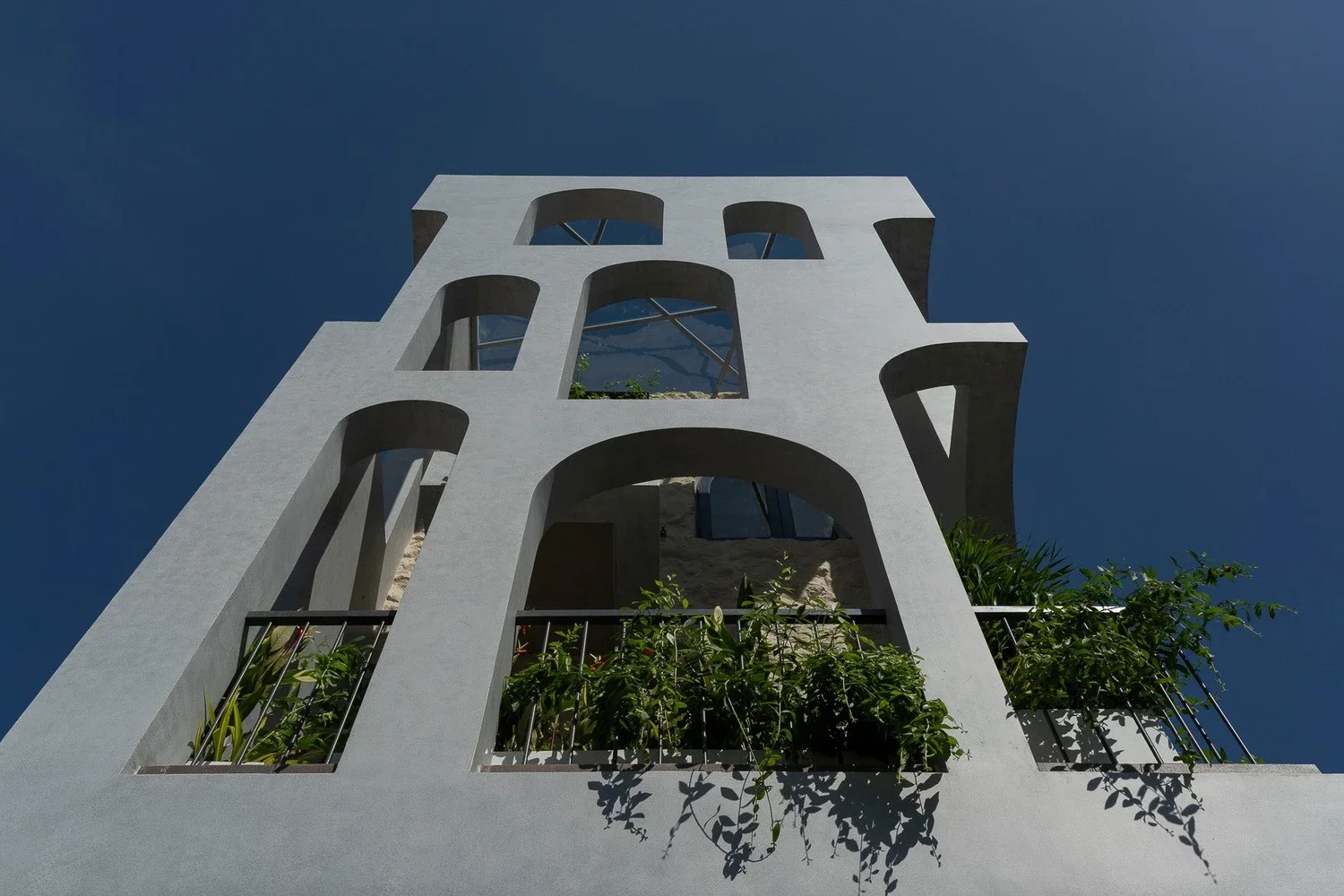 Light-Filled Tube House: Discover Unique Arched Facade & Green Urban Living