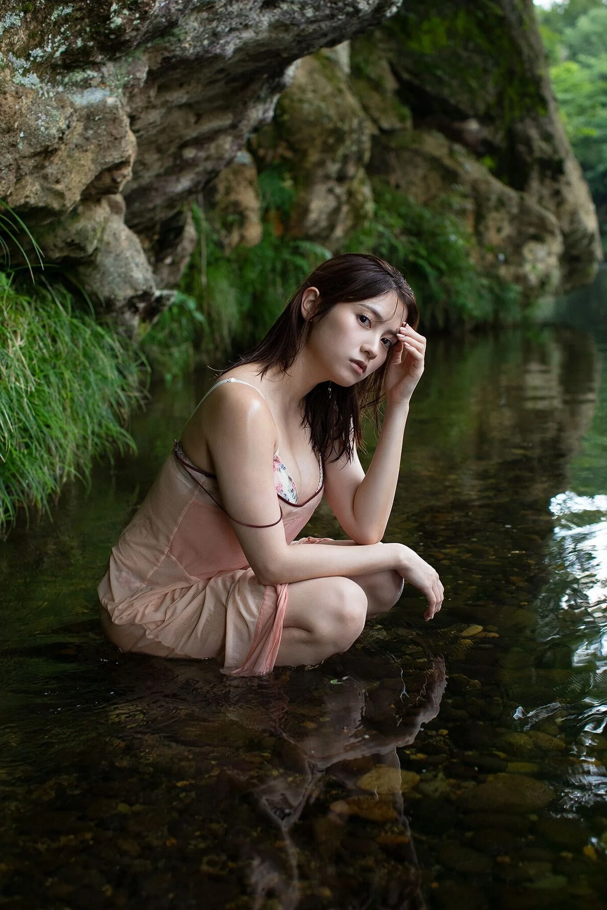 This stunning image captures Miho Machiyama, a captivating beauty from Keio University, in a moment of serene allure. With her flowing dark hair and mesmerizing gaze, she leans gracefully against a rock, showcasing her natural charm in a vibrant turquoise bikini. This photograph is part of the FRIDAY Digital Photo Book "秘宿 潮騒" (Secret Inn Tide Sound), where Miho Machiyama embodies elegance and sensuality amidst a picturesque natural backdrop. Her unique blend of intellectual grace and alluring presence makes her a focal point, promising an unforgettable visual journey for viewers delving into this complete Part02 collection.#MihoMachiyama #KeioUniversity #FRIDAYMagazine #JapaneseBeauty #BikiniShoot