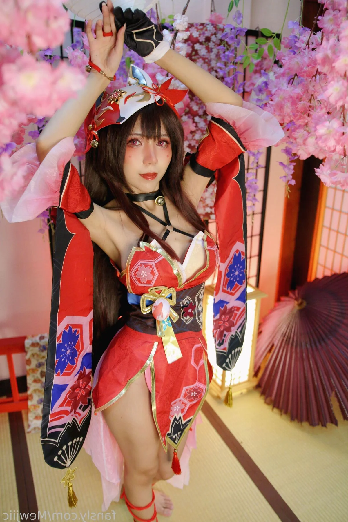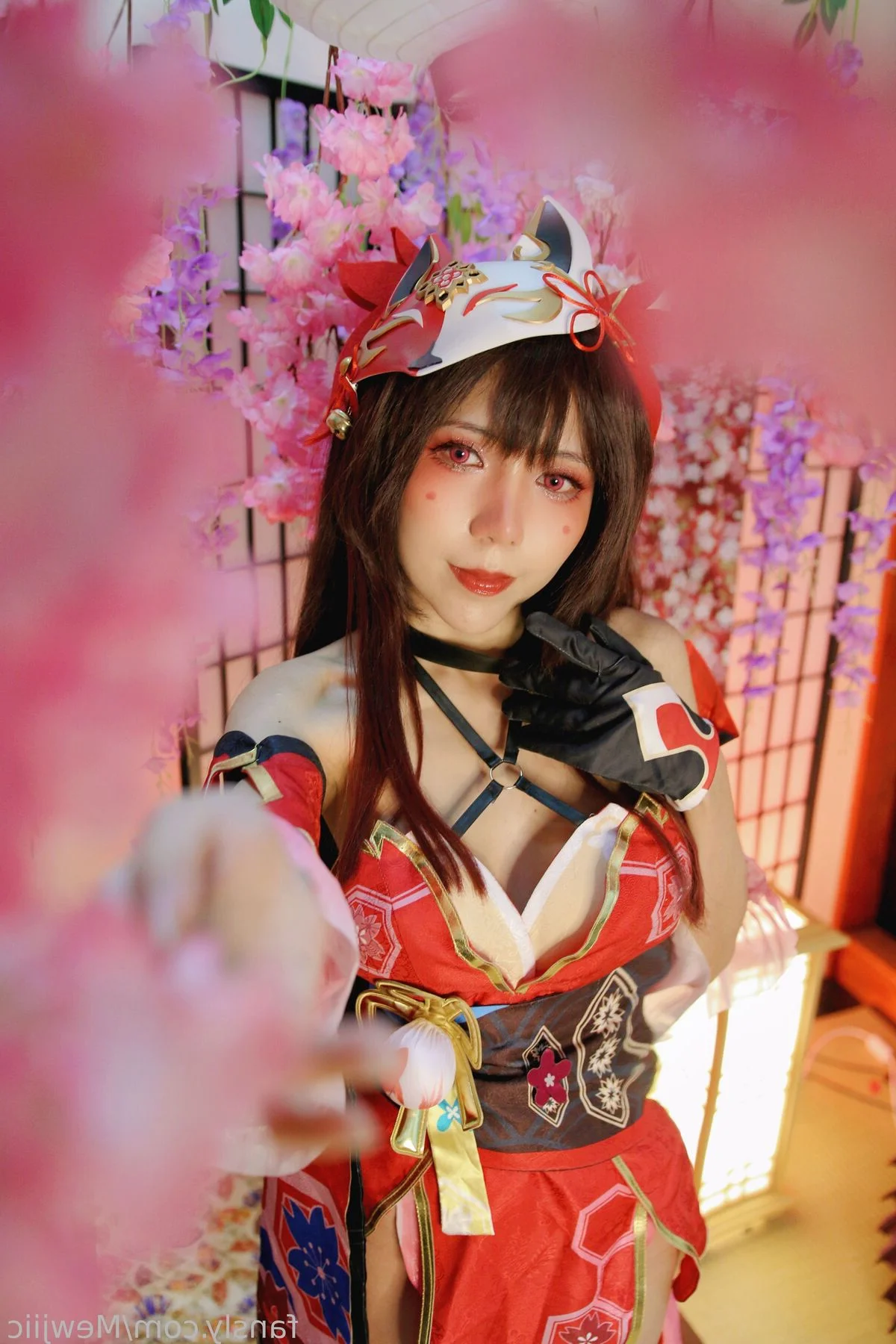 Immerse yourself in the captivating world of cosplay with Coser lMusicl in her exclusive Sparkle photo collection. Dressed in a striking outfit that blends traditional Japanese aesthetics with modern flair lMusicl embodies an alluring character featuring a vibrant red stylized kimono top and intricate fox ear accessories. Every detail from the delicate leg ties to her graceful pose enhances her captivating charm and confident aura. This photo set not only captures mesmerizing moments but also showcases the meticulous effort invested in each frame. Discover lMusicl's radiant beauty and unique style an unforgettable visual experience for enthusiasts of cosplay and Japanese culture.#Coser #lMusicl #SparkleCosplay #JapaneseCosplay #KitsuneGirl #AnimeGirl