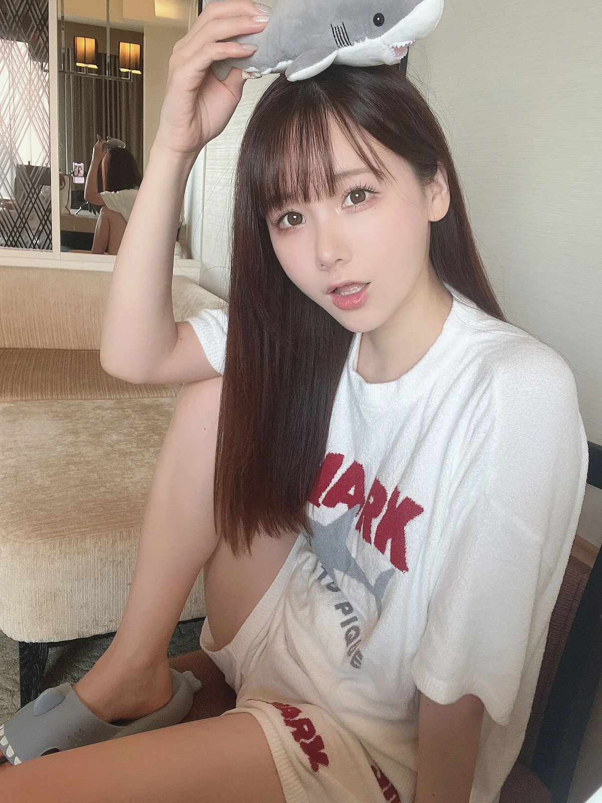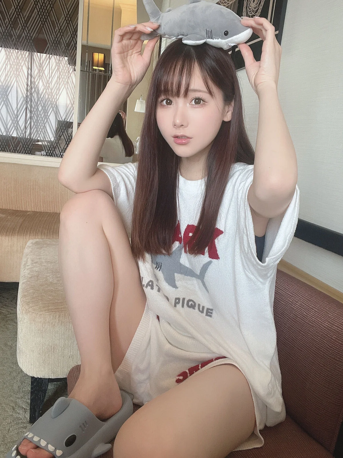 This visual journey captures the essence of a serene and intimate morning with the talented Coser Ken Ken. Dressed in a casual yet stylish oversized white graphic tee, she embodies an effortless beauty that feels both relatable and ethereal. The soft lighting of the room enhances the warm wood tones and crisp white linens, creating a perfect backdrop for her gentle gaze and relaxed body language. There is a beautiful contrast between the sporty aesthetic of her outfit and the delicate, dreamy atmosphere of the setting. Every detail, from the way she leans against the pillows to the subtle play of shadows, speaks to a minimalist and sophisticated lifestyle. It is a masterful display of visual storytelling where fashion meets emotion, inviting us to appreciate the quiet, poetic moments of everyday life through a lens of pure artistic inspiration.