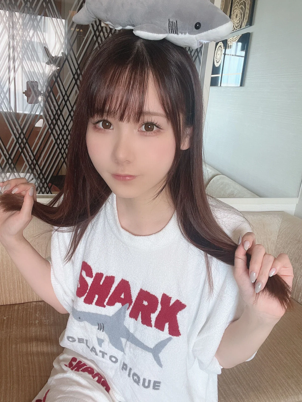 There is a profound sense of intimacy and tranquility captured in this frame from the In Secret Part01 series featuring Coser Kenken . The composition leans into a minimalist aesthetic, where the soft blue of the oversized button down shirt becomes the focal point, contrasting beautifully with the warm, natural lighting of the room. This fashion choice evokes a sense of effortless elegance, blending a relaxed boyfriend style fit with a delicate, feminine grace. Her expression is captivating, filled with a quiet depth that draws the viewer into her private world. The inclusion of a simple handheld fan adds a touch of relatable, everyday charm, grounding the artistic vibe in a moment of pure, unscripted reality. It is a masterclass in visual storytelling, where the color palette and body language work in perfect harmony to create a mood that is both nostalgic and refreshing. The overall aesthetic celebrates natural beauty and the quiet, secret moments that often go unnoticed in the rush of life, making it a perfect inspiration for modern lifestyle photography.