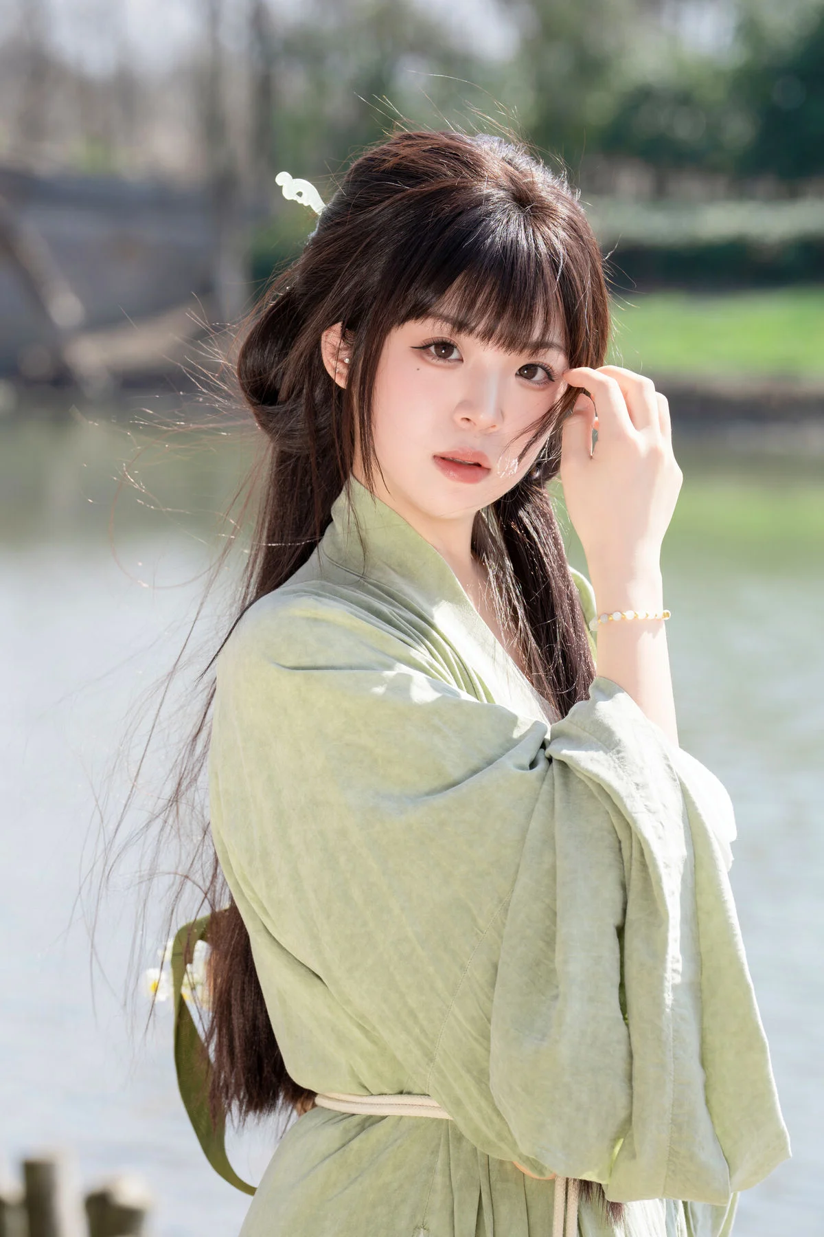 Asian Beauty: Sai Xi Xi Li Ma in Elegant Green Hanfu – YiTuYu Vol.8747 Collection