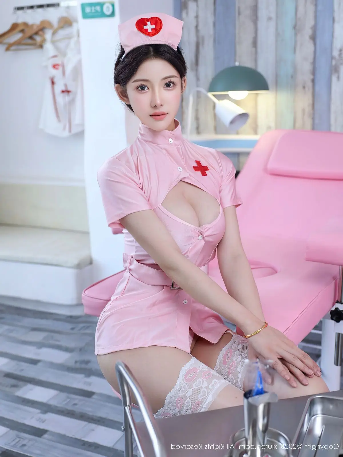 Discover the enchanting charm of Li Shuang Er in the XiuRen No.10563 collection. The model transforms into a captivating nurse, donning an alluring pink uniform that beautifully highlights her slender figure and long graceful legs. Each photograph radiates a subtle yet intense sensuality, blending an innocent appeal with irresistible charm. The pink nurse outfit not only accentuates her fair complexion but also creates a unique and captivating style that draws every eye. This impressive debut solidifies Li Shuang Er's magnetic presence as a photo model.