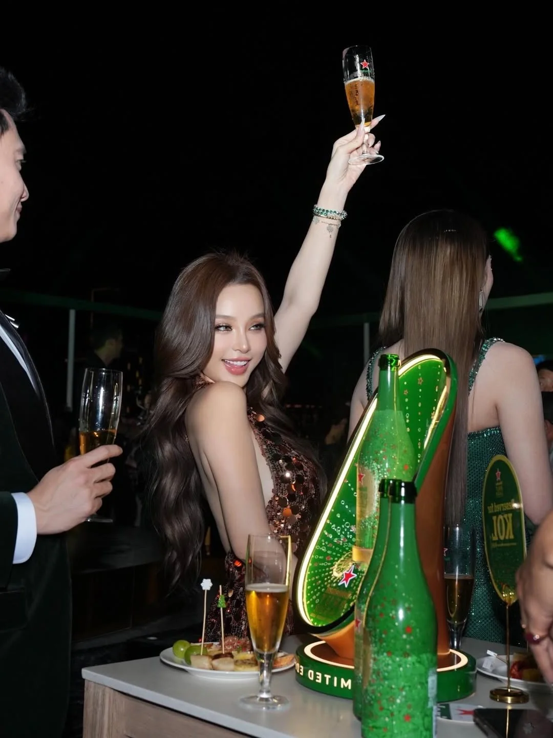 When it comes to luxury fashion and timeless beauty in Vietnam's social circles, Huyen Baby is a name that resonates with sophistication. Recently, the renowned socialite and entrepreneur turned heads at a high-profile event, showcasing a breathtaking look that perfectly blends glamour with high-fashion artistry.Her choice of attire—a shimmering, sequin-embellished evening gown—was a masterclass in 'Quiet Luxury.' The silhouette was meticulously crafted to accentuate her graceful figure, while the intricate details caught the light at every turn, creating a mesmerizing visual effect. Paired with a bold yet elegant makeup look and a classic hairstyle, Huyen Baby embodied the essence of a modern-day muse.