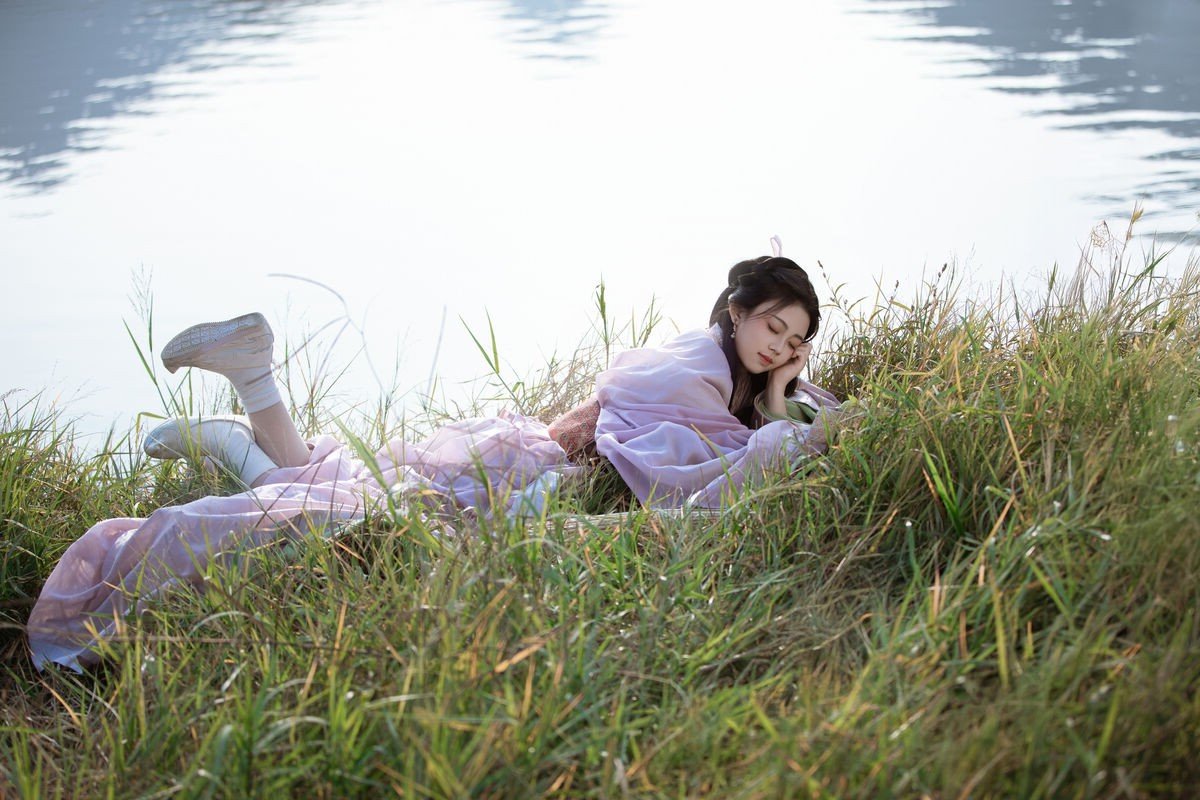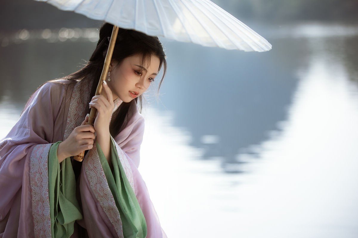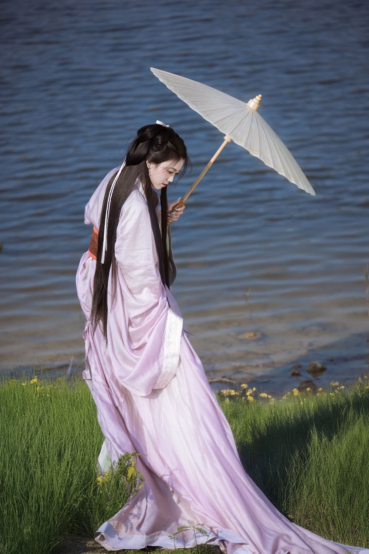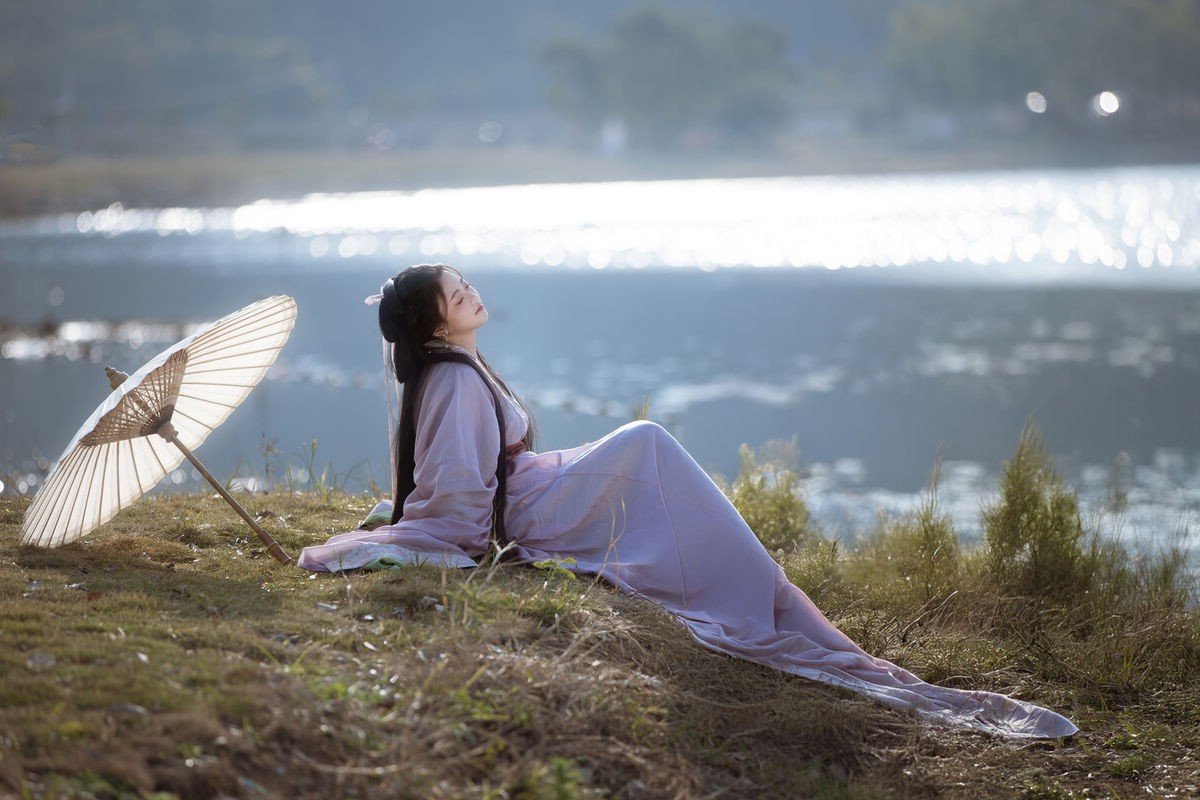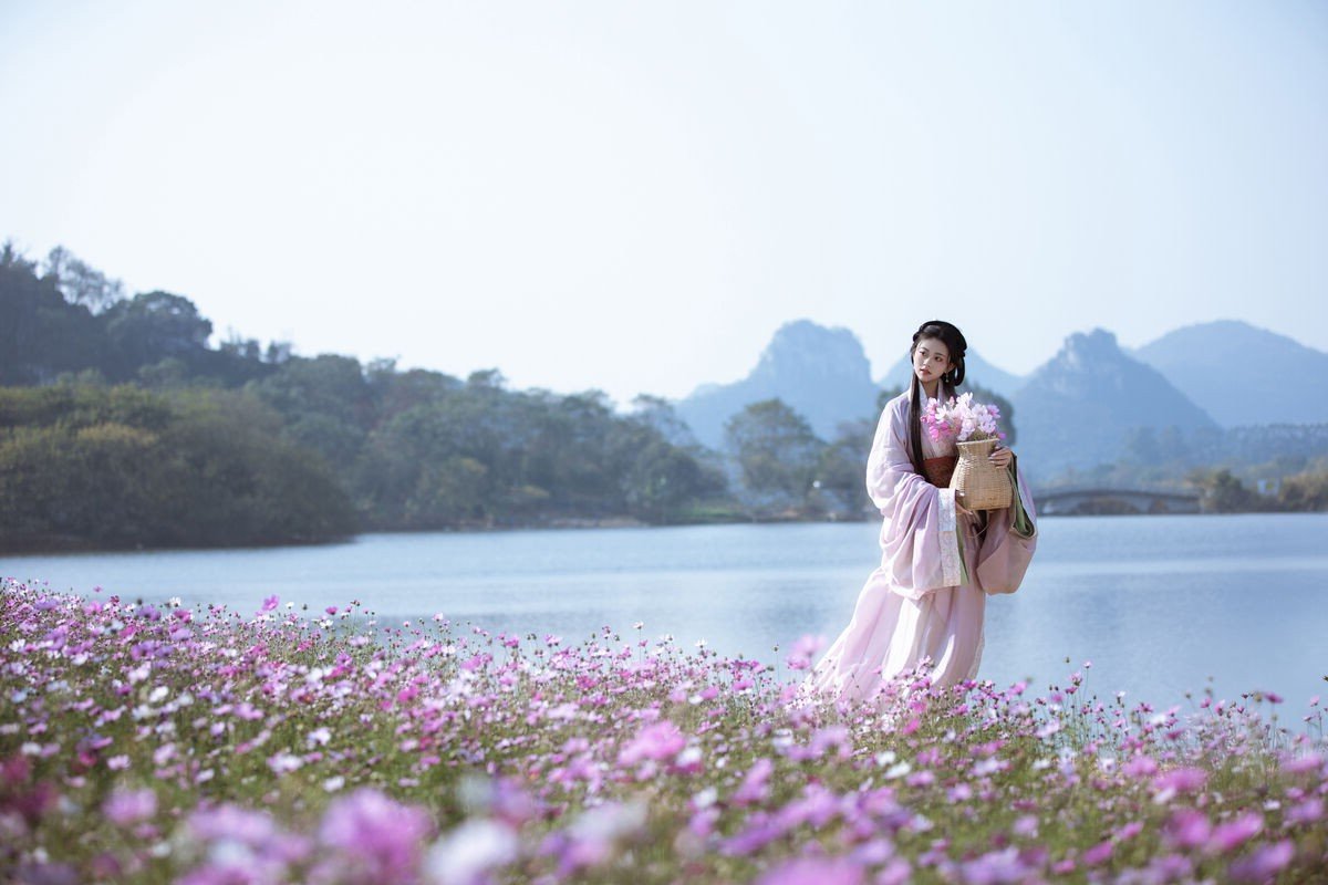 This exquisite photograph captures a graceful woman adorned in an elegant lavender Hanfu standing amidst a dreamy field of purple flowers. Her traditional beauty blends seamlessly with the serene natural landscape creating a poetic visual narrative. The delicate blossoms gently surround her crafting an ethereal atmosphere reminiscent of a fairytale. In the distance a tranquil lake and rolling mountains under a clear sky further enhance the pure charm of the maiden. More than just a fashion shot this image is a celebration of traditional aesthetics and sophisticated photography. The picturesque setting evokes a profound sense of peace and romance. YiTuYu Vol 8304 谨陬捌 offers a captivating visual journey into a fairytale world brought to life.Stories