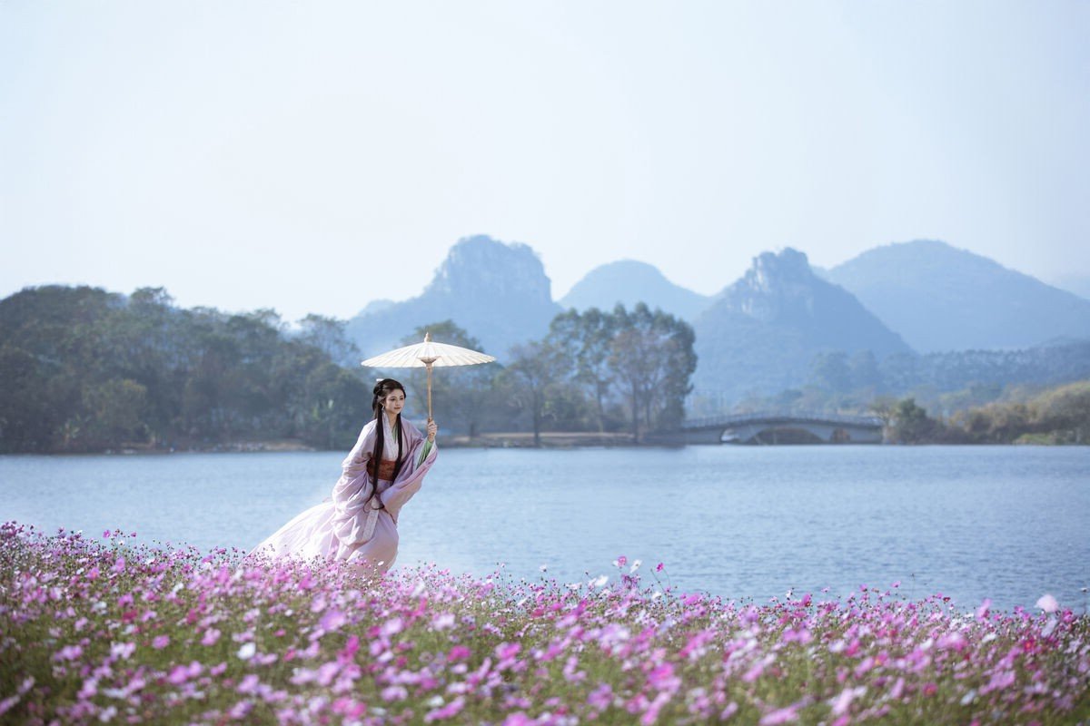 Immerse yourself in the ethereal and captivating beauty of Xiao Shang Guan in this exquisite YiTuYu Vol.8642 collection. Adorned in a vibrant, flowing red traditional dress, she appears as a celestial maiden gracefully situated amidst a vast field of Gesang flowers. Each delicate Gesang bloom, symbolizing happiness and love, beautifully complements Xiao Shang Guan's gentle and graceful demeanor. Her dreamy gaze, coupled with the traditional fan she holds, paints a vivid, poetic tableau where art and nature seamlessly intertwine. This collection transcends mere photographs, acting as an 'art language' that narrates the mystical allure of Oriental beauty, evoking a profound sense of peace and admiration in every viewer.#XiaoShangGuan #Hanfu #TraditionalDress #CosmosFlowers #OrientalBeauty