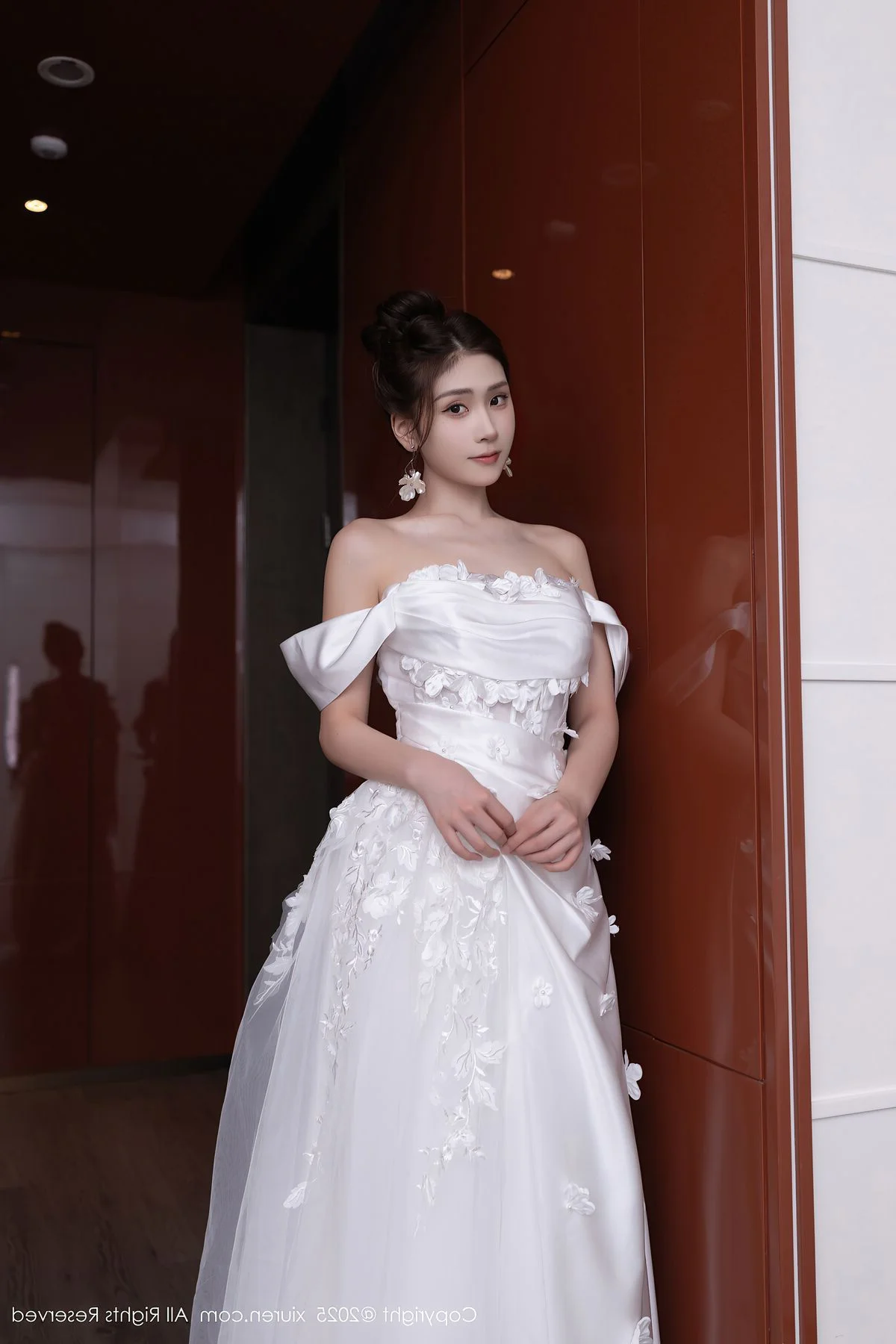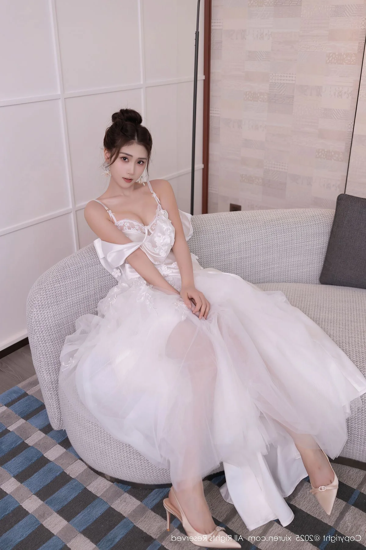 Capturing a poetic moment of the muse Liu Ting Ting in the XiuRen No.10814 collection, this image radiates a sense of fragile yet captivating beauty. Set against a minimalist and modern backdrop, she appears in a pristine white lace dress, where the soft tulle fabric gracefully accentuates her silhouette and creates an ethereal look. Her gentle gaze, paired with an elegant high bun, highlights her delicate features and alluring aura. The neutral tones of the surroundings blend seamlessly with the white attire, creating a peaceful and romantic atmosphere akin to a sweet melody of beauty. This is more than just a fashion shoot; it is a sophisticated blend of light artistry and body language, offering an inspiring visual experience for those who appreciate minimalism and timeless elegance. Every detail, from the embellished heels to the natural pose, reflects a high aesthetic sense, making this moment feel like a living piece of art.#ElegantVibe #MuseInspiration #XiuRenNo10814 #MinimalistAesthetic #VisualArtistry