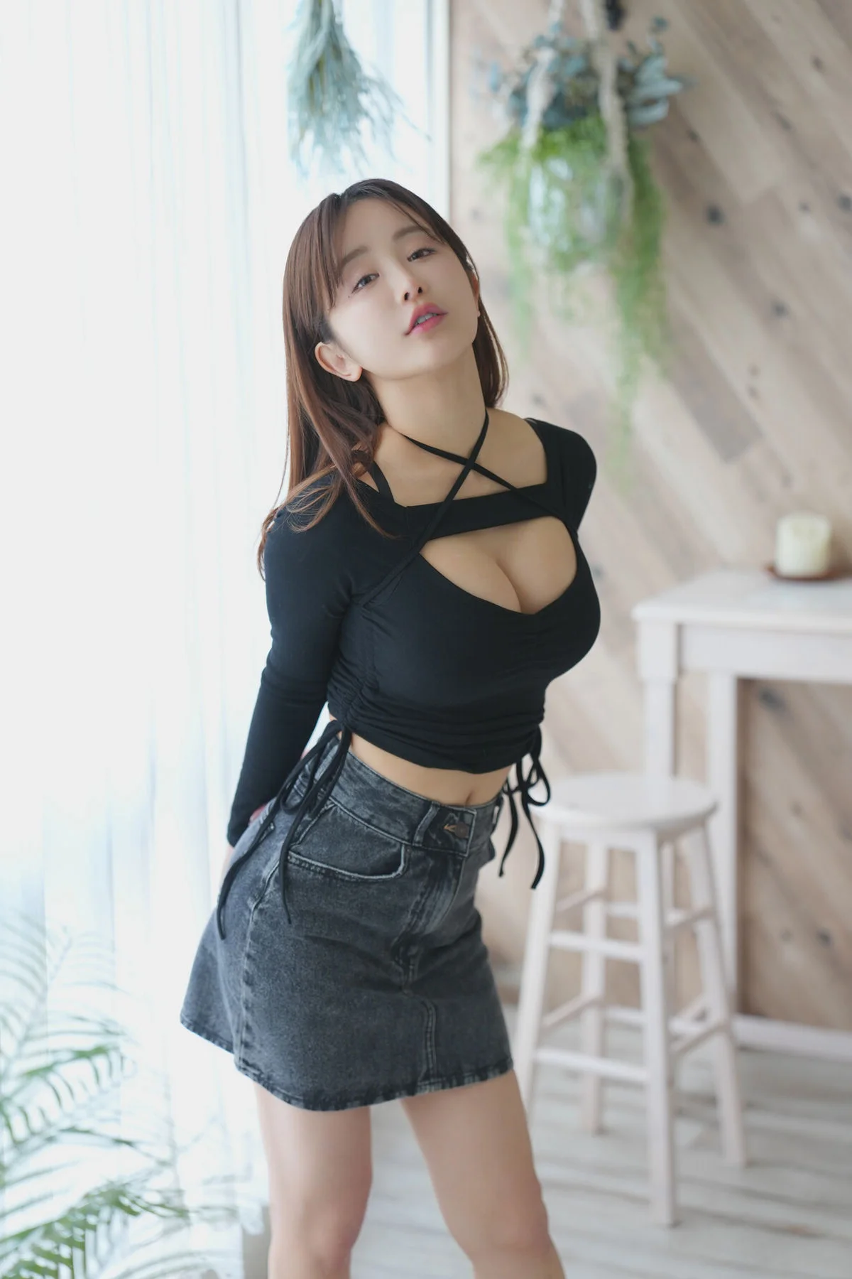 Set against a minimalist backdrop of white brick and rustic wooden panels, the muse Ikumi exudes a blend of soft elegance and undeniable allure in this Fantia 2025年05月合集 Part01 series. She masterfully embraces a contemporary fashion aesthetic, sporting a sleek black long-sleeved crop top with intricate strap details paired with a classic denim skirt. The contrast between the deep black fabric and the textured denim creates a sophisticated silhouette that highlights her graceful presence. Ikumi's contemplative expression and natural poise evoke a sense of quiet nostalgia, capturing a fleeting moment of peace. This imagery transcends a simple portrait, offering a beautiful fusion of artistic composition and refined fashion sense. Every detail, from the soft lighting to her enchanting gaze, invites the viewer to appreciate the unique charisma and artistic vision of 193iKkyu3.#IkumiStyle #MinimalistAesthetic #PortraitPhotography #FashionInspiration #VisualArt