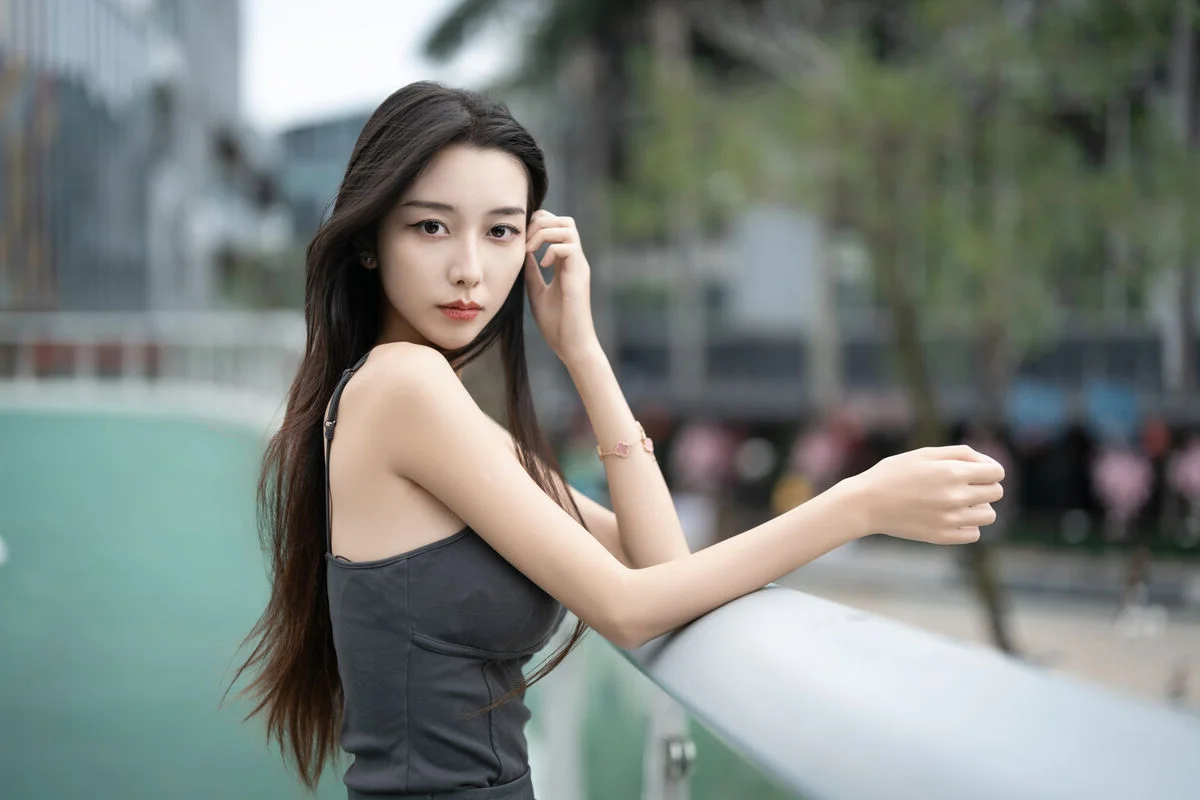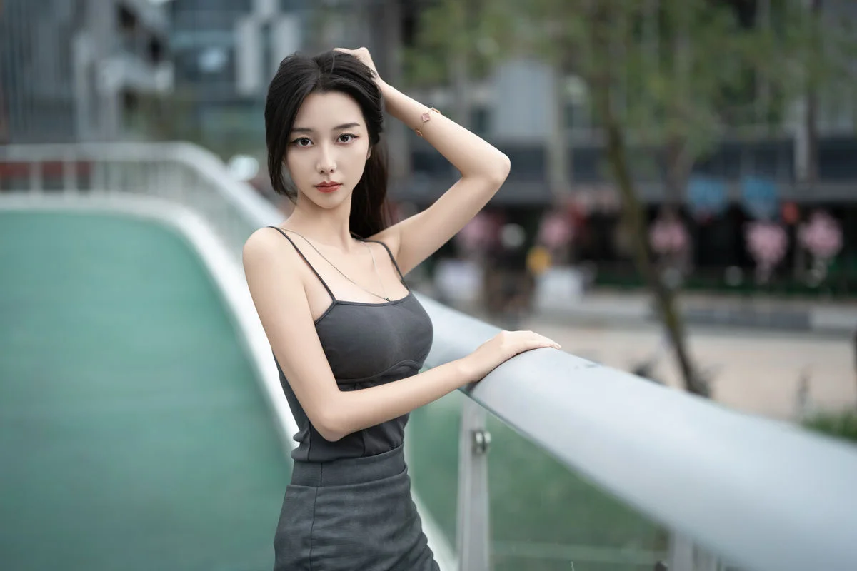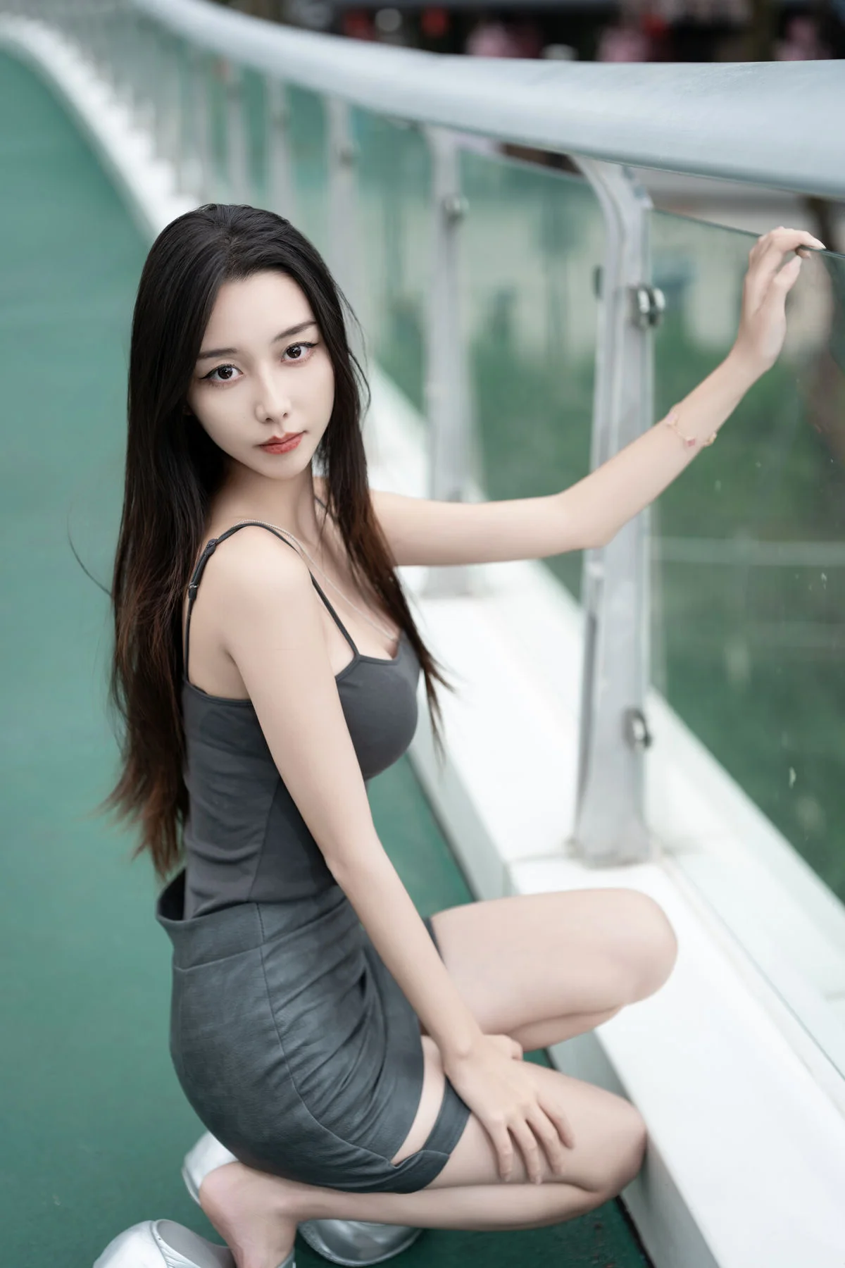 Step into a world where modern architecture meets feminine elegance in the latest 'Art Language' Vol. 8906 collection, featuring the stunning Yin Zi Er (茵籽儿). Dressed in a sophisticated palette of dark gray, Yin Zi Er embodies the essence of minimalist chic. The collection captures her leaning gracefully against a railing, a pose that strikes a perfect balance between vulnerability and strength, set against an urban backdrop that feels both intimate and expansive.This editorial is a masterclass in visual storytelling. The choice of dark gray apparel isn't just a fashion statement; it's a mood. It reflects a sense of quiet confidence and timeless style that resonates with the modern woman. Each of the 27 high-quality photographs explores the interplay of shadow and light, highlighting the sleek textures of the fabric and the soft contours of the model's silhouette. It’s an aesthetic journey designed for those who appreciate the 'less is more' philosophy in both fashion and life.