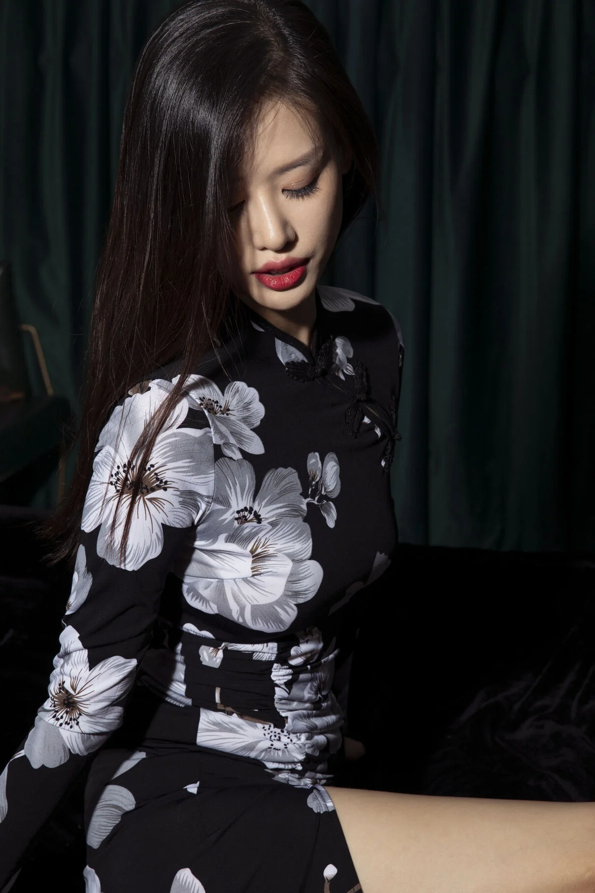 The YiTuYu Art Language Vol.8809 collection features Chenaling_CL, a model exuding captivating beauty. In this image, Chenaling_CL presents an alluring demeanor, her deep gaze directed straight into the camera, establishing a powerful connection with the viewer. She is adorned in a long-sleeved black dress featuring a striking large white floral pattern, which is both elegant and accentuates her slender figure. The dress is not merely attire but a piece of art, blending seamlessly with the dark background to evoke a sense of luxury and mystery. Chenaling_CL's natural yet expressive pose clearly conveys the artistic language the collection aims to communicate, offering an image that is both classic and modern, sparking curiosity and admiration for her compelling allure.#ChenalingCL #YiTuYu #ArtLanguage #FloralDress #AsianBeauty #ModelPhotography
