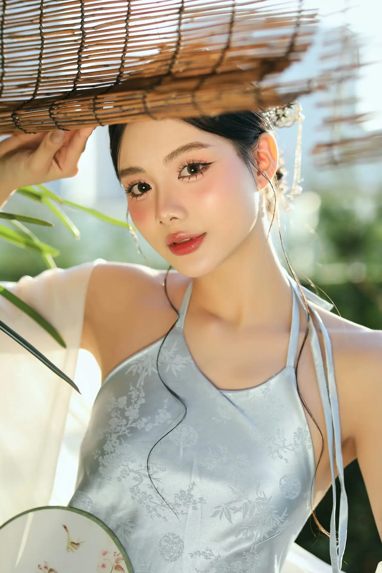 East Asian Grace: Girl in Modernized Attire and Exquisite Hair Ornament