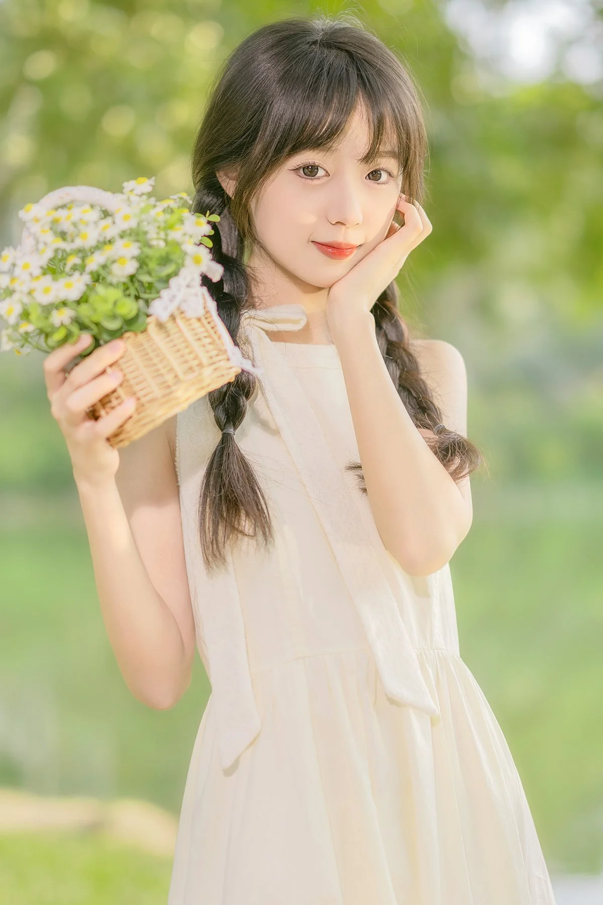 Immersed in the lush greenery of early spring, Mei Mei Xiao Yu radiates a gentle charm in this YiTuYu Art Language Vol.8896 collection. Her soft gaze and delicate features perfectly capture the essence of a peaceful morning spent in a sun-drenched garden where the grass just begins to sprout. Adopting a minimalist yet elegant Mori Girl aesthetic, she wears a light cream-colored dress that flows naturally, reflecting a sense of purity and grace. The choice of braided hair paired with a small basket of wildflowers adds a nostalgic and whimsical touch to the overall visual composition. The artistic language of this shoot relies heavily on soft pastel tones and natural bokeh, creating a dreamy, ethereal atmosphere that feels like a scene from a classic romantic novel. It is a beautiful celebration of youth and nature, providing endless inspiration for those who appreciate poetic and feminine photography styles.#SpringVibes #MoriGirlStyle #YiTuYu #ArtLanguage #MeiMeiXiaoYu #AestheticPhotography