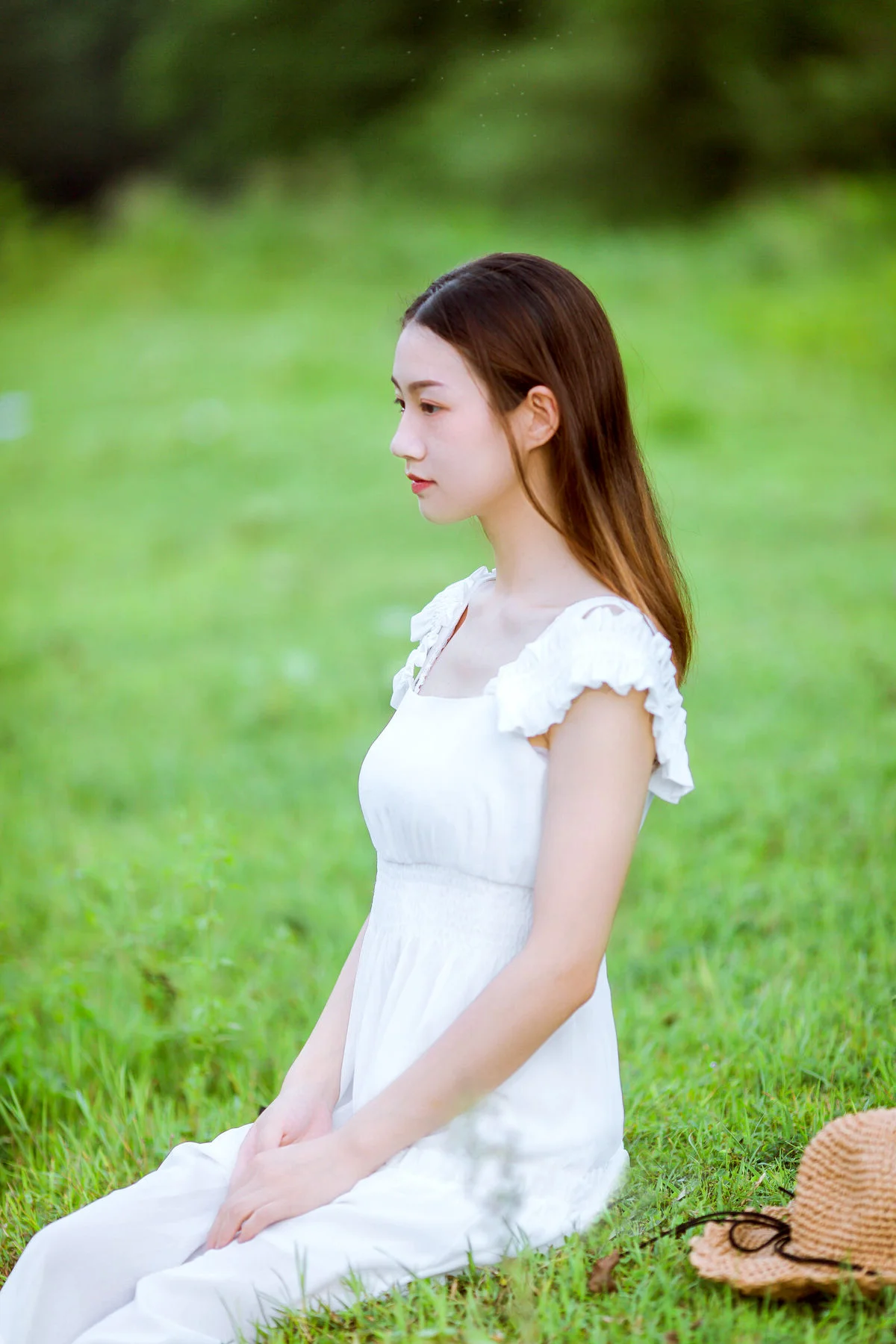 An Ran's Elegant White Dress XiuRen No.10747 Captivating Serenity in Natural Light.