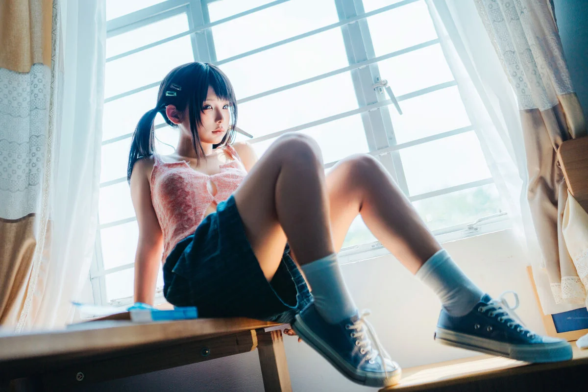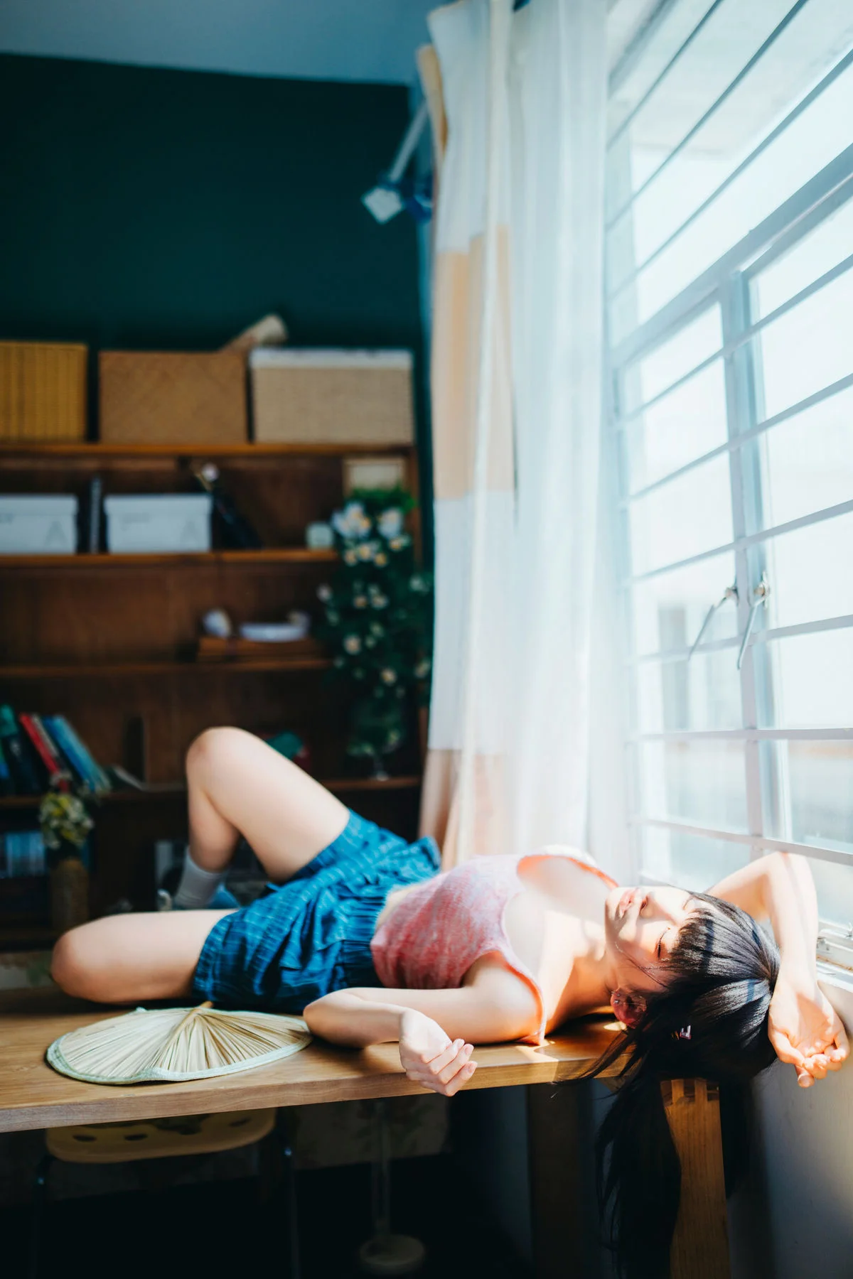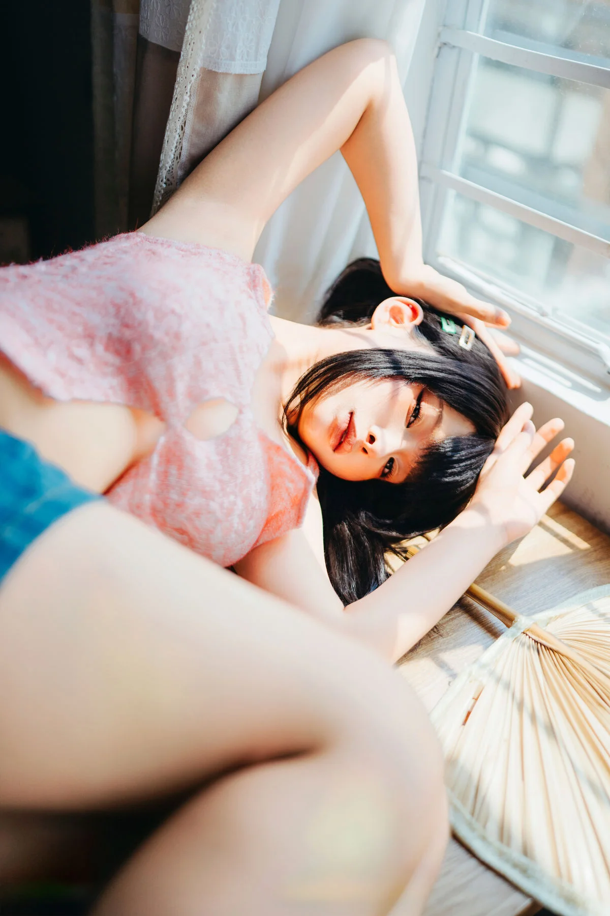 Immerse yourself in Part02 of Coser Chunmomo's captivating selfie collection, where natural beauty and charm are beautifully captured. In this particular shot, Chunmomo lies gracefully by a sunlit window, allowing the soft, natural light to gently caress her, creating a dreamy and emotionally rich atmosphere. A traditional fan resting nearby adds a touch of classic elegance to the scene. Her serene expression conveys a sense of peaceful contemplation, inviting viewers to delve into the inner world of this talented cosplayer. This image is a masterful blend of light and emotion, promising an engaging experience for fans and admirers alike.#CoserChunmomo #ChunmomoSelfie #NaturalLightPhotography #DreamyCoser #WindowLight #Chunmomo
