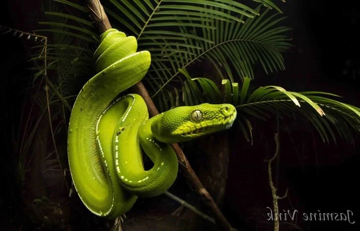 #GreenTreePython #NaturePhotography #MoreliaViridis #RainforestWonders #WildlifeArt #ExoticSpecies #EmeraldBeauty #NatureInspiration