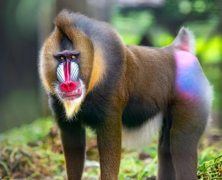 Deep within the lush rainforests of Central Africa, the Mandrill stands out as one of nature's most extraordinary and visually stunning creations. Known for possessing the most colorful face in the primate world, this majestic creature is a living palette of bold reds and striking blues that contrast beautifully against its thick, earthy-toned fur. The way the natural sunlight catches its silhouette highlights a powerful body language and a gaze full of ancient wisdom. These vivid pigments are more than just a visual feast; they serve as a fascinating biological language reflecting social status and vitality within their complex communities. Observing a Mandrill in its natural habitat feels like witnessing a moving piece of art, where every hue and texture tells a story of survival and social harmony. It is a humbling reminder of the breathtaking diversity and artistic brilliance found in the wild heart of our planet, inspiring a deep sense of wonder and appreciation for the natural world.#Mandrill #NaturePhotography #WildAfrica #ExoticAnimals #NatureLovers