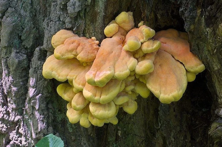 #ChickenOfTheWoods , #WildMushroomForaging , #LaetiporusSulphureus , #ForestTreasures , #VeganMeatSubstitute , #NaturePhotography , #EdibleFungi , #MushroomHunting