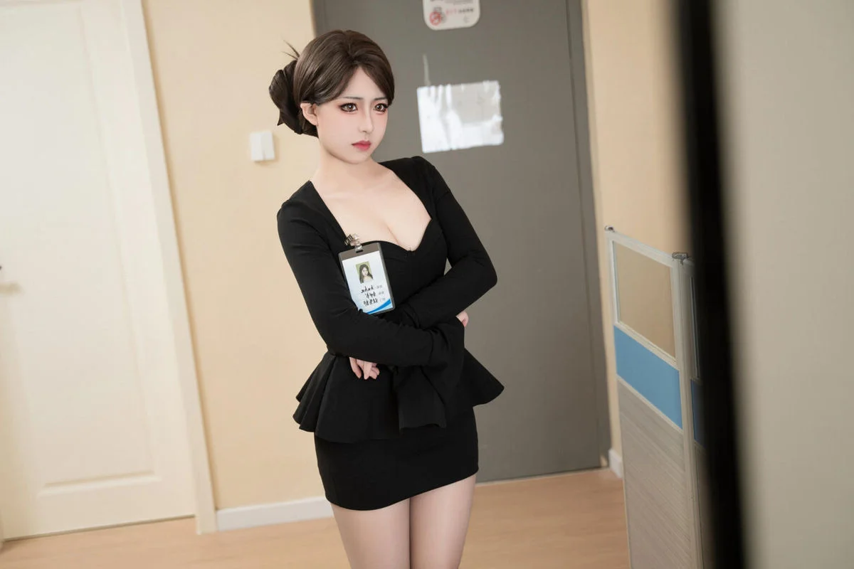 Step into a world of professional elegance and sophisticated style with this stunning "Secretary Reception Room" photography collection featuring the talented cosplayer Qing Shui You Nai. This set captures the essence of a modern corporate aesthetic, blending high-fashion sensibilities with a classic office environment. Every image is meticulously composed to showcase a polished, professional look that is both timeless and trendy for the modern workplace.Qing Shui You Nai portrays the role with grace, wearing a beautifully tailored white blouse and a sleek black pencil skirt that epitomizes the "Office Siren" or corporate chic trend currently taking social media by storm. The setting—a well-appointed reception room—adds an air of authenticity and class to the series. Whether you are looking for fashion inspiration for your work wardrobe or appreciate high-quality portrait photography, this collection offers a wealth of visual appeal.