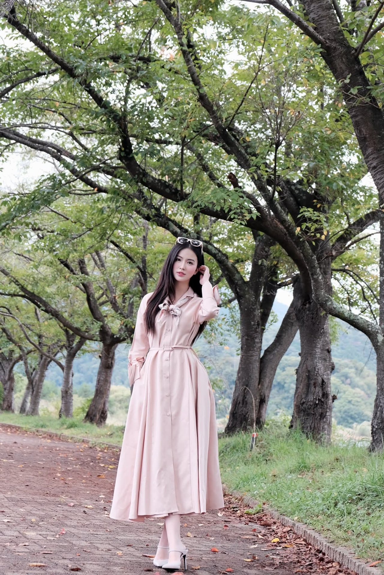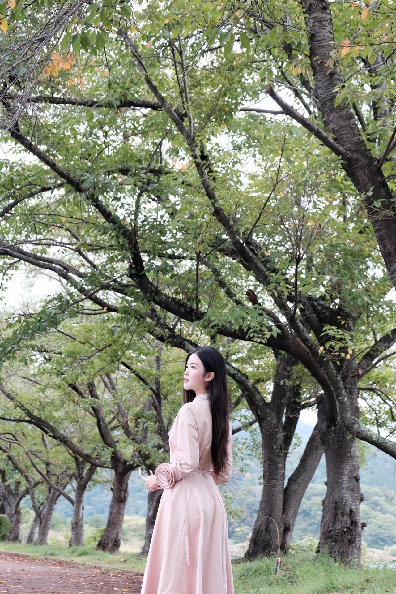 This exquisite photograph captures a young woman embodying the serene grace of Asian beauty, adorned in a delicate light pink Hanfu, intricately embroidered. She stands elegantly in a lush garden, where the foliage hints at autumn's embrace with touches of red and orange, creating a truly romantic and picturesque backdrop. A traditional yellow paper umbrella, held with a gentle poise, serves as a charming accent, further enhancing her classic and refined appearance. Her soft gaze and subtle smile, combined with the ethereal mist at her feet, transport viewers into a scene straight out of an ancient fairy tale. More than just a portrait, this image celebrates cultural heritage and traditional aesthetics, evoking a sense of peaceful nostalgia and timeless charm.#VGU #Hanfu #AsianBeauty #Traditional #Garden #Portrait