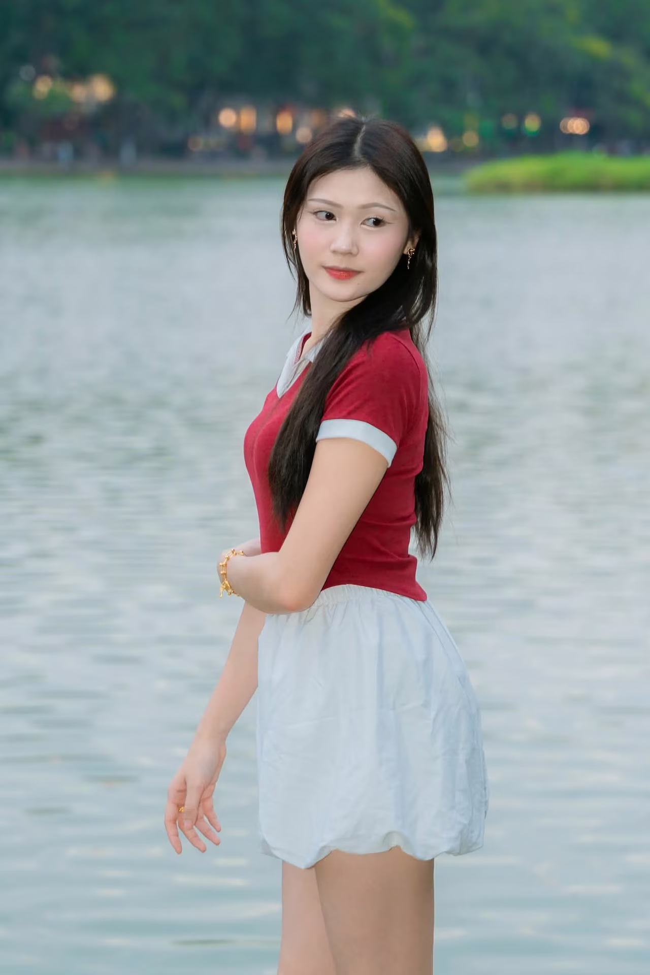 This VGU No42 image captures a beautiful moment of a vibrant and elegant Vietnamese girl Dressed in a simple yet stylish red top and white shorts she confidently strolls along the sparkling lakeside A colorful array of yellow orange and red flowers lines the pathway creating a picturesque and energetic backdrop The gentle beauty of the person harmonizes with the fresh natural scenery evoking a sense of peace and relaxation This is more than just a fashion photo it is a symbol of the natural beauty and modern lifestyle of young Vietnamese people in an urban setting The image offers an intimate glimpse into daily life and the charming landscapes of Vietnam #Vietnamese #pretty #charm