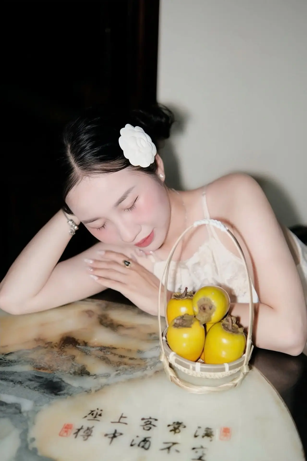 This captivating image captures a young woman in a pristine white dress highlighting her graceful and delicate beauty. The white paper umbrella she holds is not just an accessory but a refined focal point evoking a sense of traditional Asian charm. Under the soft glow of the night lights the scene becomes mysterious and romantic like a serene otherworldly painting. Every detail from the flower in her hair to her elegant posture exudes a gentle allure creating a breathtaking visual. It’s a perfect blend of modern elegance and classic aesthetic offering a wonderfully peaceful sensation.#WhiteDress #PaperUmbrella #AsianBeauty #NightFashion #OutdoorPhotography