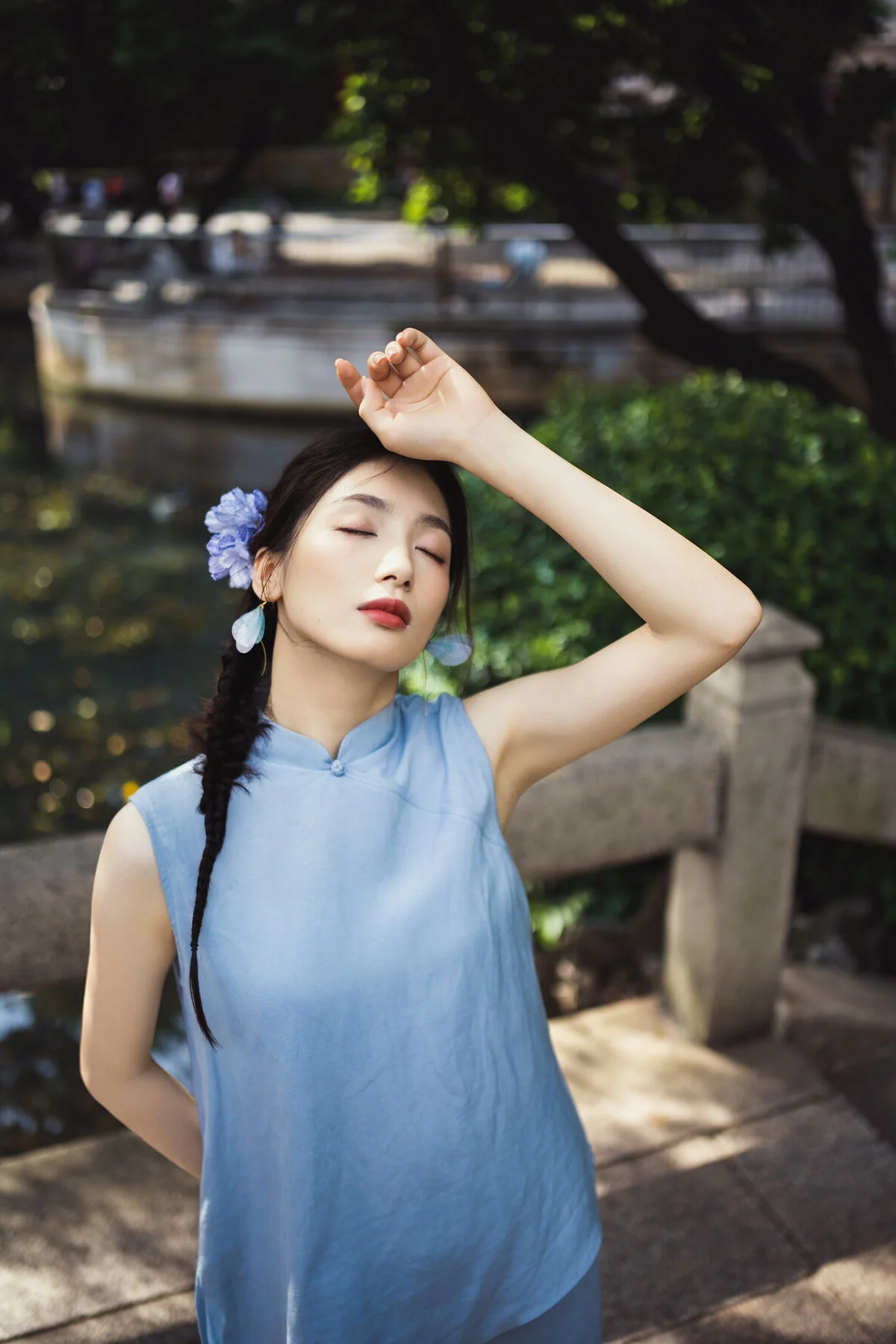 Elegant Summer Aesthetic Portrait Series: Art Language Vol.9364 featuring Model Bu Yao Zhang Rou in a Sweet Mint Breeze Setting