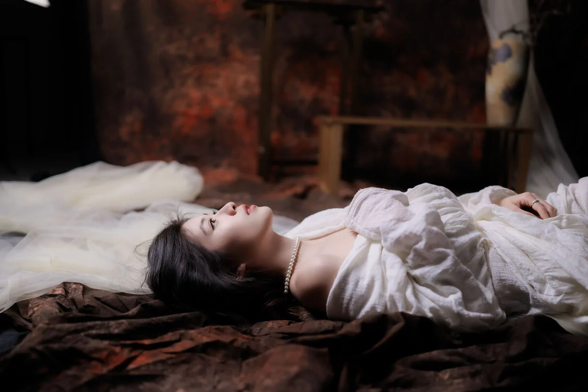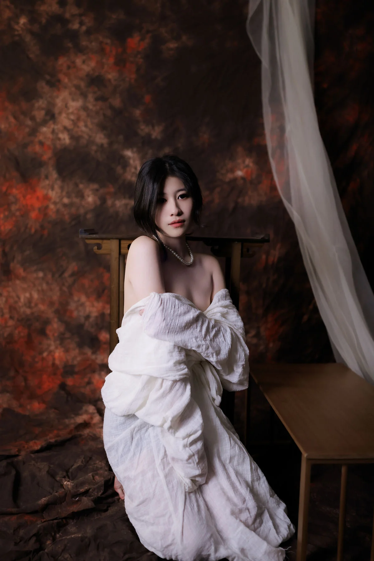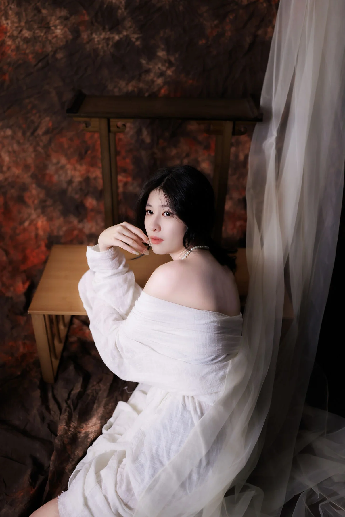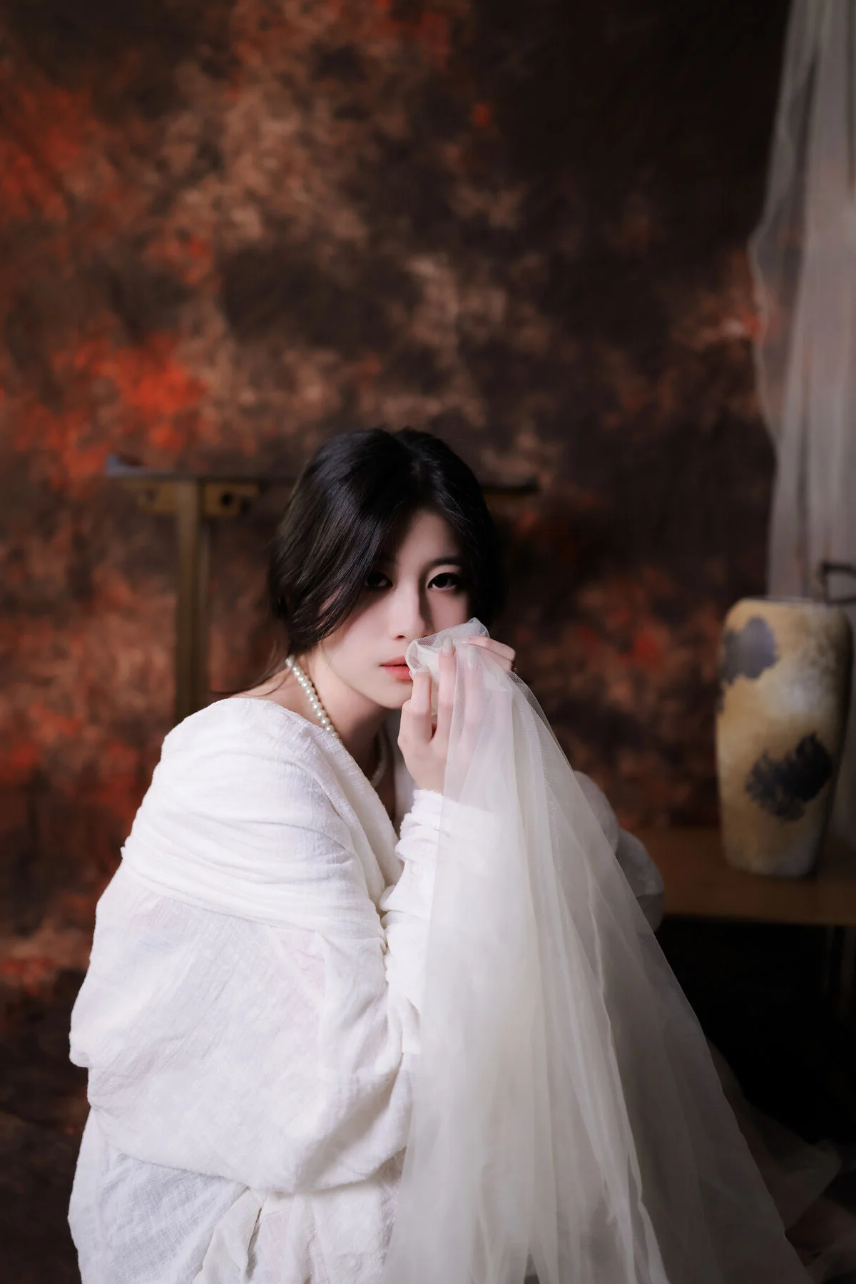 Step into a world of profound elegance and artistic storytelling with this captivating photography series featuring the talented model Ri Nai Jiao (日奈娇). In this specific collection, titled 未亡人 Part01, the artist explores a sophisticated mourning aesthetic that blends traditional somber tones with modern fashion sensibilities. The visual narrative is built around a stunning black lace ensemble, complemented by a delicate mourning veil that adds an air of mystery and grace to every frame. Ri Nai Jiao delivers a powerful performance, using subtle expressions and graceful poses to convey a sense of quiet reflection and timeless beauty.The lighting in these images is masterfully handled, highlighting the intricate textures of the lace and the soft contours of the studio setting. This collection is more than just a typical cosplay; it is a refined study in portrait photography where every detail, from the choice of accessories to the atmospheric backdrop, contributes to a cohesive and emotionally resonant theme. For fans of high-end photography and aesthetic fashion, this series offers a masterclass in thematic consistency and visual depth.