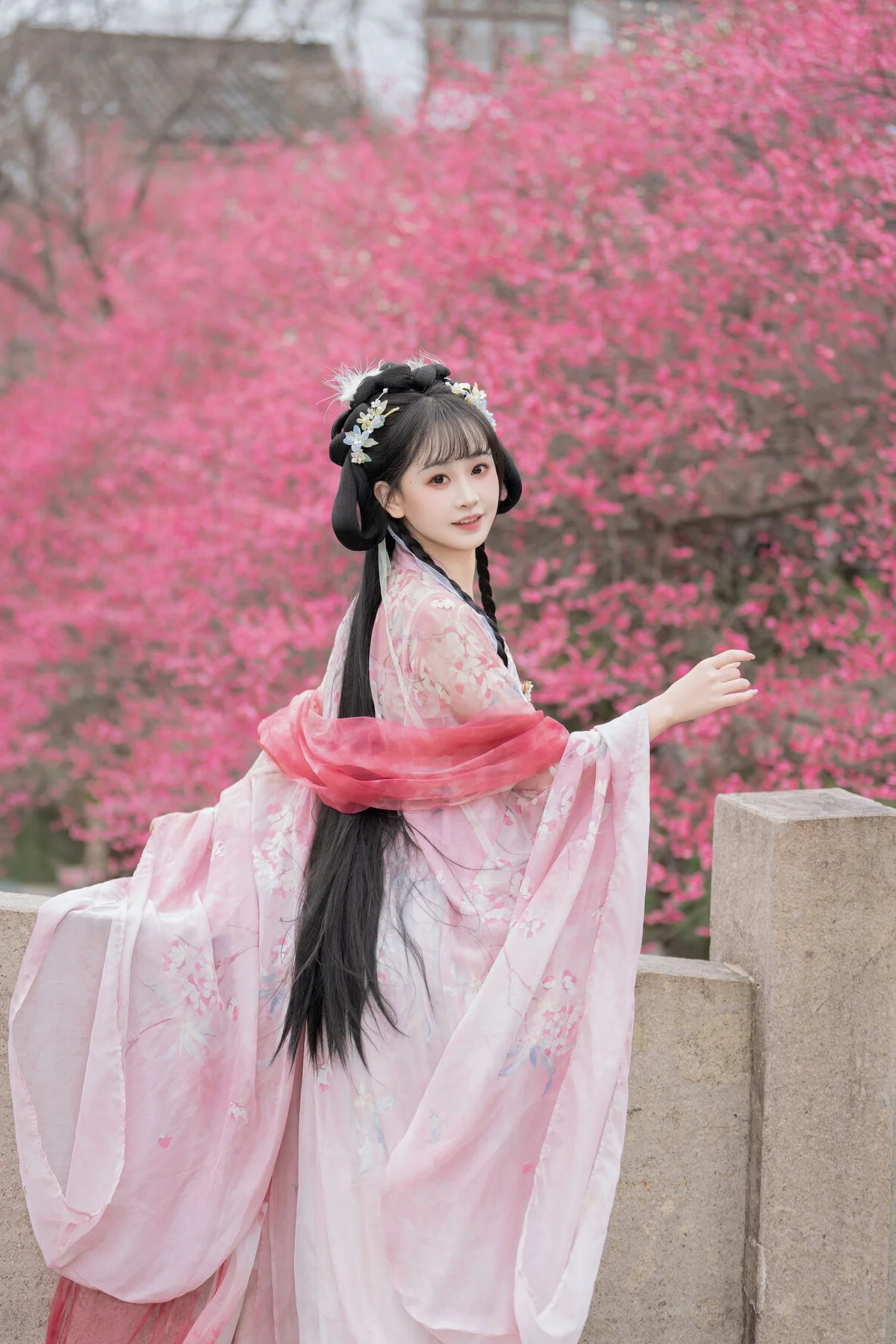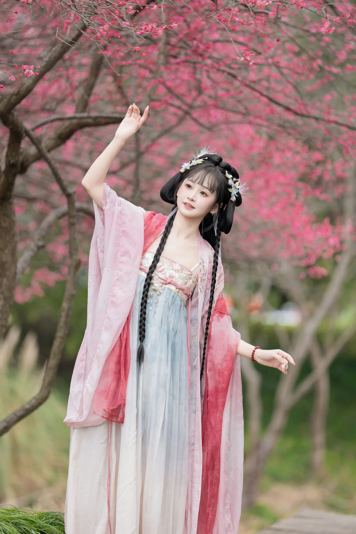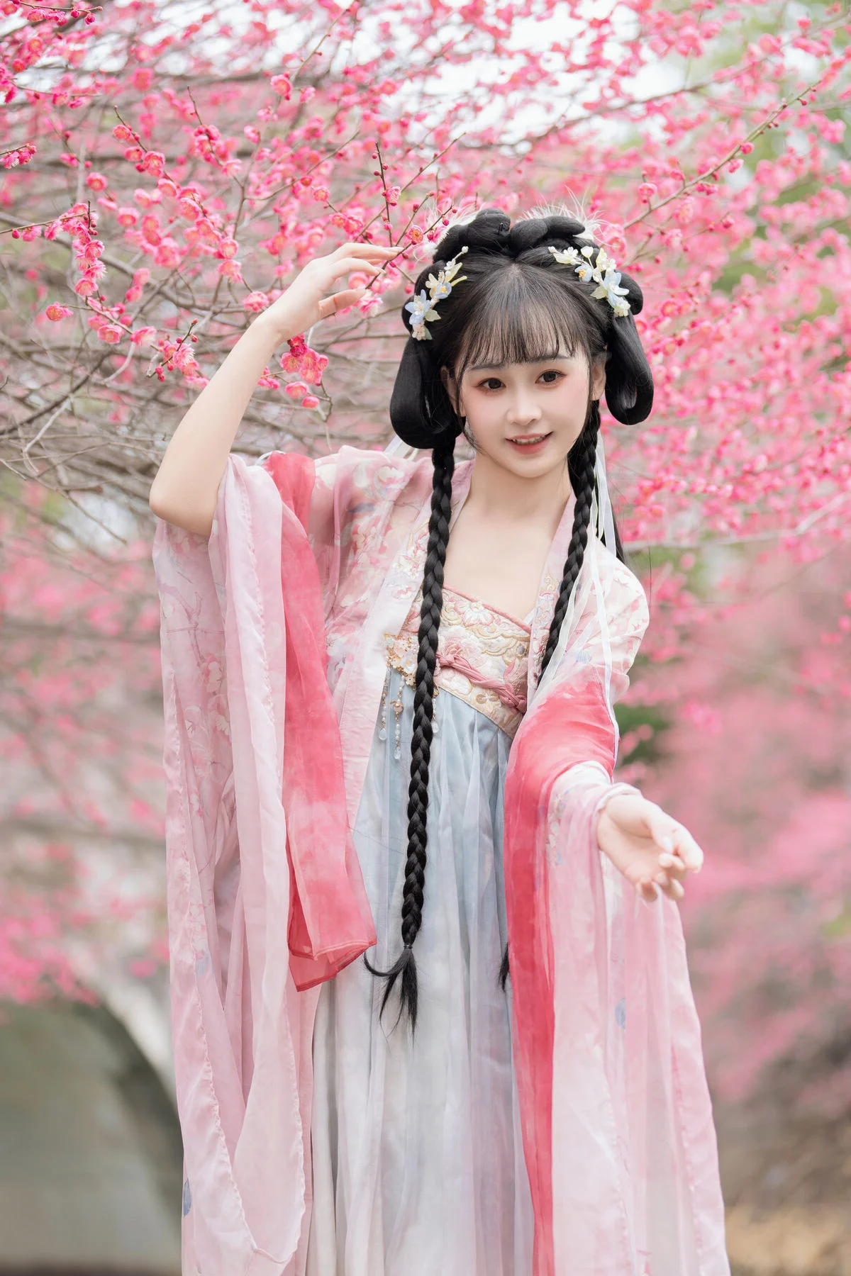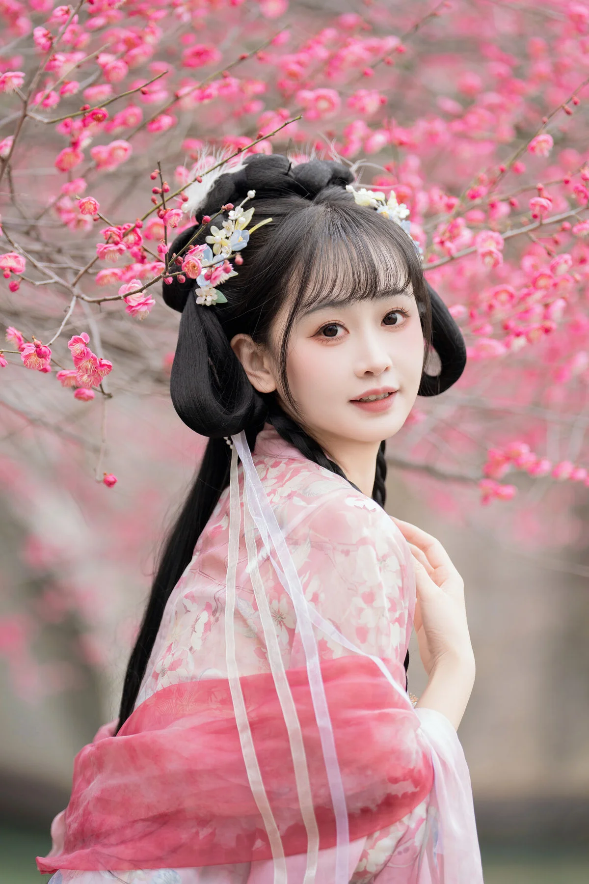 Stepping into the dreamy atmosphere of the Meiling plum forest, Jiao Yi Zhi Sui Sui embodies the essence of classical elegance in a stunning light blue Hanfu. The delicate contrast between the vibrant pink blossoms and the soft flowing fabric creates a visual masterpiece that feels both nostalgic and timeless. Her ethereal gaze, partially hidden beneath a sheer veil, captures a sense of mystery and grace characteristic of ancient poetry. The intricate embroidery and the lightweight material of the attire reflect a sophisticated aesthetic, blending seamlessly with the natural beauty of the surroundings. Meiling is renowned for its breathtaking scenery during the blooming season, offering a serene backdrop that enhances the model fairy like aura. This collection is a poetic exploration of visual art where traditional fashion meets the quiet whispers of nature, inviting the viewer into a world of peace and romanticism that lingers long after the first glance.#HanfuAesthetic #PlumBlossom #TraditionalFashion #EtherealBeauty #TravelPhotography #YiTuYu