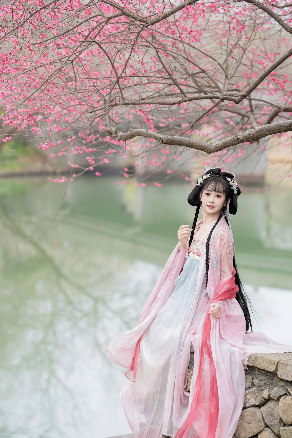 Discover the captivating beauty of Jiao Yi Zhi Sui Sui in the YiTuYu Vol.8759 collection. The enchanting model, adorned in a delicate pink and white Hanfu, gracefully poses amidst a breathtaking display of blooming plum blossoms. Her serene expression and elegant posture evoke a sense of timeless charm, perfectly harmonizing with the tranquil waterscape and lush natural backdrop. This collection beautifully captures the essence of traditional Asian aesthetics and the vibrant spirit of spring, inviting viewers into a world of poetic grace and cultural artistry.#JiaoYiZhi #SuiSui #Hanfu #PlumBlossoms #AsianBeauty #YiTuYu