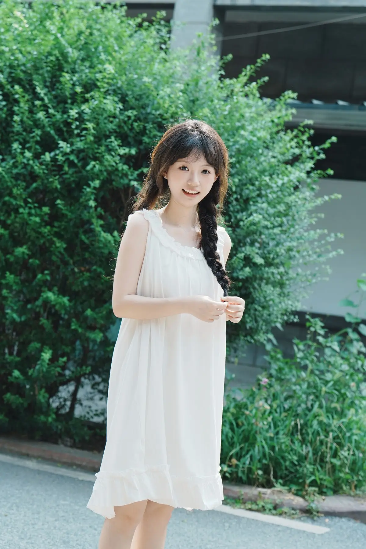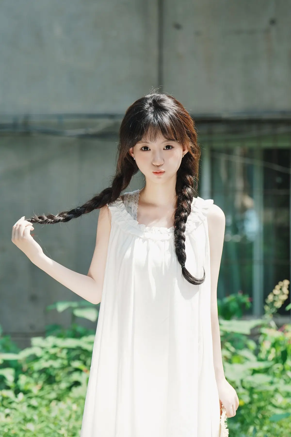 Immerse yourself in the captivating world of Shika小鹿鹿 from the enchanting Dokidoki2 collection. This photograph beautifully captures her pristine and gentle charm, a sight that truly melts hearts. Shika小鹿鹿 appears with flowing long hair, partially framing her face, creating an alluring sense of mystery. Her eyes are clear and innocent, yet hold a hint of playful mischief that is irresistible. The simple white top further enhances her pure and ethereal beauty. Every detail, from the soft natural lighting to her delicate expression, blends harmoniously to form an emotionally rich artistic moment. This is more than just a picture; it is an invitation to explore the exquisite nuances of Asian beauty, leaving viewers deeply moved and utterly unforgettable.