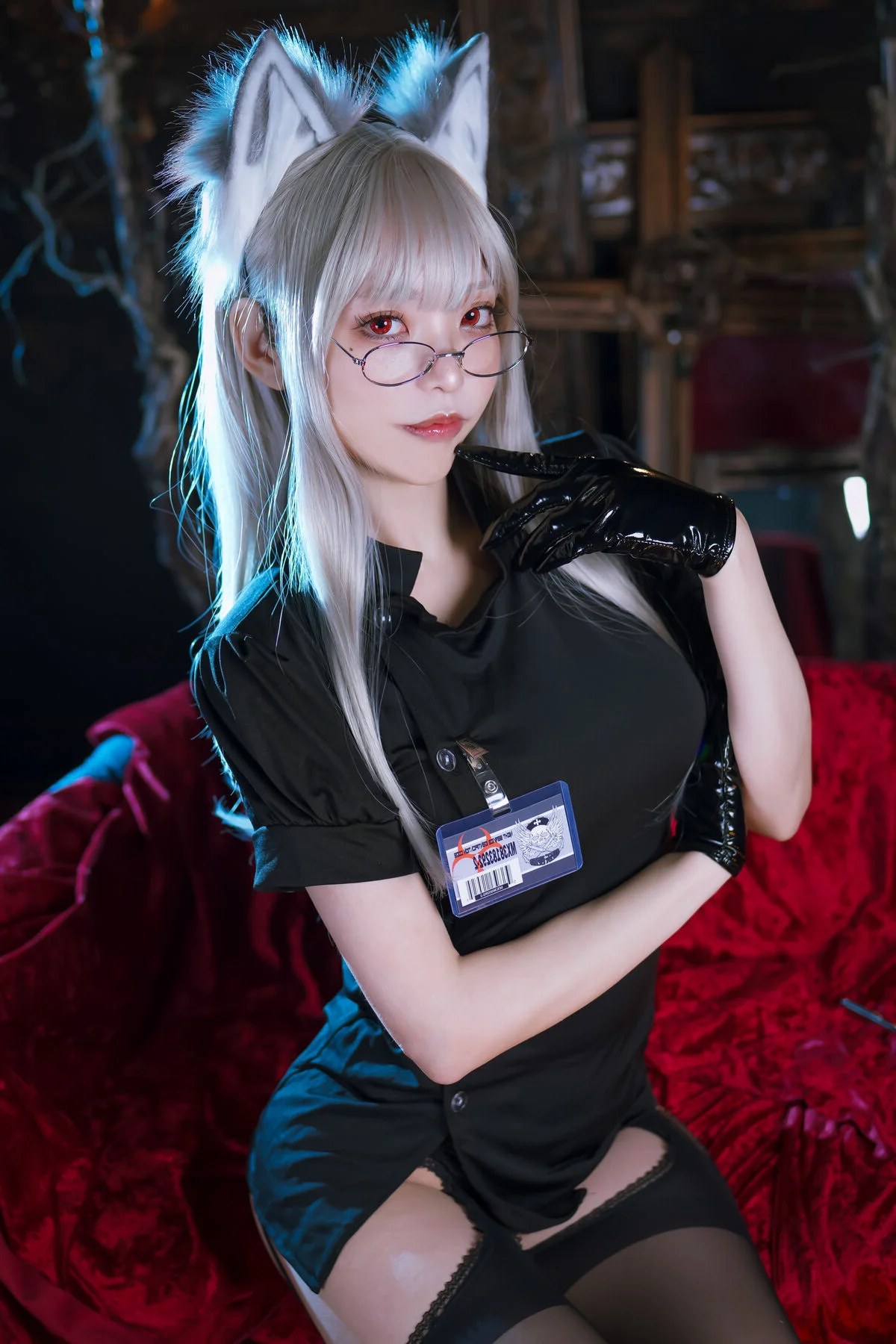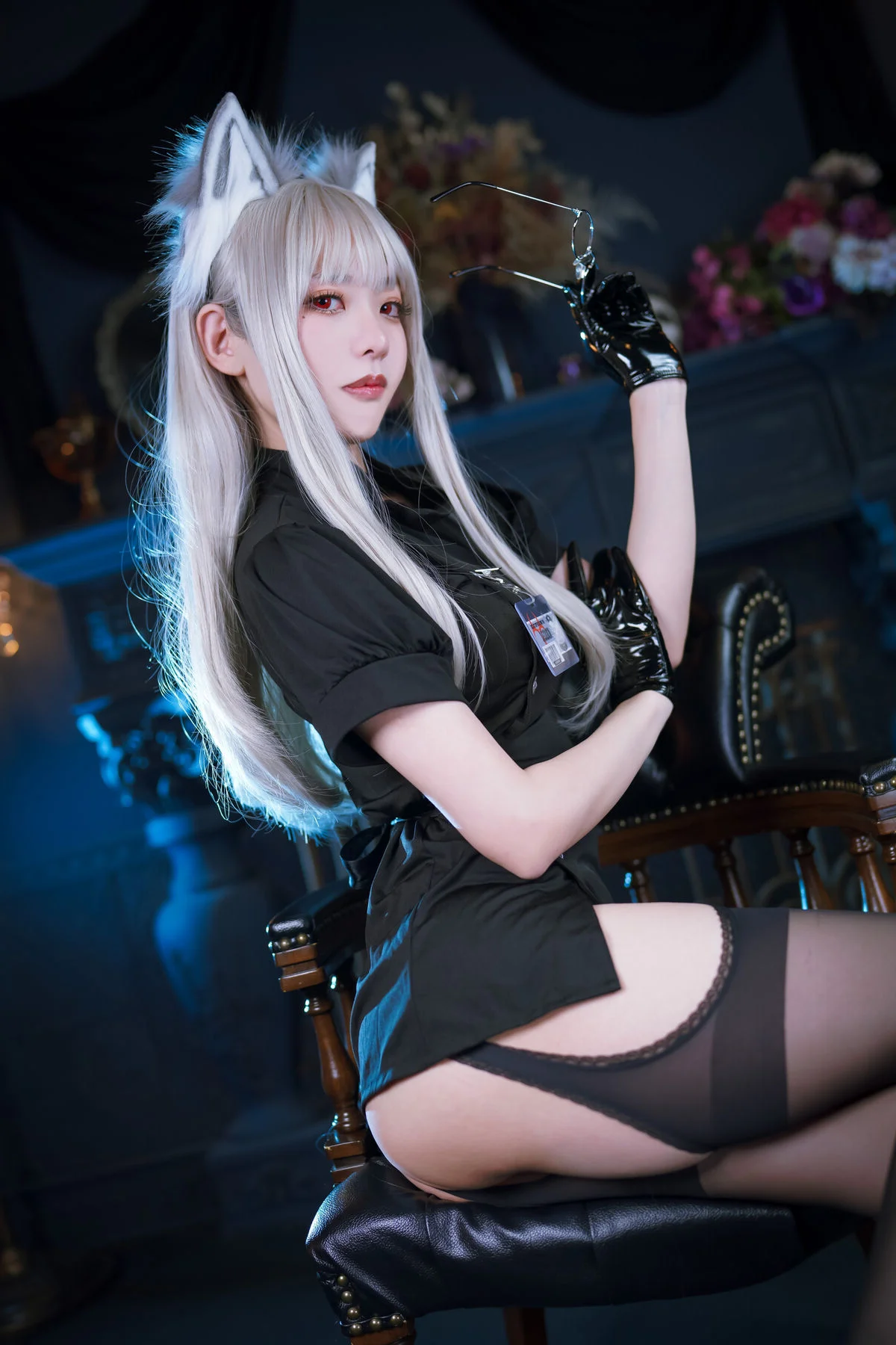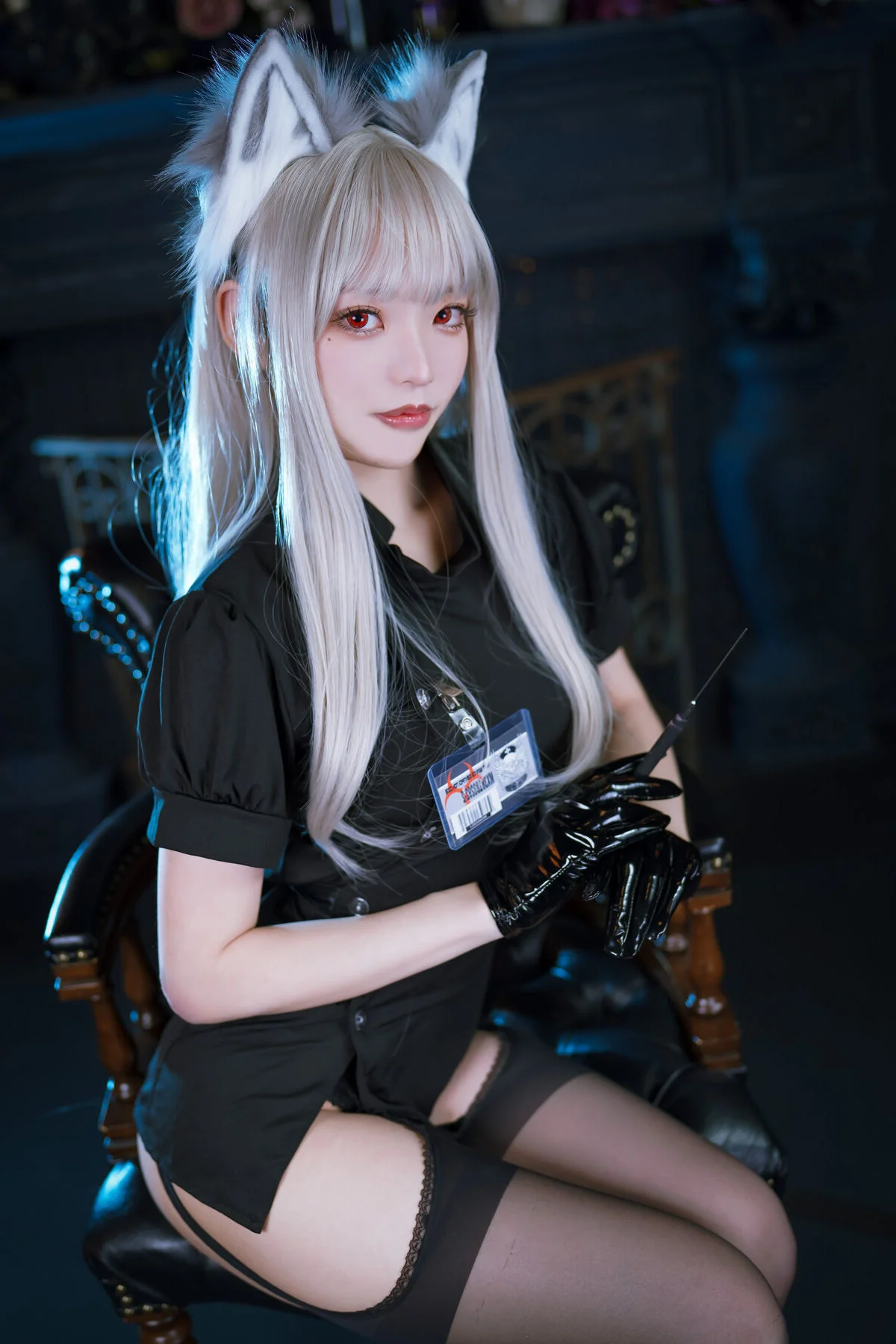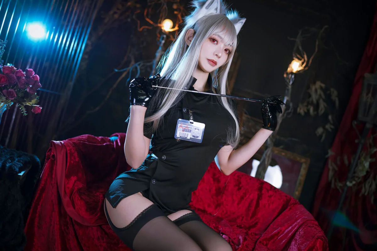 Immerse yourself in a mystical world with the Coser Kurotia Kuro くろてぃあ-くろ-NURSE photo set, where a mysterious black nurse appears enchanting. With striking platinum hair and playful cat ears, she transforms into a captivating character. The exquisitely designed black nurse outfit, form-fitting and stylish, perfectly complements the delicate, ethereal black silk stockings, highlighting her sensual beauty and long, slender legs. Her charismatic pose on the red velvet chair further enhances the mystical allure, turning the image into an impressive cosplay artwork that sparks imagination about a fantasy world full of surprises.#NurseCosplay #KurotiaKuro #BlackNurse #BlackSilkStockings #SeductiveCosplay
