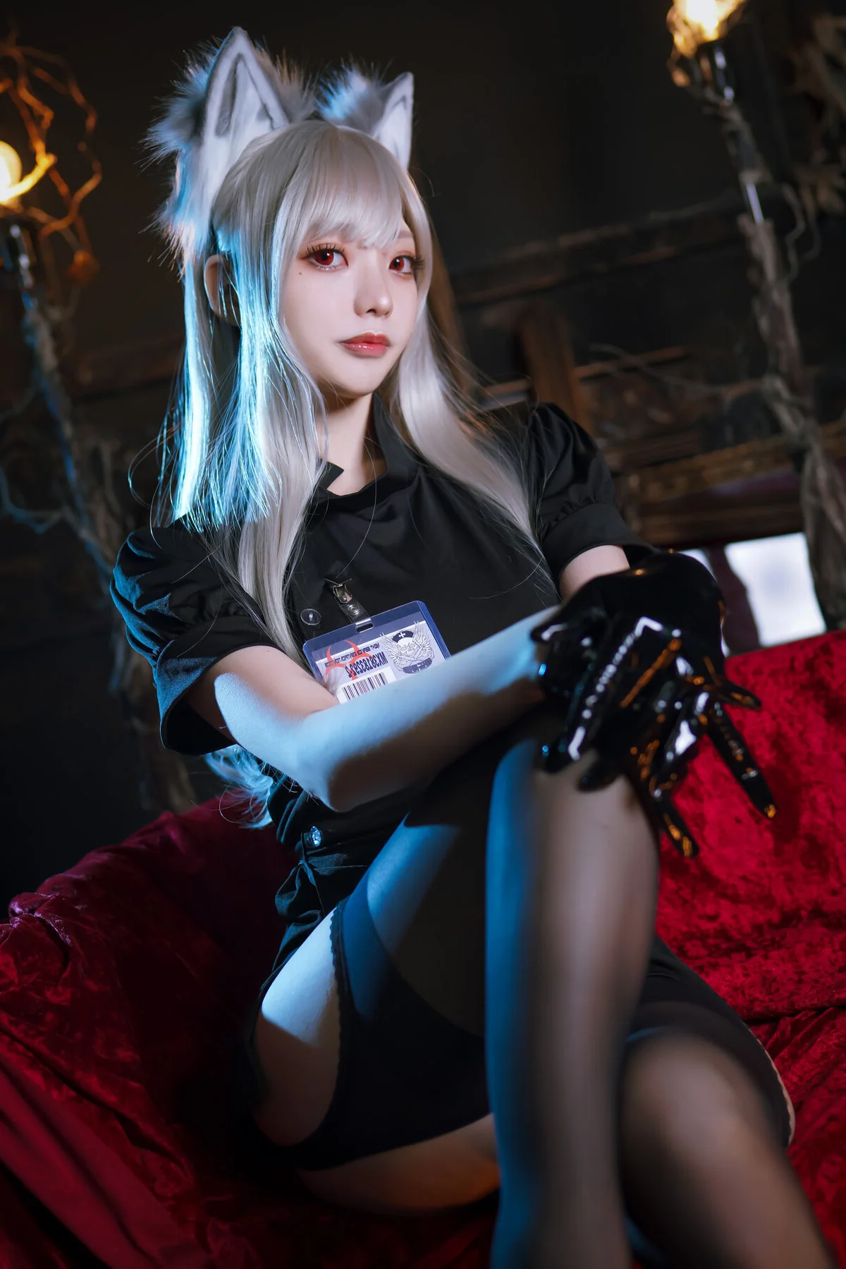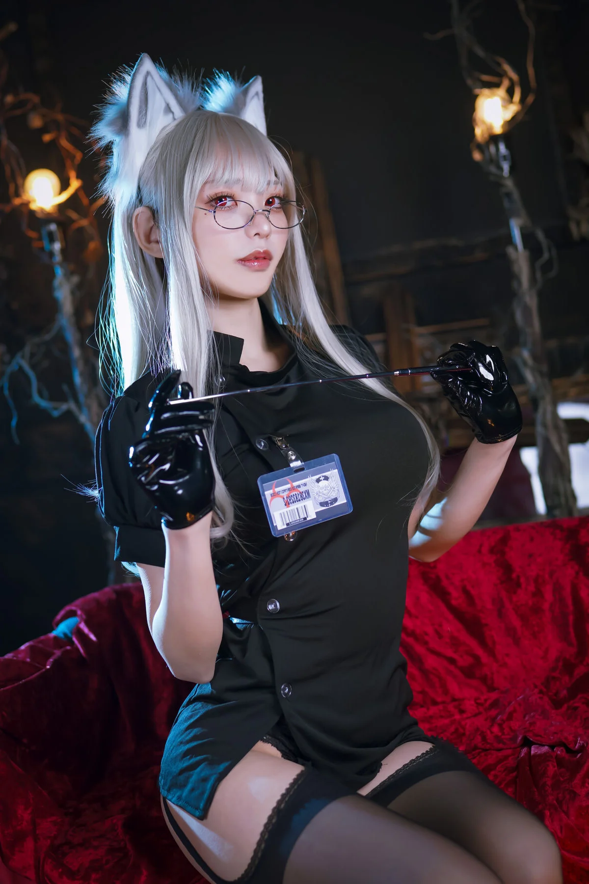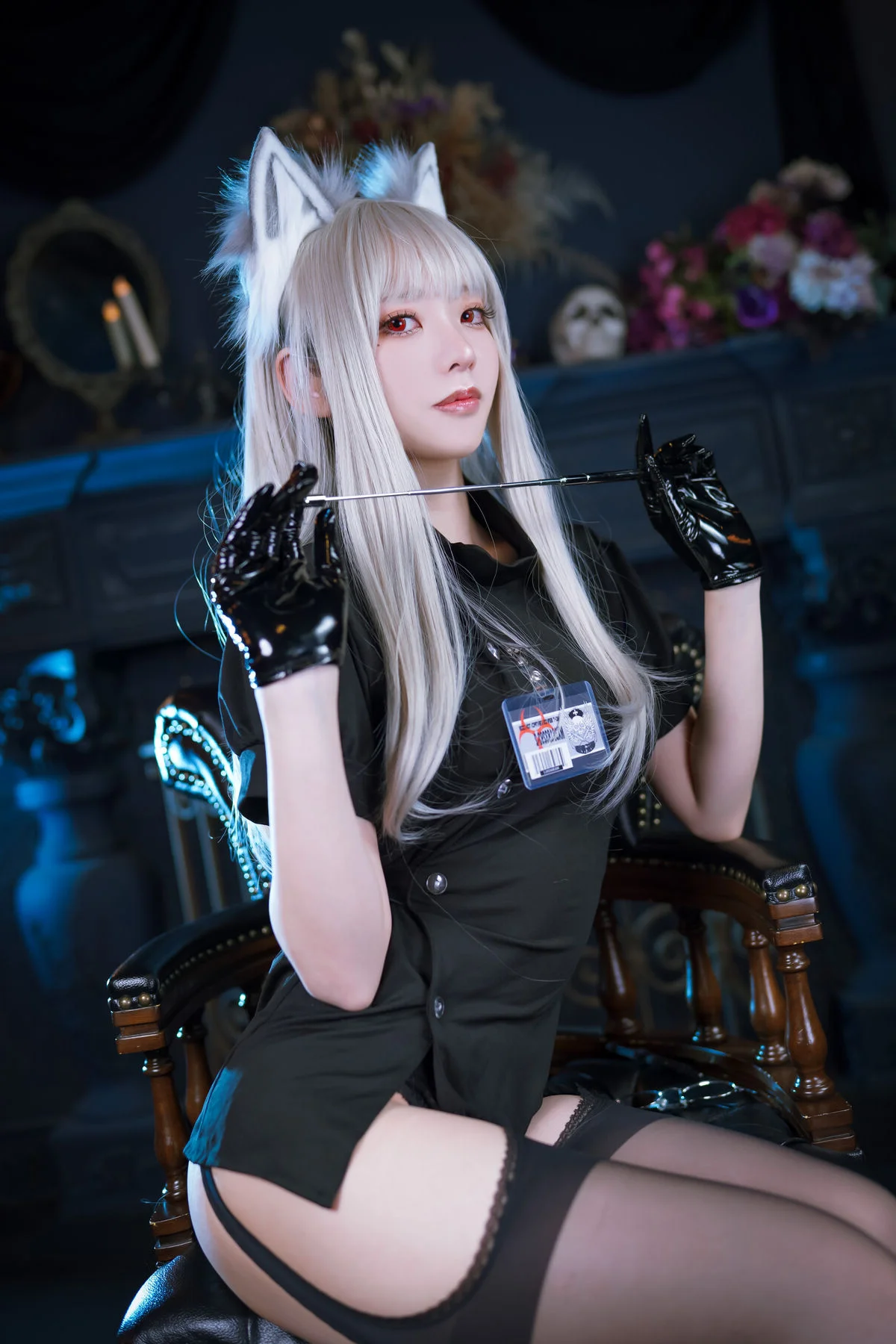 Immerse yourself in a mystical world with the Coser Kurotia Kuro くろてぃあ-くろ-NURSE photo set, where a mysterious black nurse appears enchanting. With striking platinum hair and playful cat ears, she transforms into a captivating character. The exquisitely designed black nurse outfit, form-fitting and stylish, perfectly complements the delicate, ethereal black silk stockings, highlighting her sensual beauty and long, slender legs. Her charismatic pose on the red velvet chair further enhances the mystical allure, turning the image into an impressive cosplay artwork that sparks imagination about a fantasy world full of surprises.#NurseCosplay #KurotiaKuro #BlackNurse #BlackSilkStockings #SeductiveCosplay