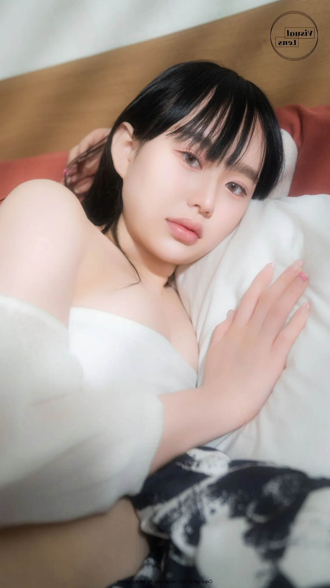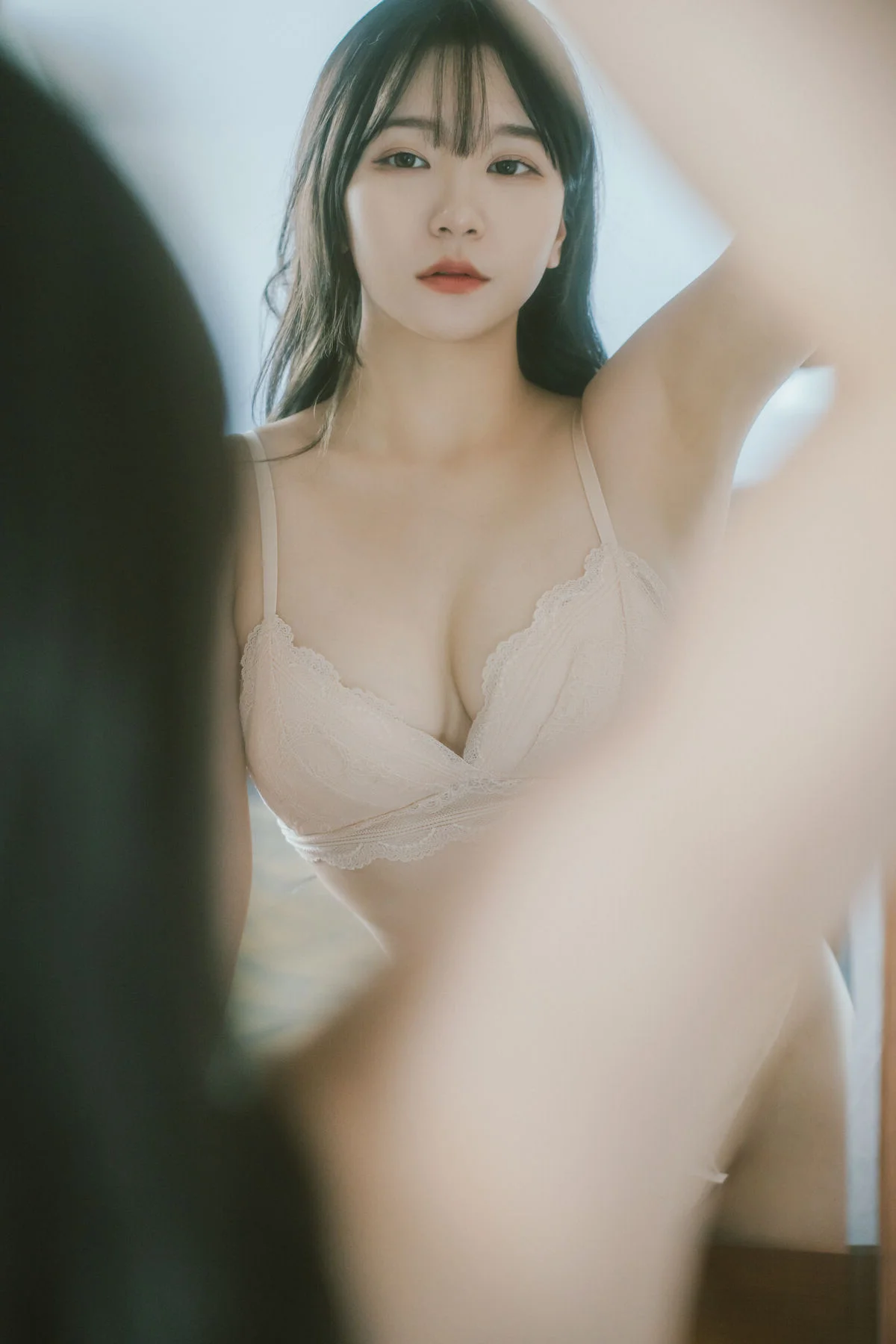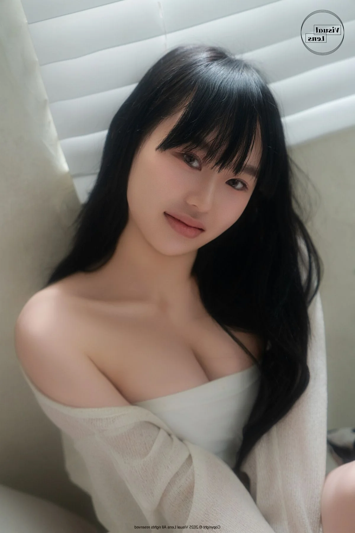 This frame captures a moment of pure serenity and intimate beauty within the Visual Lens Hansae - The Curtains Vol.01 collection. Hansae radiates a gentle charm, her soft gaze reflecting a sense of calm that resonates deeply with the viewer. Dressed in a delicate white cardigan, the choice of material adds a layer of warmth and coziness to the overall visual narrative. The minimalist fashion style emphasizes natural elegance over complexity, showcasing how simplicity can be profoundly captivating in a modern lifestyle context. Natural light filters through the room, creating a soft focus effect that enhances the dreamy atmosphere and highlights her subtle features with grace. It is a beautiful blend of lifestyle photography and artistic expression, celebrating the quiet moments of a morning routine where time seems to slow down. The composition and color palette evoke a feeling of nostalgia and peace, making it a perfect inspiration for those who appreciate the fine art of visual storytelling and the timeless appeal of soft, natural aesthetics.#VisualLens #Hansae #SoftAesthetic #PortraitArt #CozyVibes