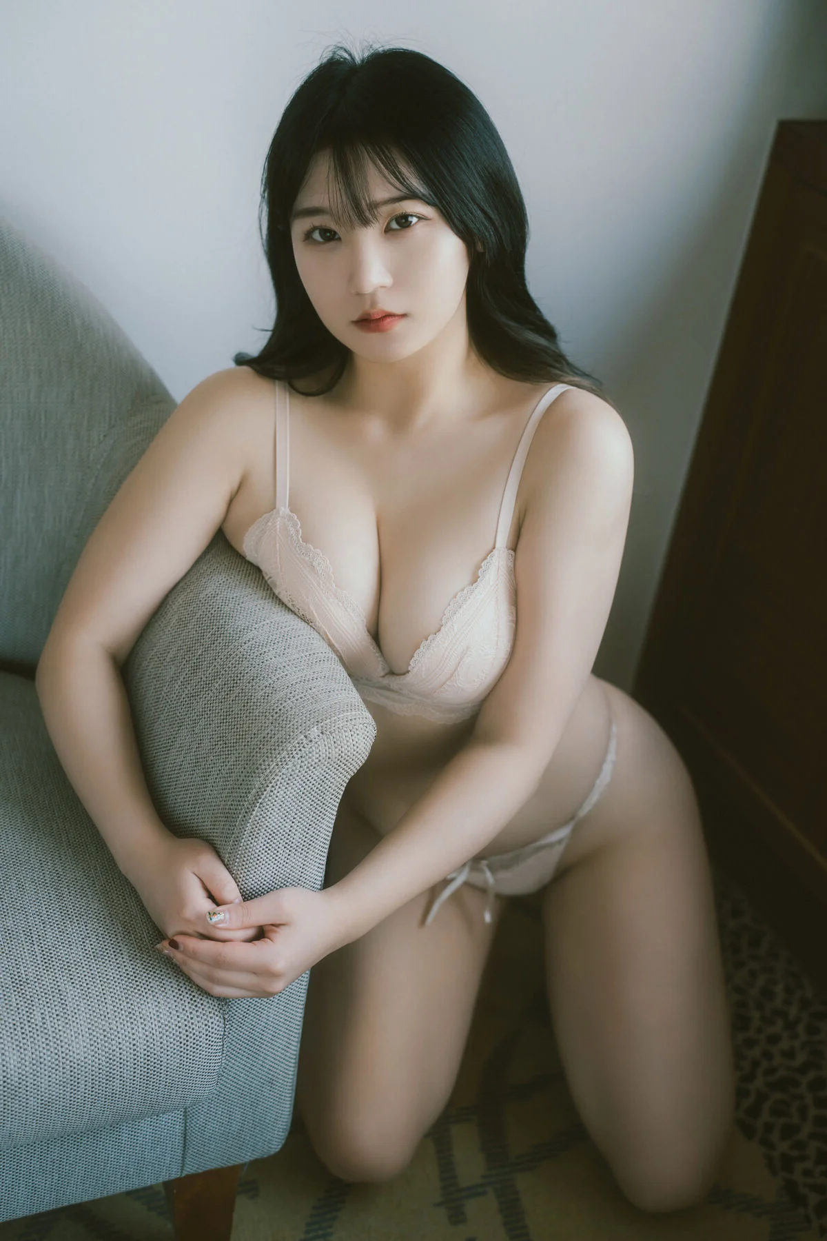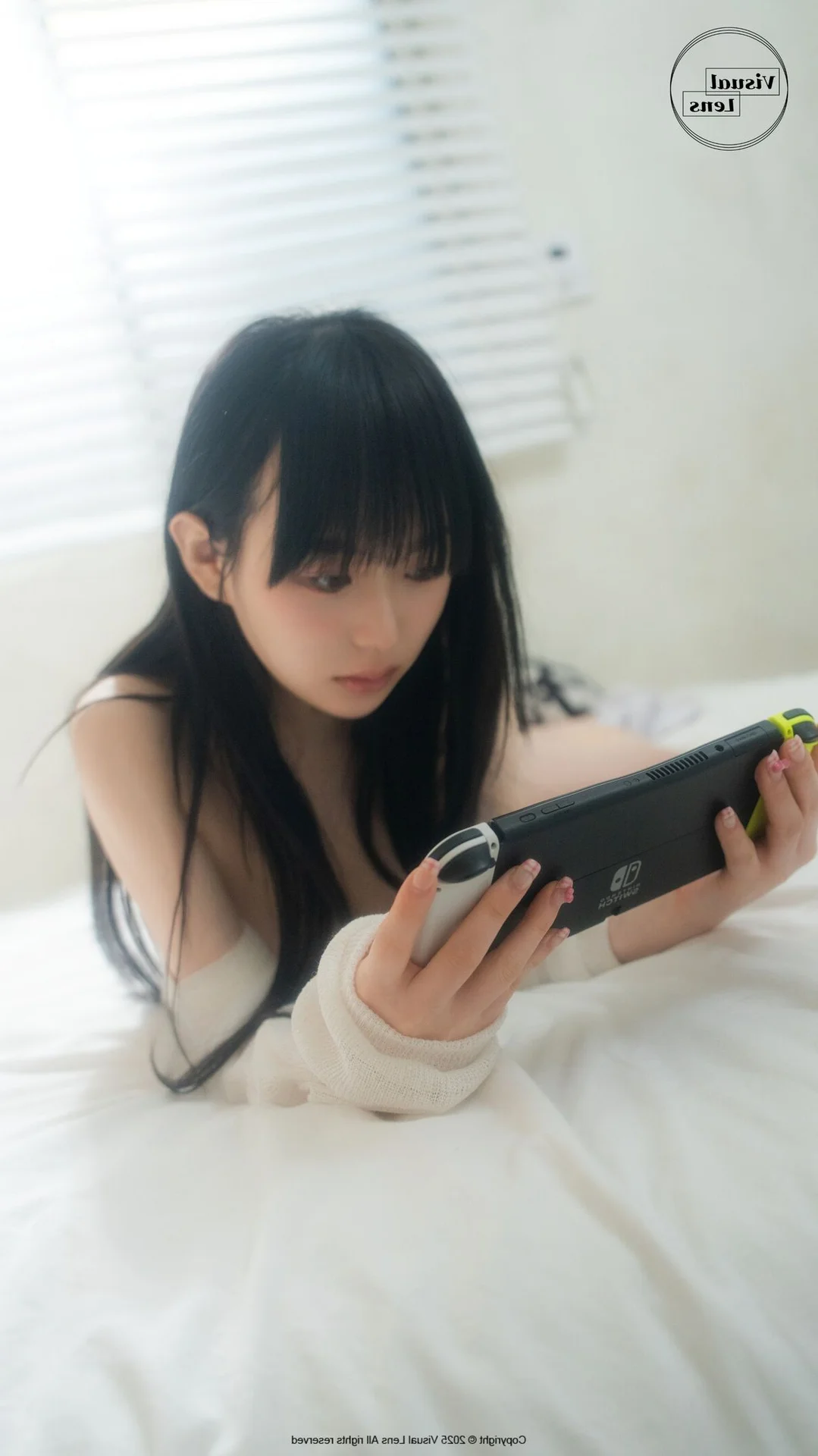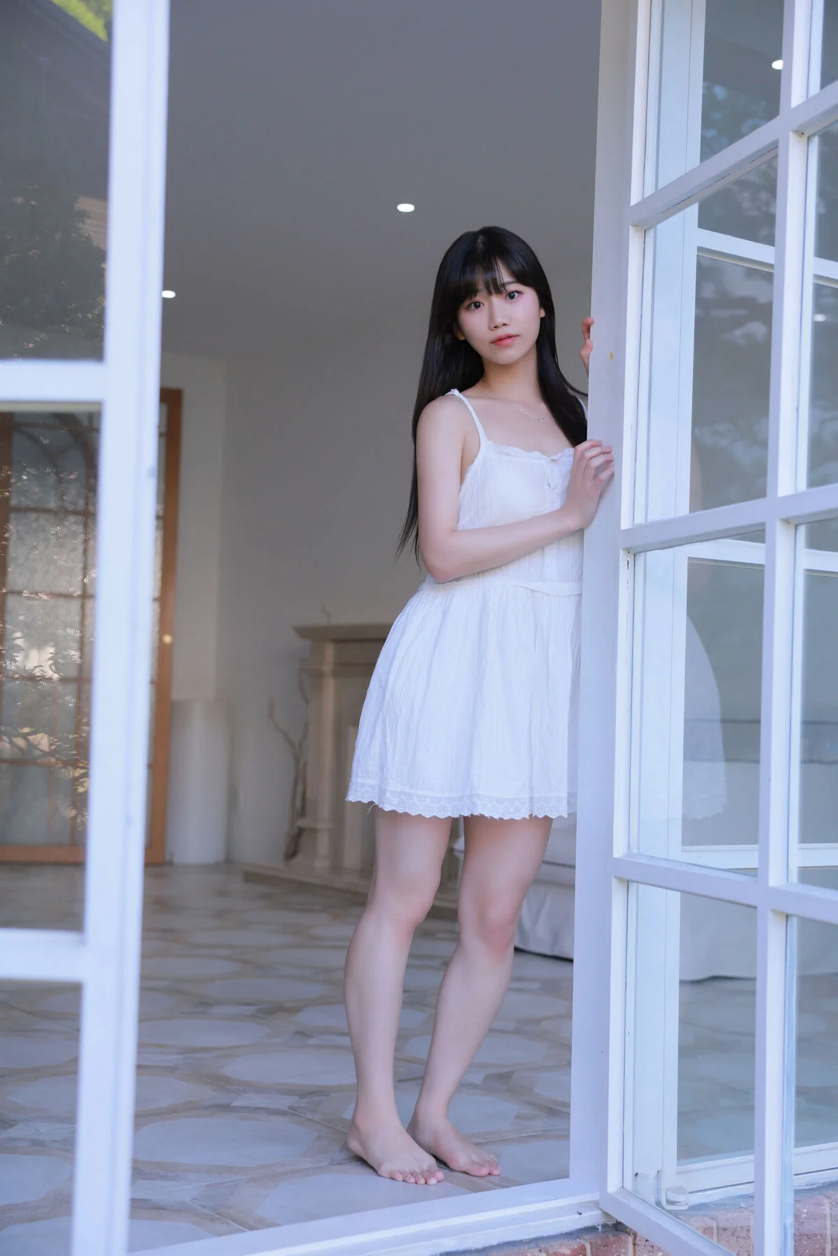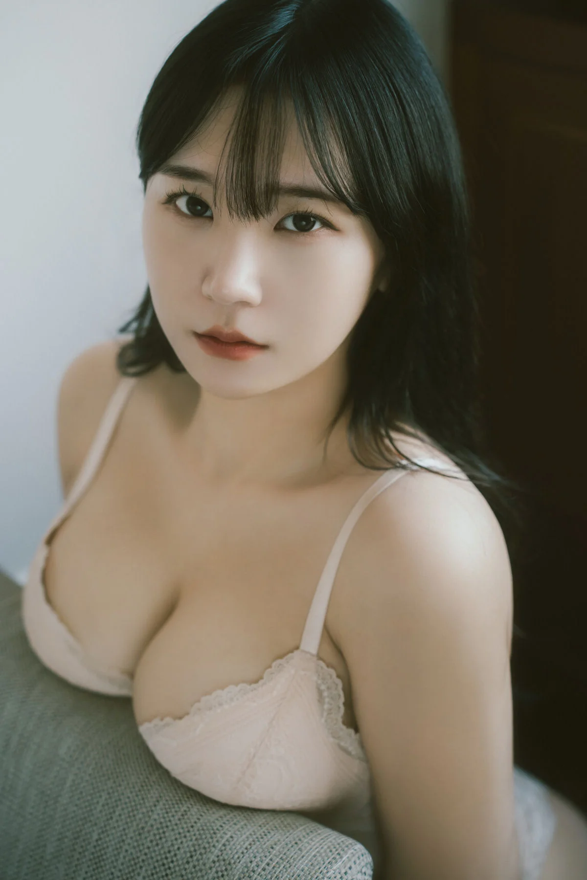 This frame captures a moment of pure serenity and intimate beauty within the Visual Lens Hansae - The Curtains Vol.01 collection. Hansae radiates a gentle charm, her soft gaze reflecting a sense of calm that resonates deeply with the viewer. Dressed in a delicate white cardigan, the choice of material adds a layer of warmth and coziness to the overall visual narrative. The minimalist fashion style emphasizes natural elegance over complexity, showcasing how simplicity can be profoundly captivating in a modern lifestyle context. Natural light filters through the room, creating a soft focus effect that enhances the dreamy atmosphere and highlights her subtle features with grace. It is a beautiful blend of lifestyle photography and artistic expression, celebrating the quiet moments of a morning routine where time seems to slow down. The composition and color palette evoke a feeling of nostalgia and peace, making it a perfect inspiration for those who appreciate the fine art of visual storytelling and the timeless appeal of soft, natural aesthetics.#VisualLens #Hansae #SoftAesthetic #PortraitArt #CozyVibes
