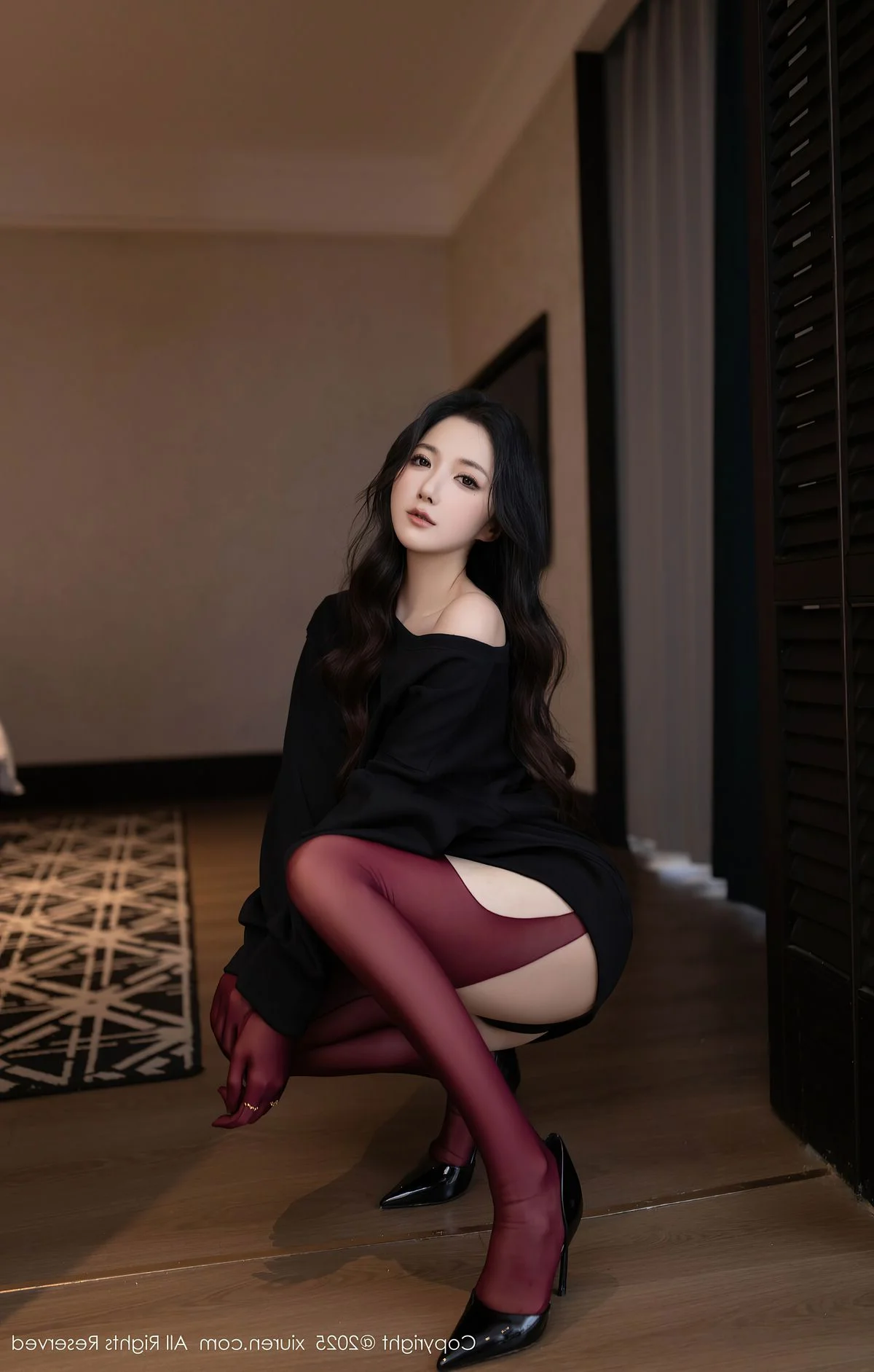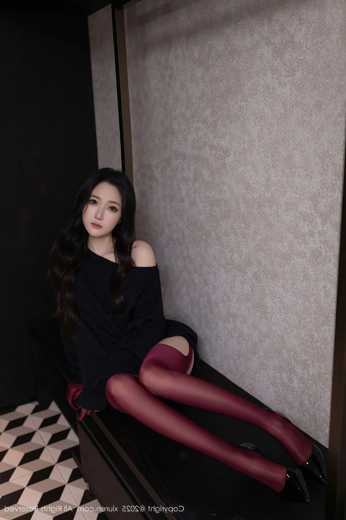 In the quiet, minimalist setting of a modern interior, Yu Zi Jiang Fish emerges as a mysterious and captivating muse. Within the XiuRen No.10790 collection, she elegantly dons a black off-the-shoulder sweater, its soft texture gracefully highlighting her silhouette with subtle sophistication. The most striking visual element is the deep burgundy tights, which provide a luxurious contrast against the dark, moody tones of her outfit and the surrounding shadows. Her gaze is a poetic blend of dreaminess and poise, perfectly complemented by her feminine and confident body language. Each shot is more than just a fashion statement; it is a visual art piece exploring the delicate interplay of light and shadow, where classic beauty meets a modern, edgy aesthetic. This collection serves as a profound inspiration for those who appreciate a seductive yet elegant style, finding beauty in the fine details and the soulful atmosphere of artistic portraiture.#YuZiJiangFish #XiuRen #SophisticatedStyle #VisualArt #PortraitPhotography