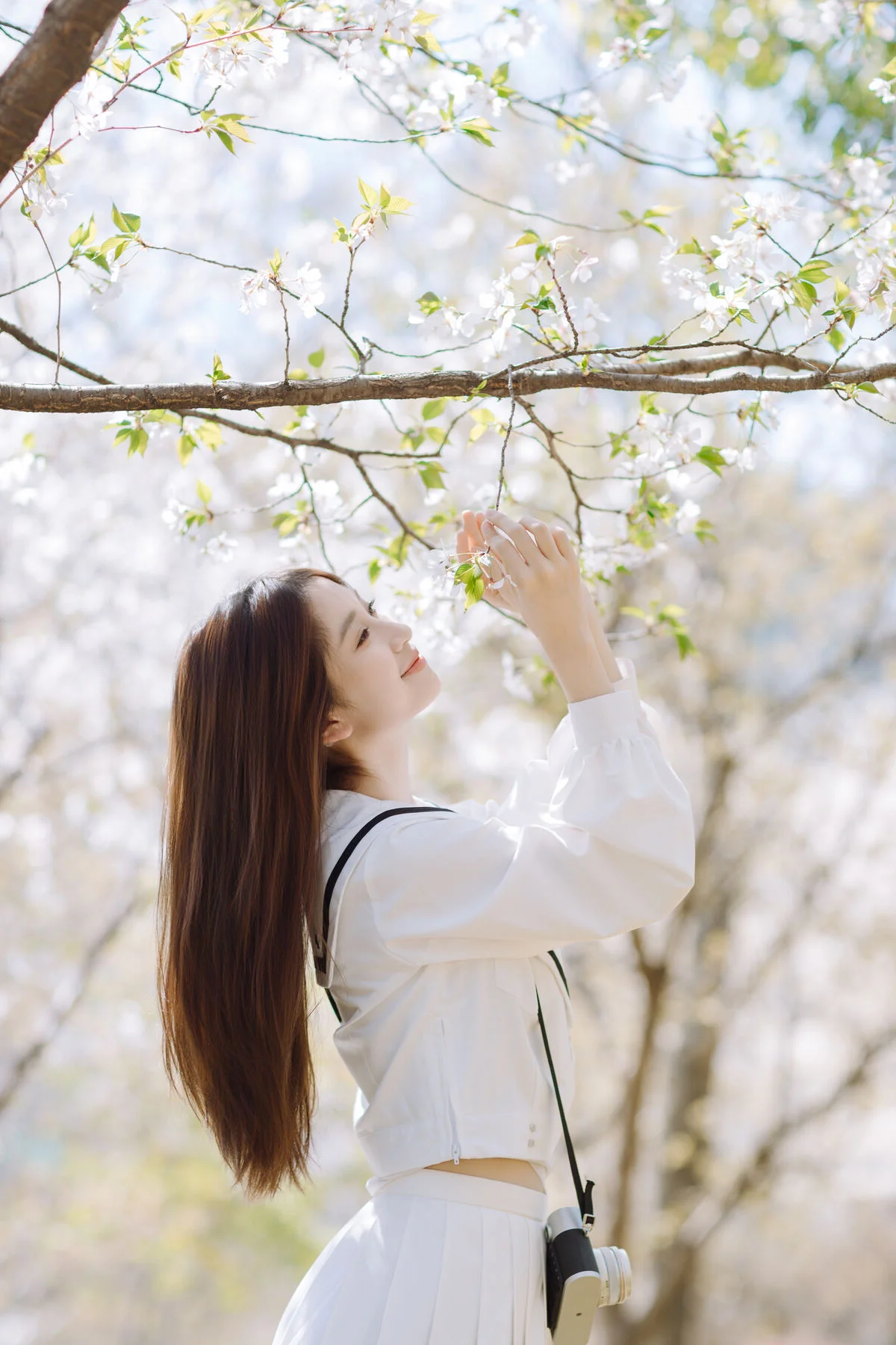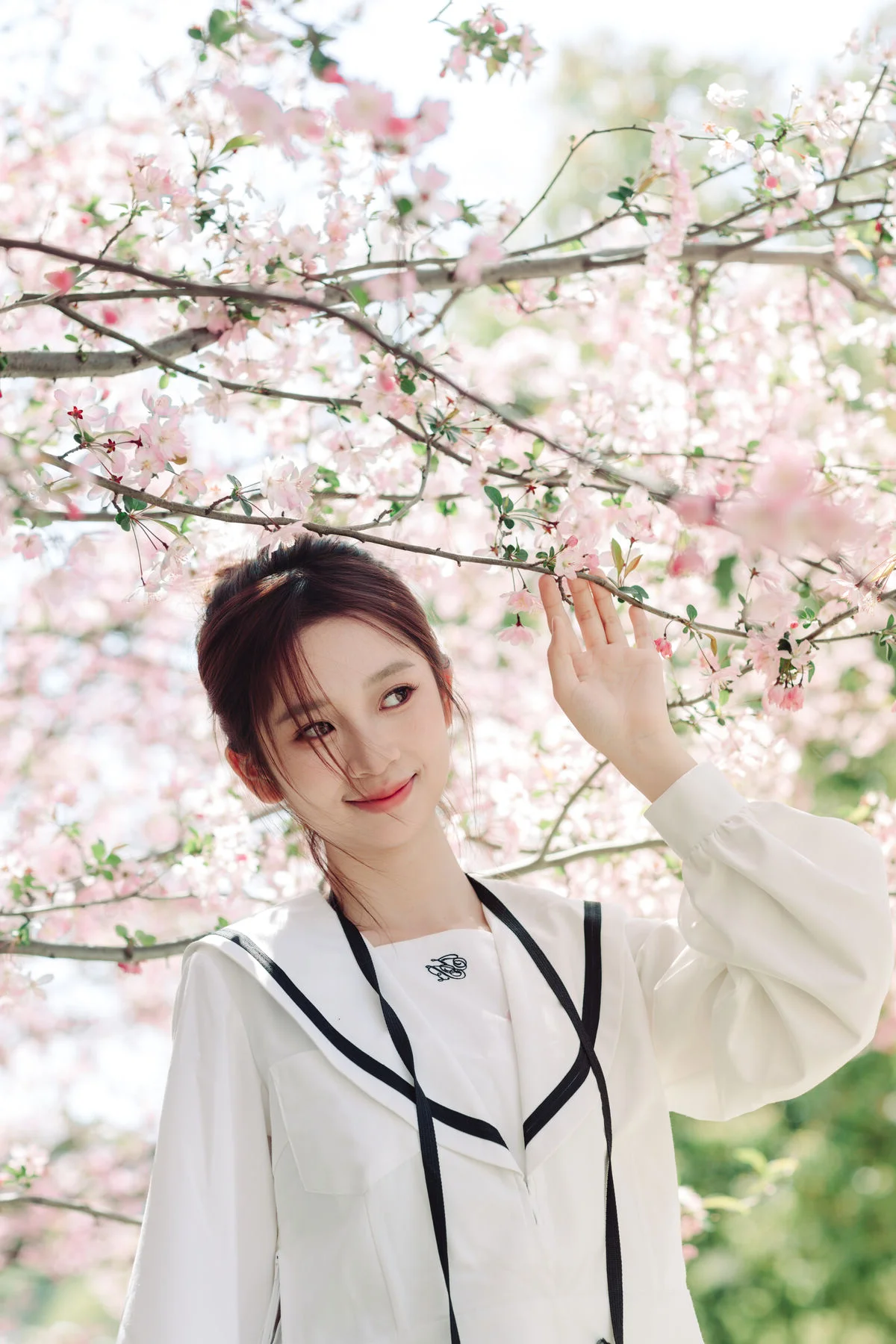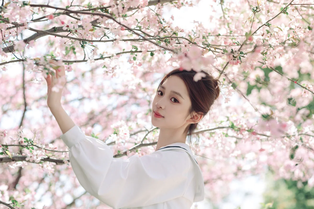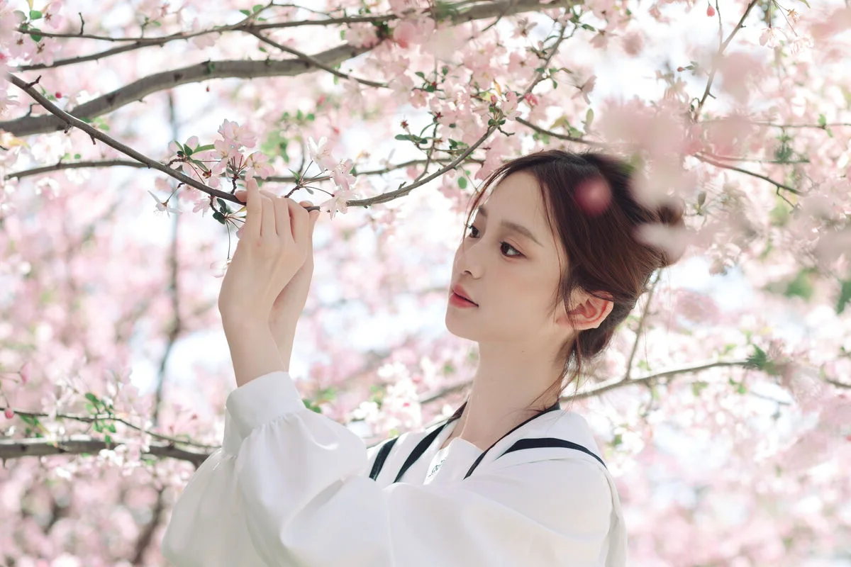 Capturing the essence of a fleeting spring morning, this visual masterpiece showcases the model Minejoin in a classic JK uniform, blending seamlessly with the delicate pink flowers. The soft, natural lighting accentuates her gentle expression and soulful gaze, creating a mood that is both nostalgic and breathtakingly beautiful. The choice of schoolgirl fashion, with its crisp white tones and structured pleats, adds a layer of innocence and timeless charm to the composition. It is a poetic exploration of youth and nature, where every fold of the fabric and every petal in the wind tells a story of quiet elegance. This collection from YiTuYu Art Language truly masters the art of visual storytelling, offering a sense of peace and inspiration for any travel or fashion enthusiast. The overall vibe is minimalist yet emotionally rich, making it a perfect example of how fashion can harmoniously coexist with the natural world, evoking memories of the most beautiful years of youth.#SpringAesthetics #JkUniform #ArtLanguage #NaturePhotography #MinejoinModel #YiTuYu