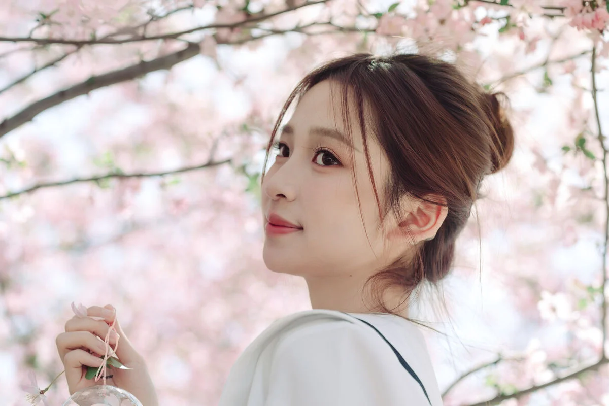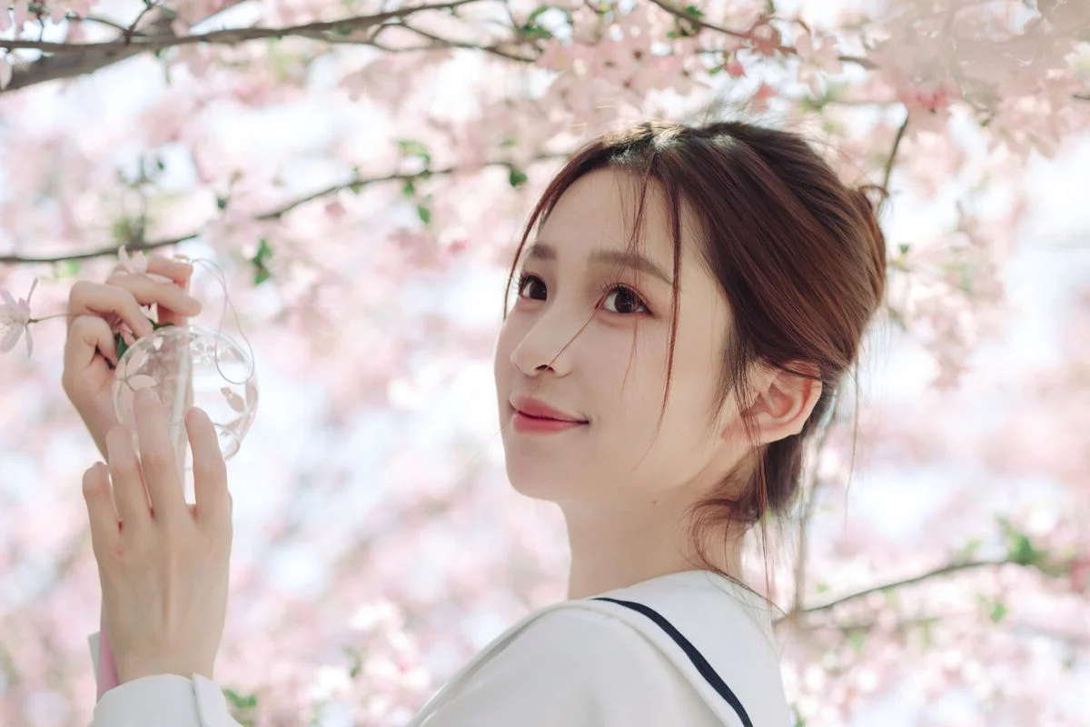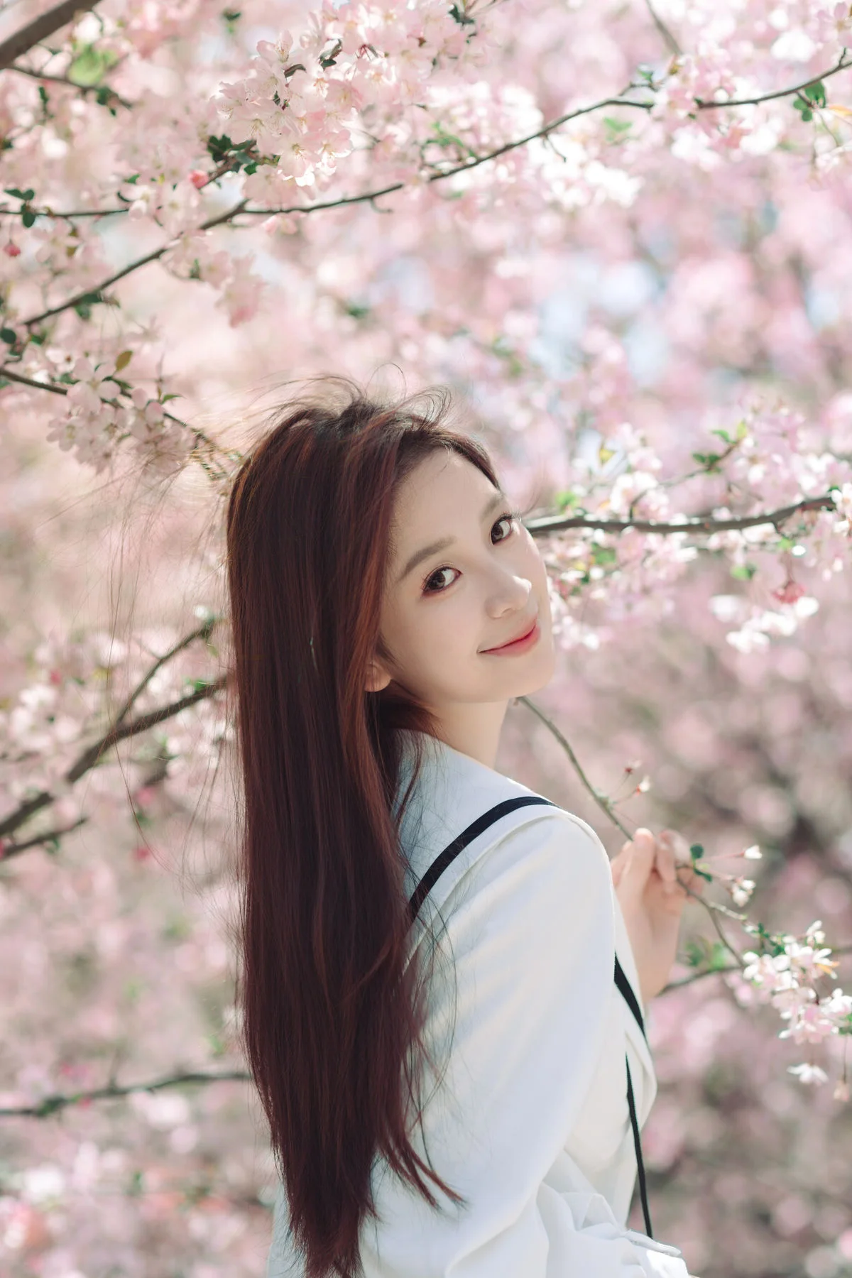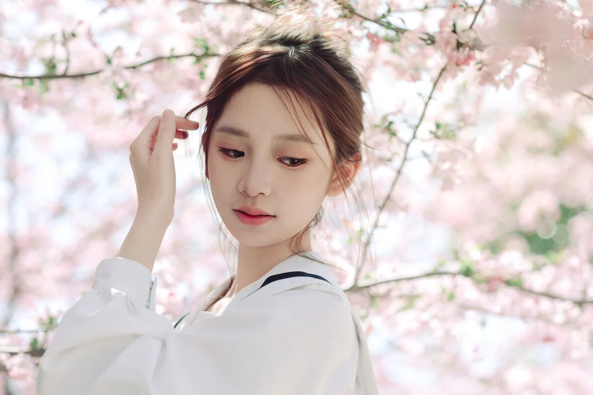Spring Muse: Pure Elegance in JK Uniform Amidst Blossoms
