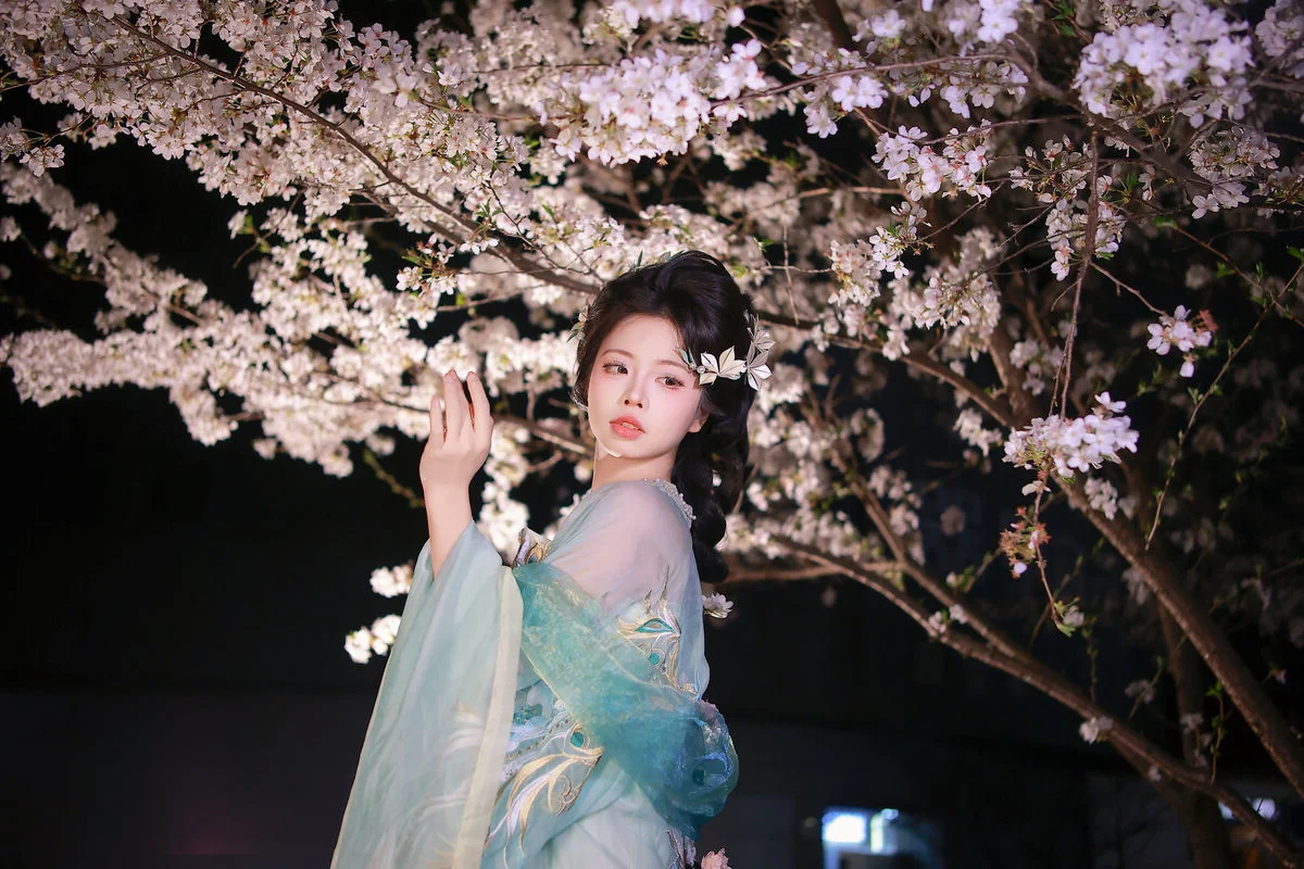 #NightCherryBlossoms , #ArtLanguageVol9125 , #SakuraNight , #SpringAesthetics , #PortraitArt , #FeiFeiModel , #TravelPhotography , #YozakuraVibes